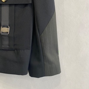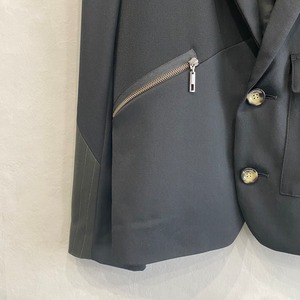 袖に斜めのヘリンボンストライプ生地を切り替えたテーラードジャケット。