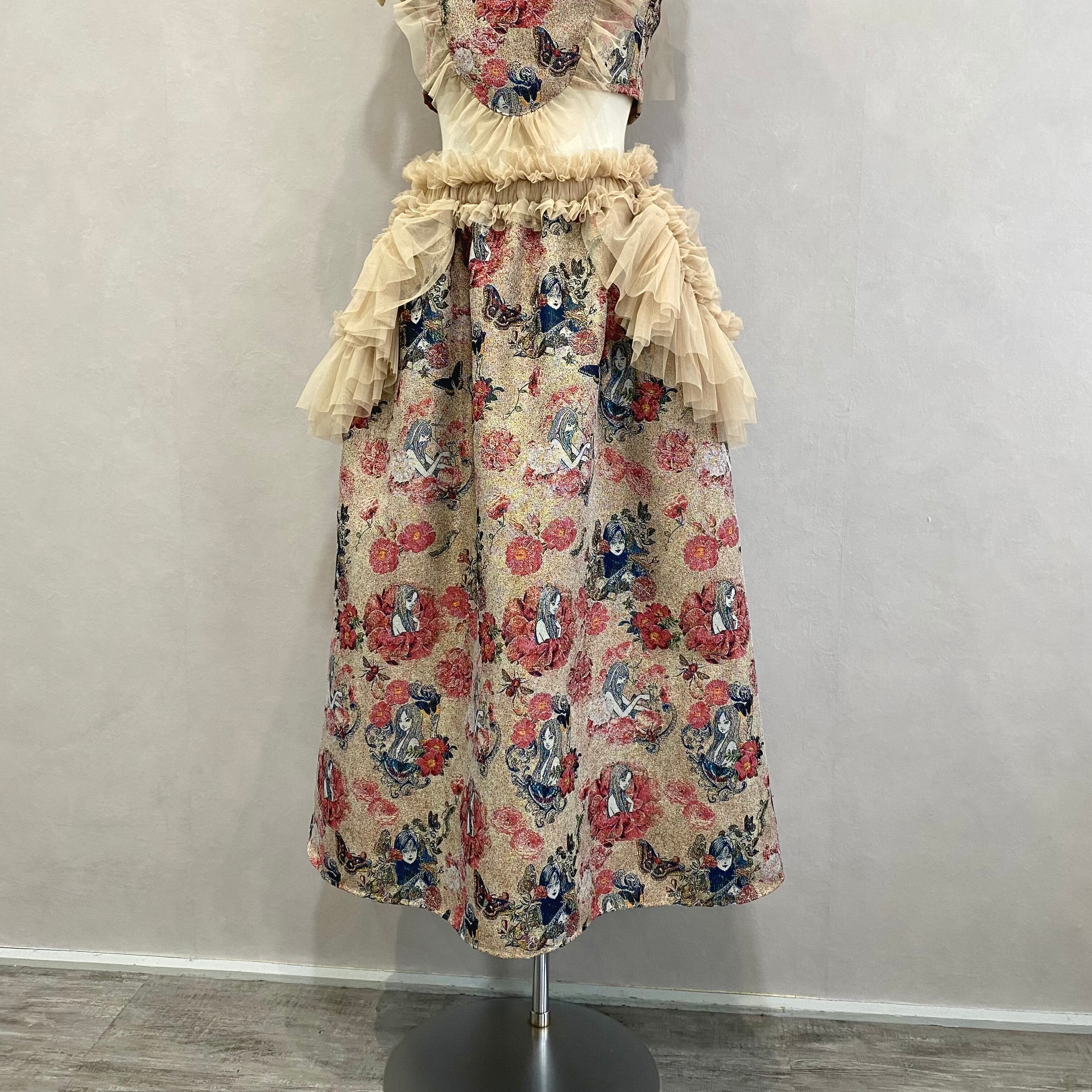 ウエスト~ポケット周りには柔らかなチュールを配し