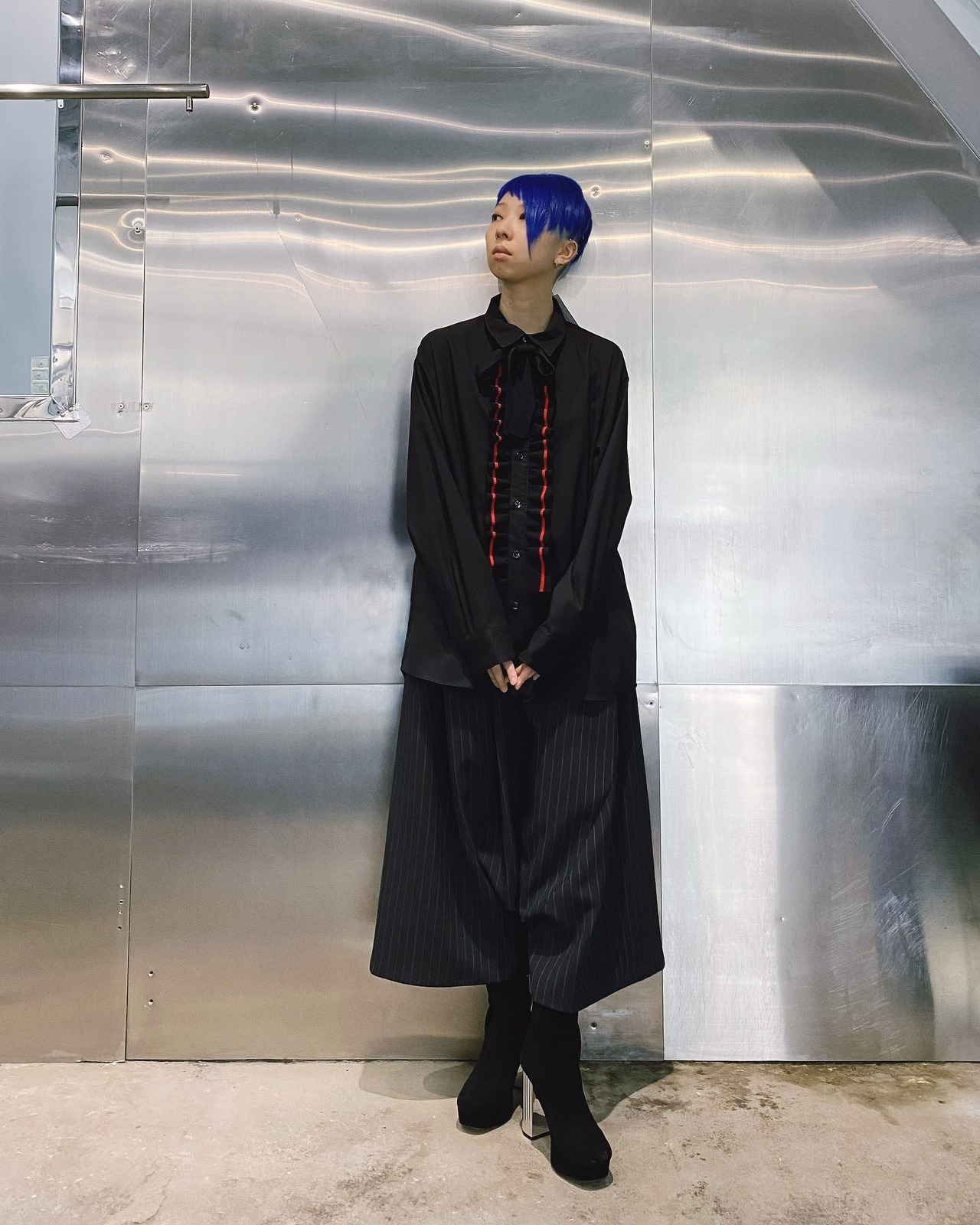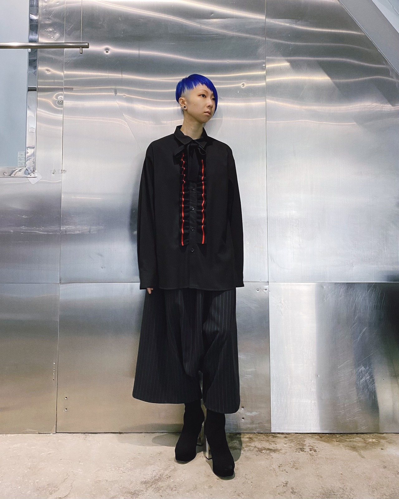 KNIT FRILLED SHIRTS / BLACK×RED【MILK BOY】