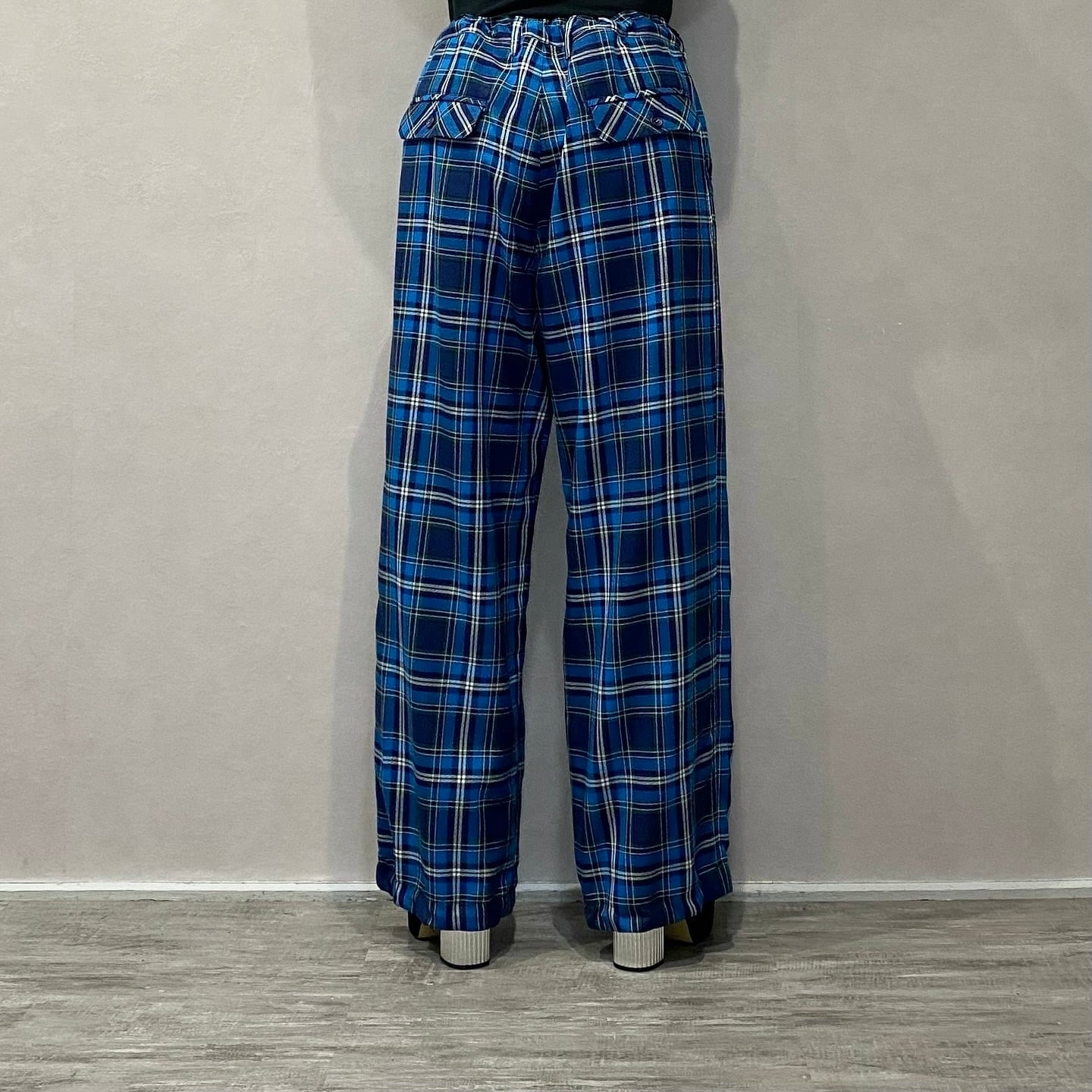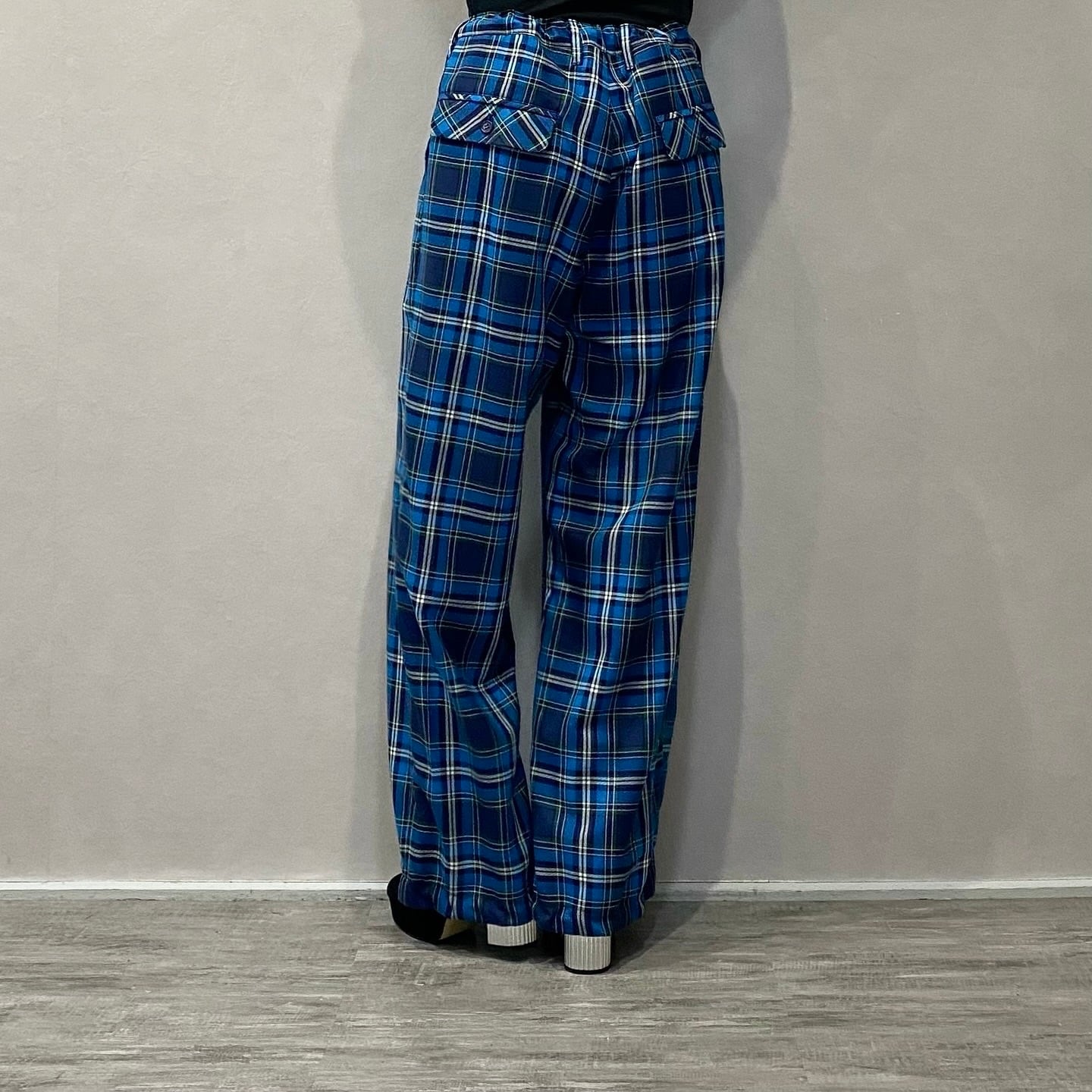 目を引くビビッドなネイビーチェックが、コーディネートに遊び心をプラスします♪