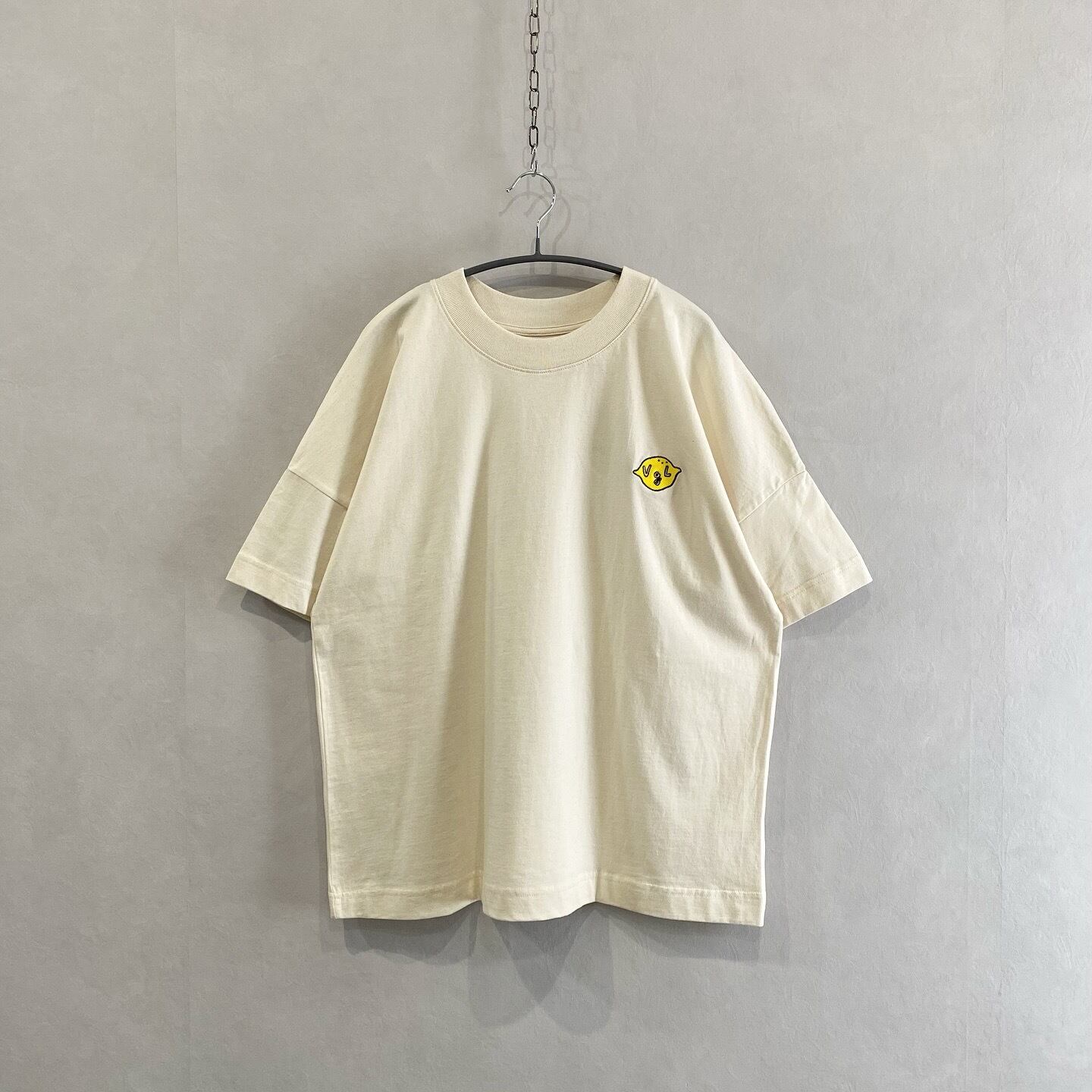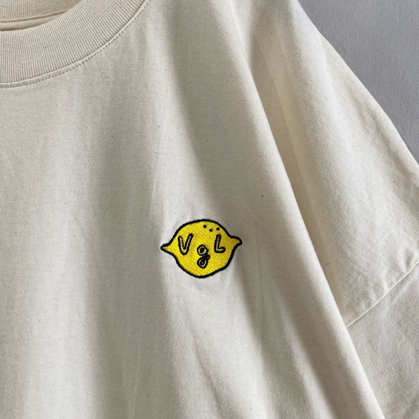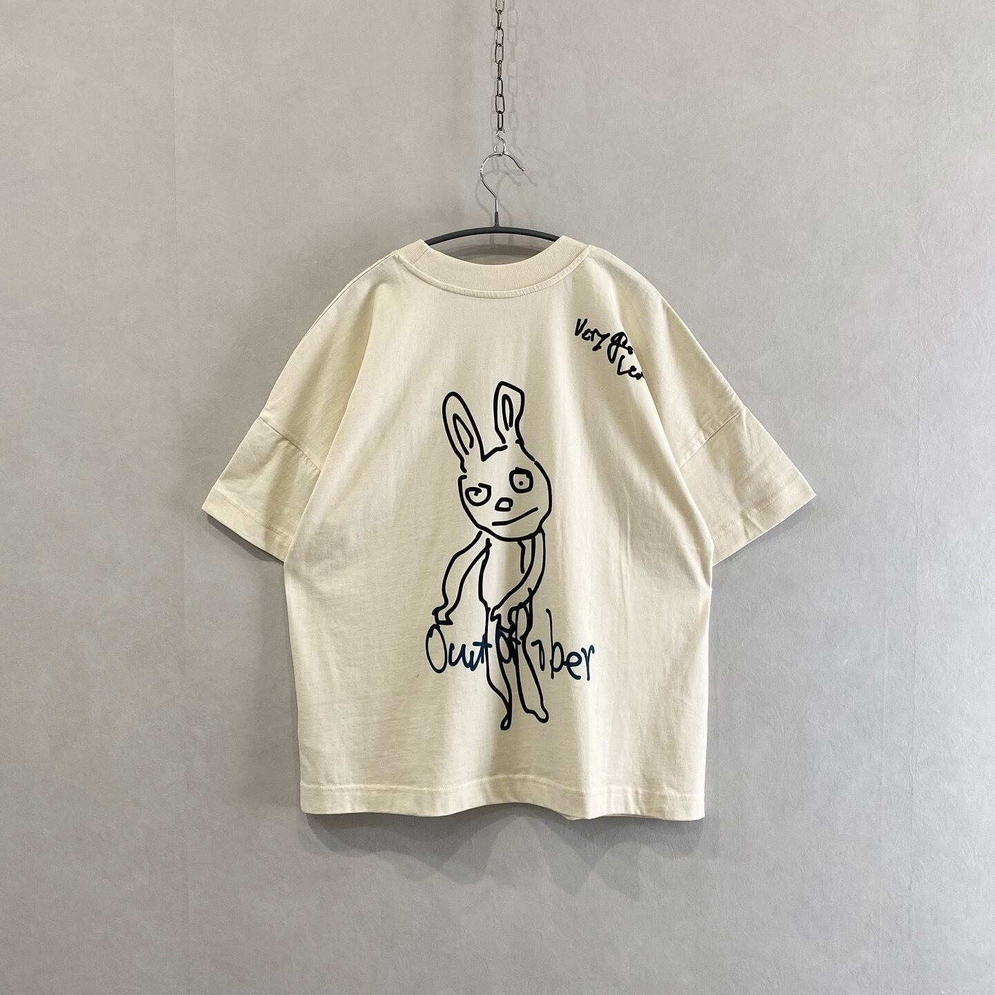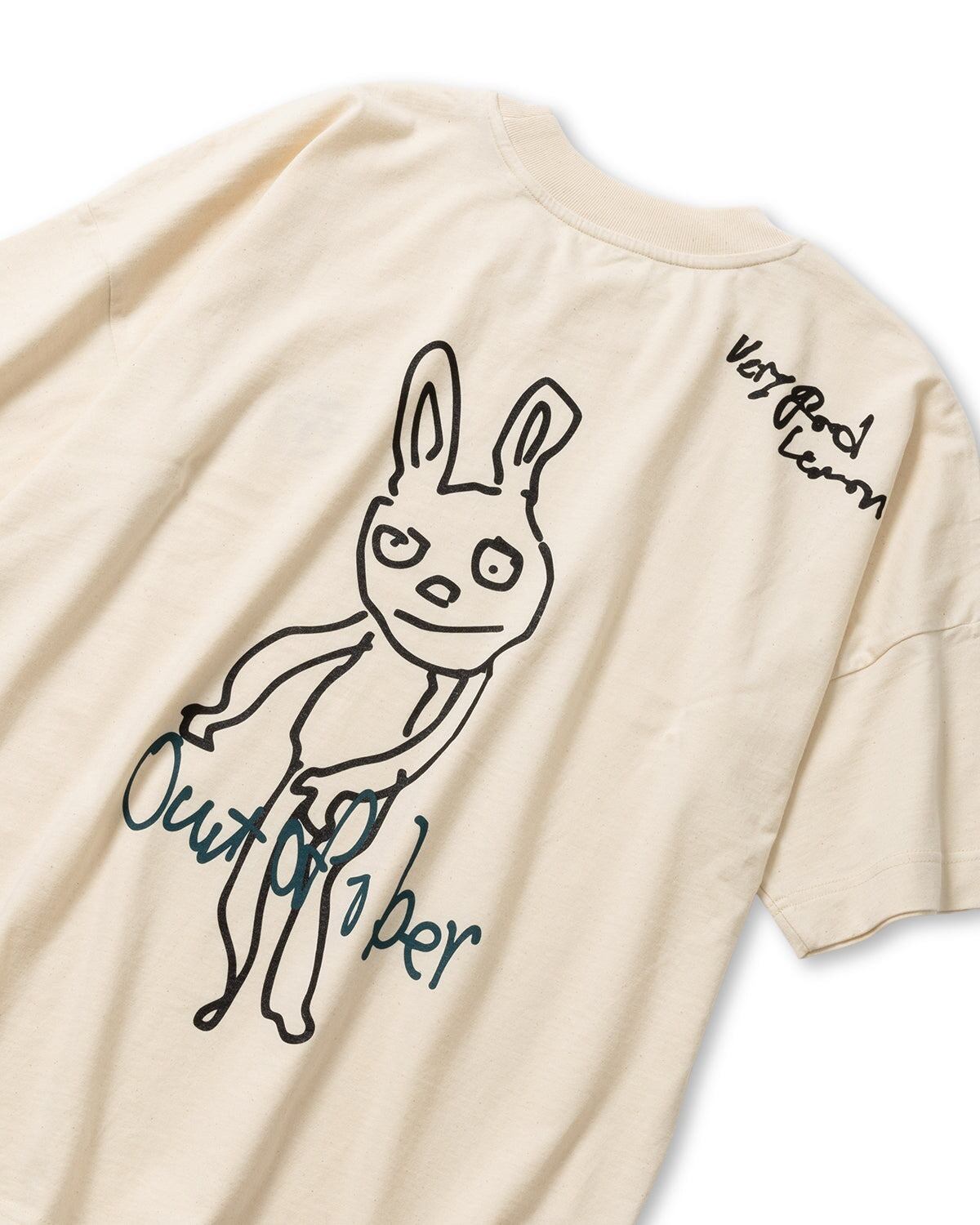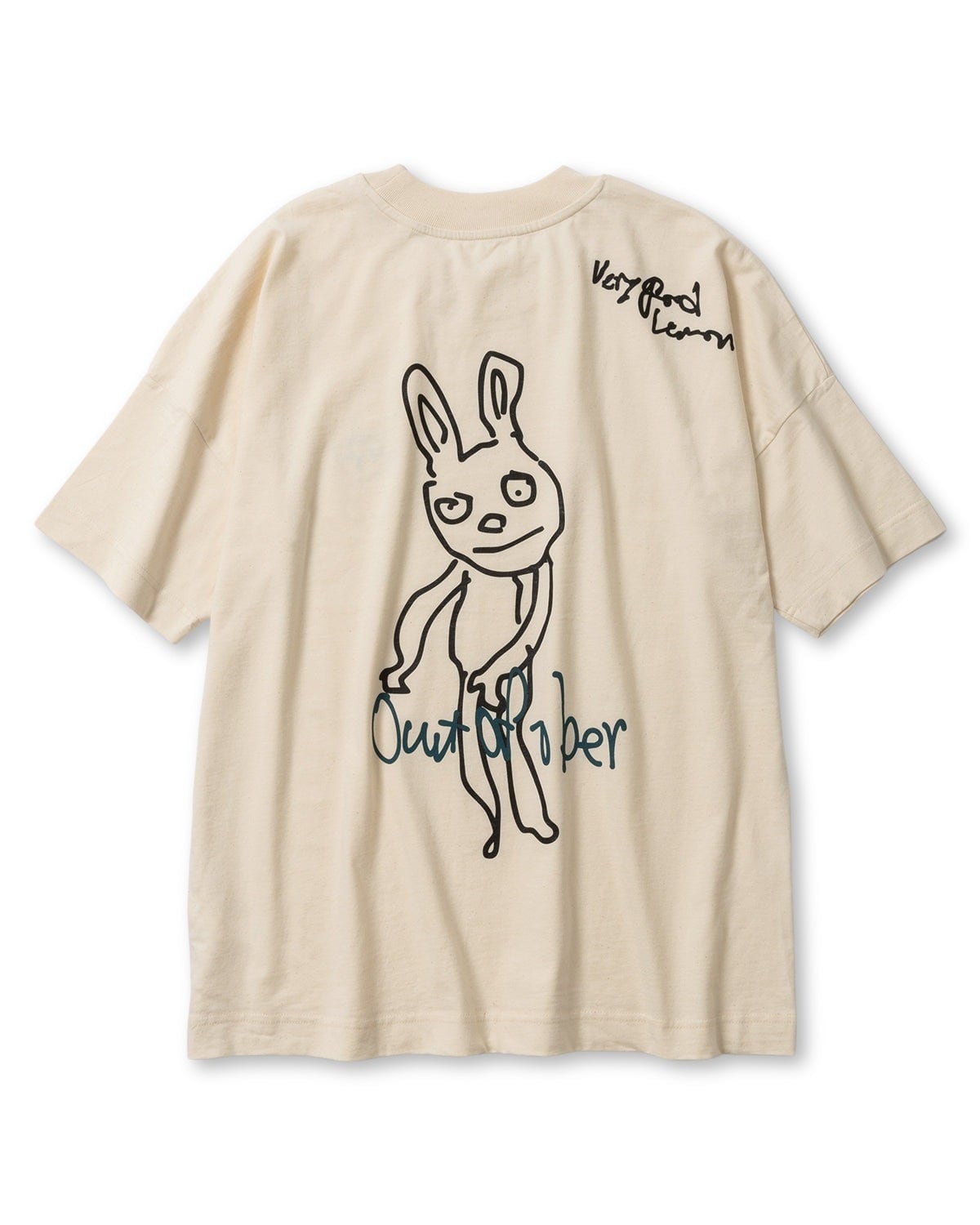 VERY GOOD LEMON(ベリーグッドレモン)のアートワーク「RABBIT」を背面に大胆にプリントし、フロントにはブランドロゴを刺繍で施したドロップショルダーTシャツ。