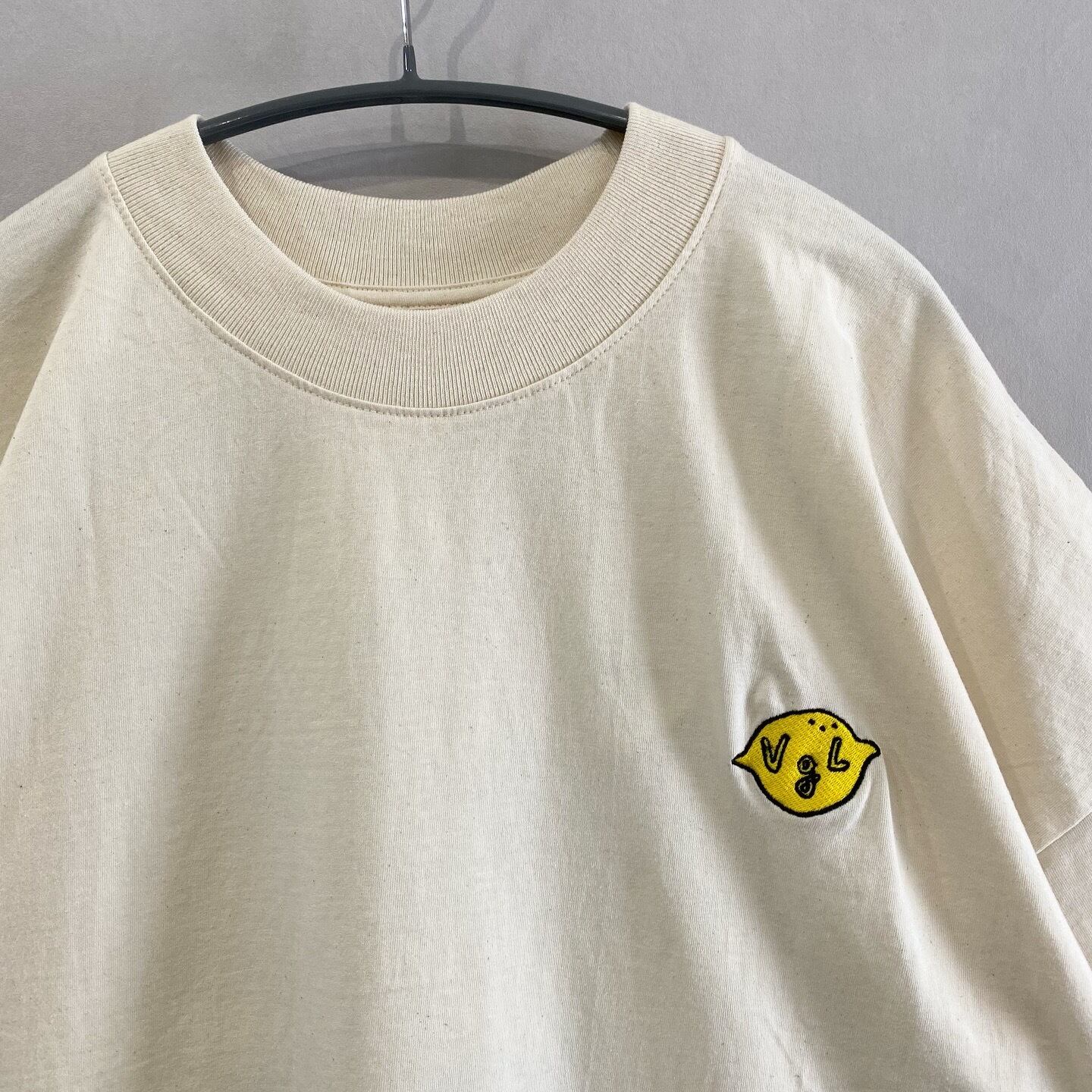 VERY GOOD LEMON(ベリーグッドレモン)のアートワーク「FLOWER」を背面に大胆にプリントし、フロントにはブランドロゴを刺繍で施したドロップショルダーTシャツ。