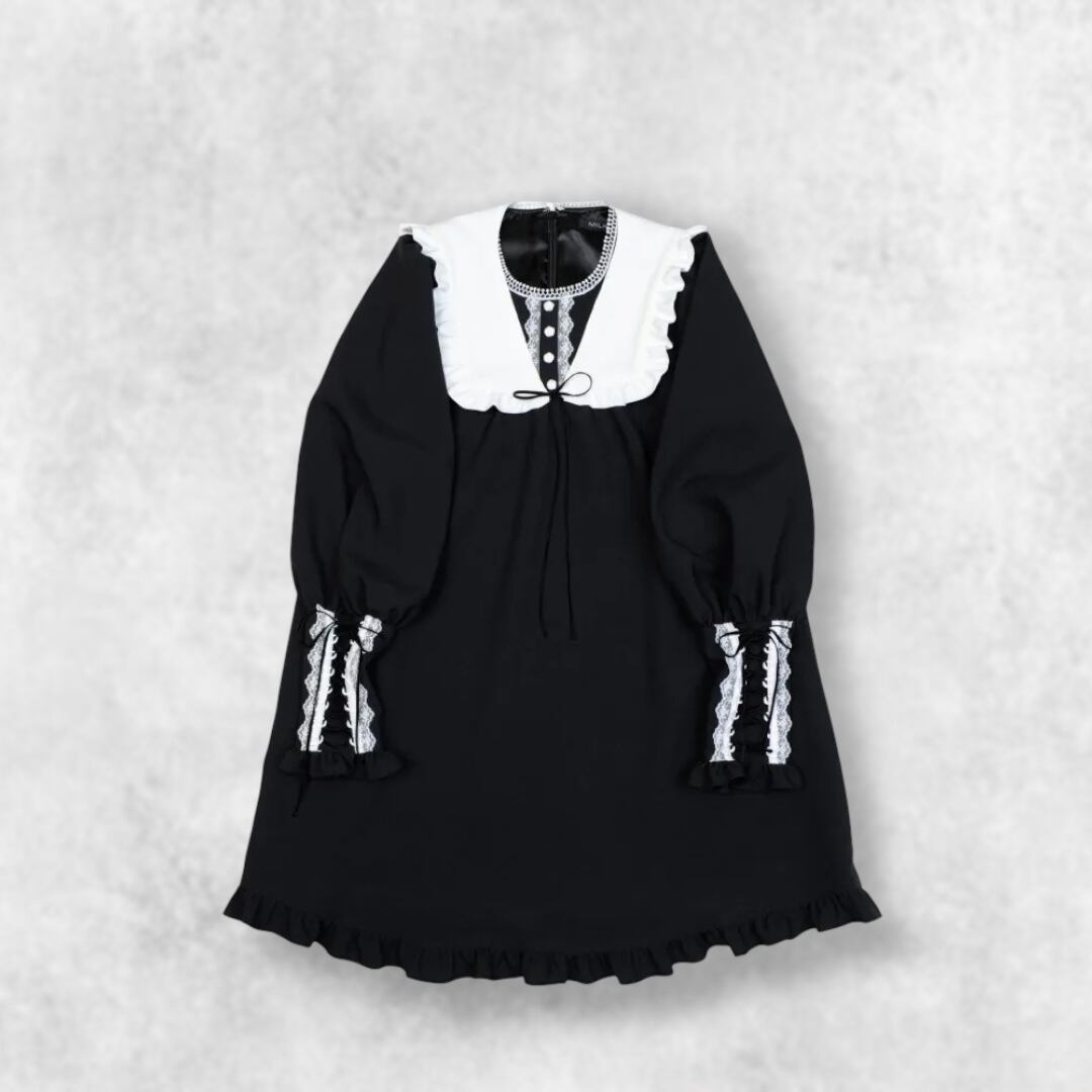 襟の取り外しが可能な、2wayデザインのワンピースです。