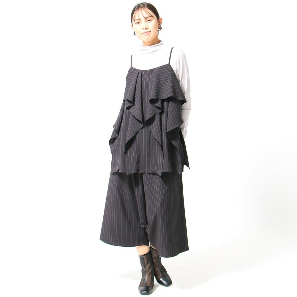 甘さを抑え、縦に落ちるラッフルデザインのキャミチュニック。