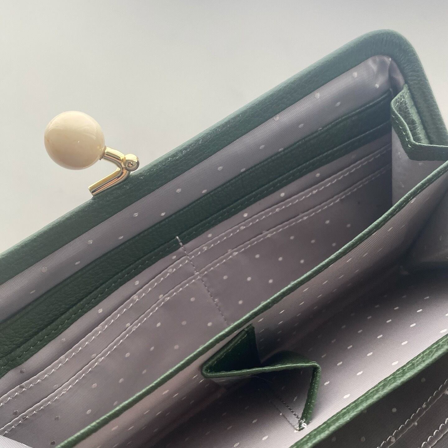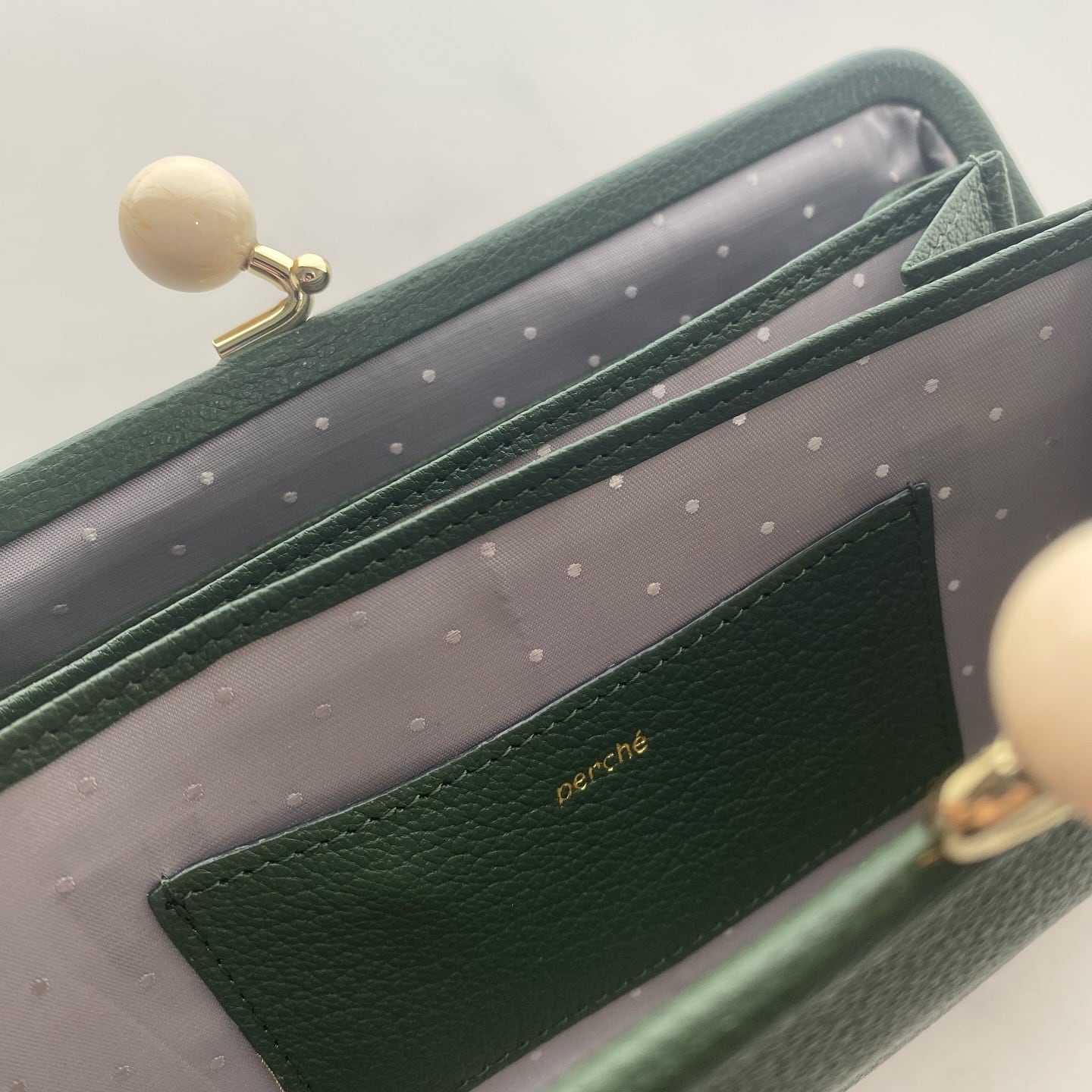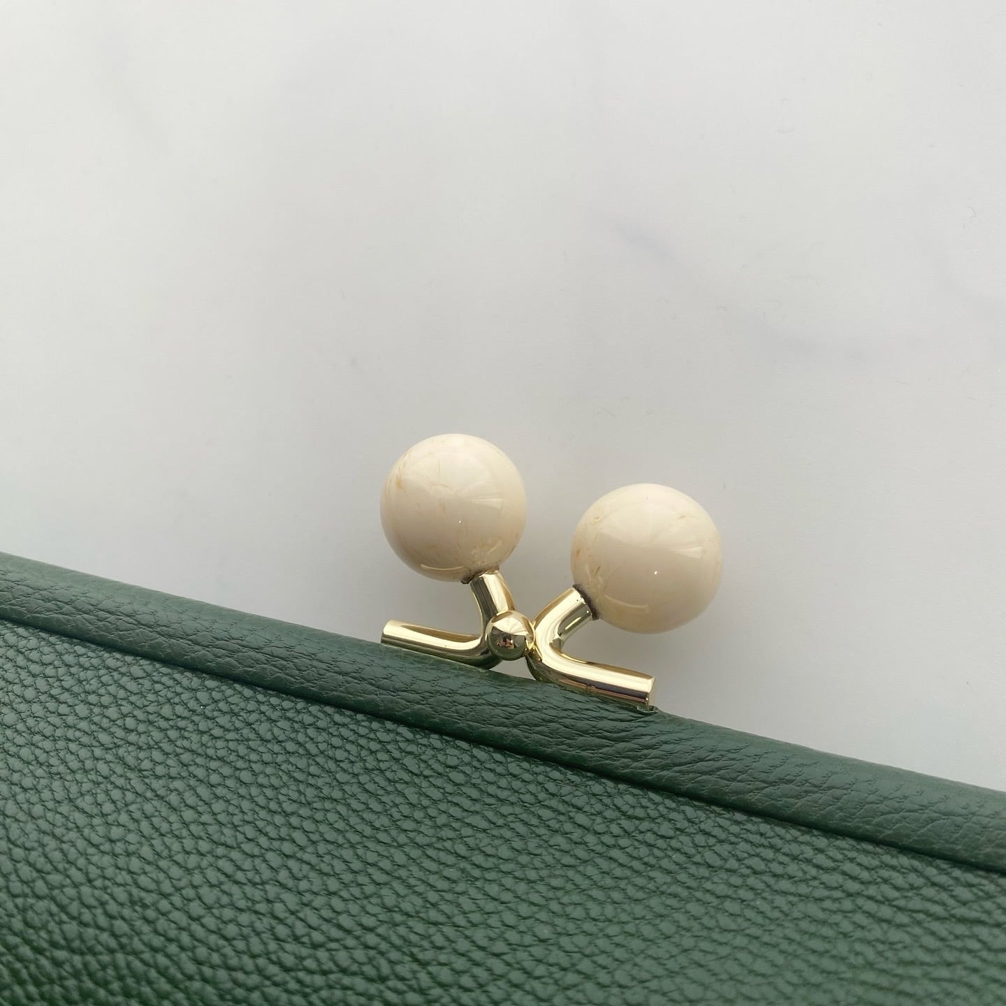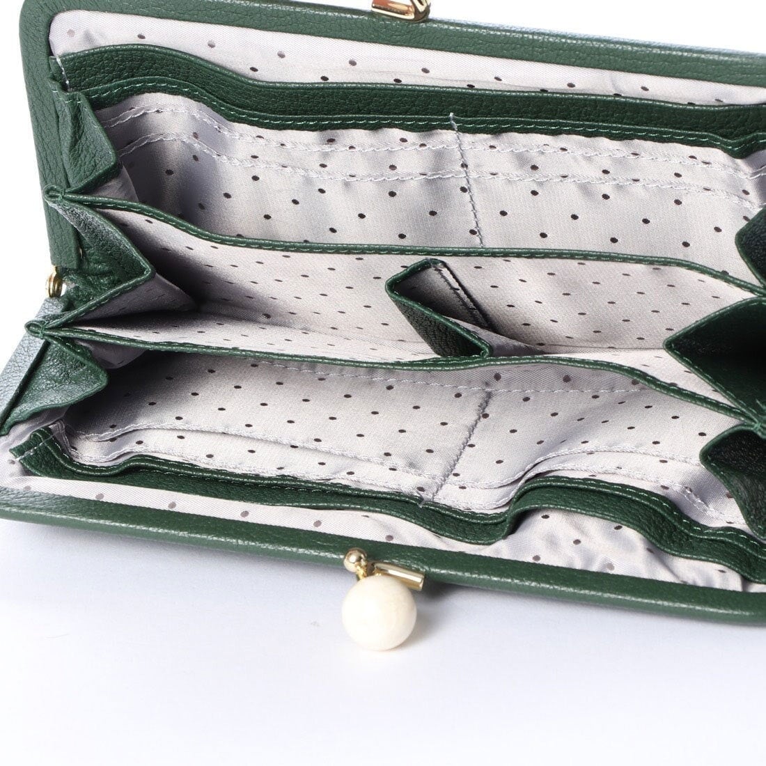 がま口を開ければ中を一度で見渡せるので使いやすいさも◎