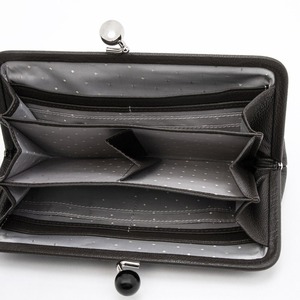 がま口を開ければ中を一度で見渡せるので使いやすいさも◎