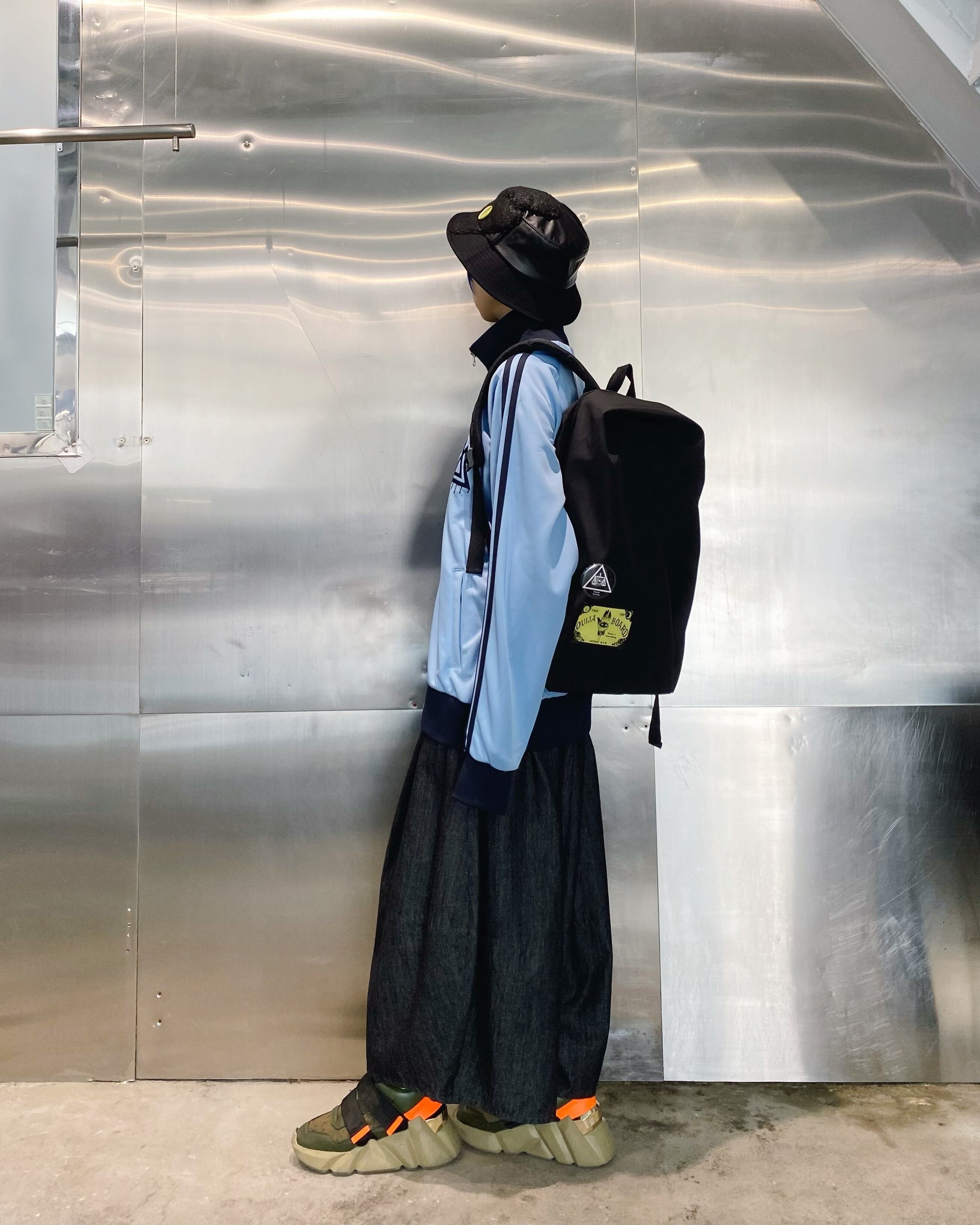 ブラック×ブラックのバケットハット。