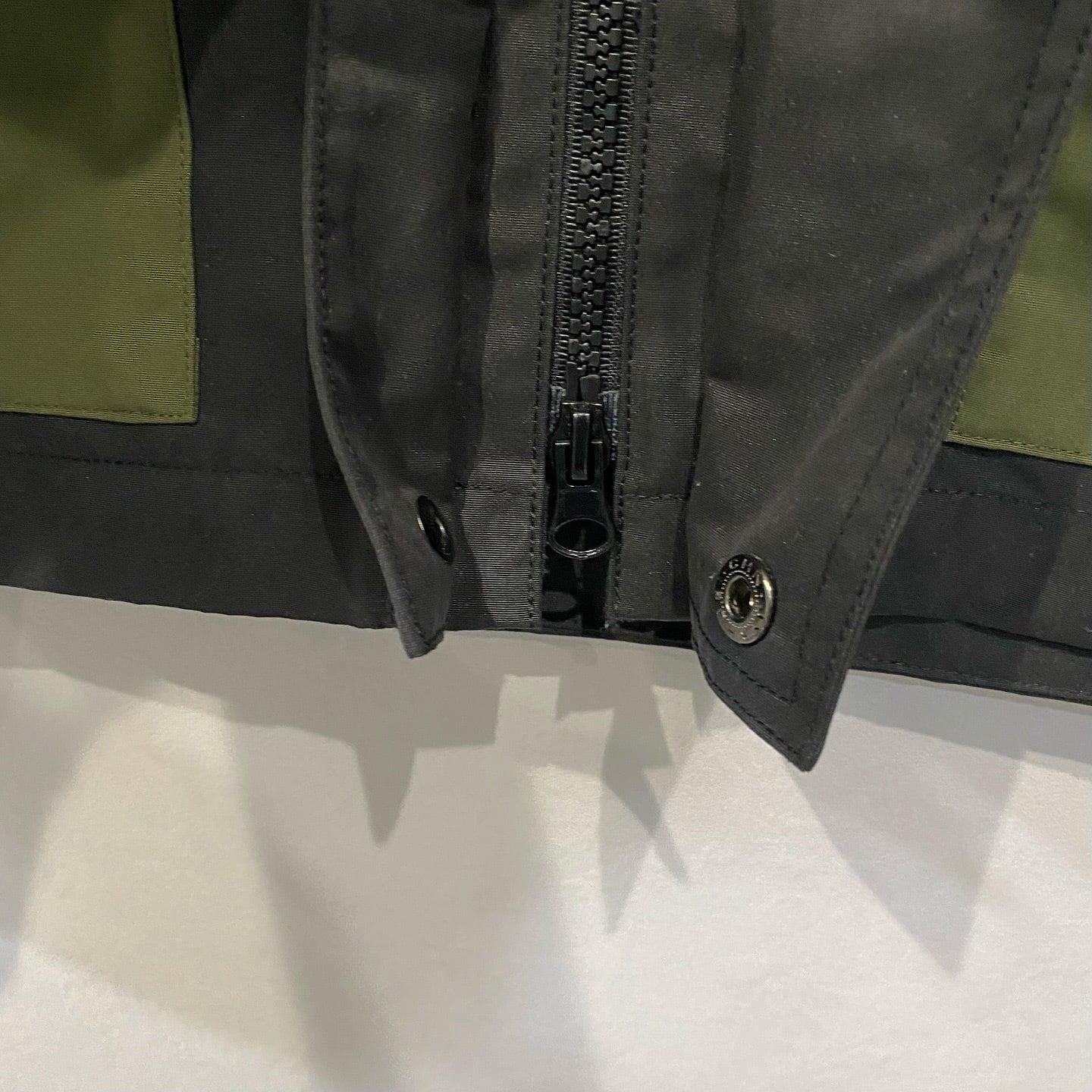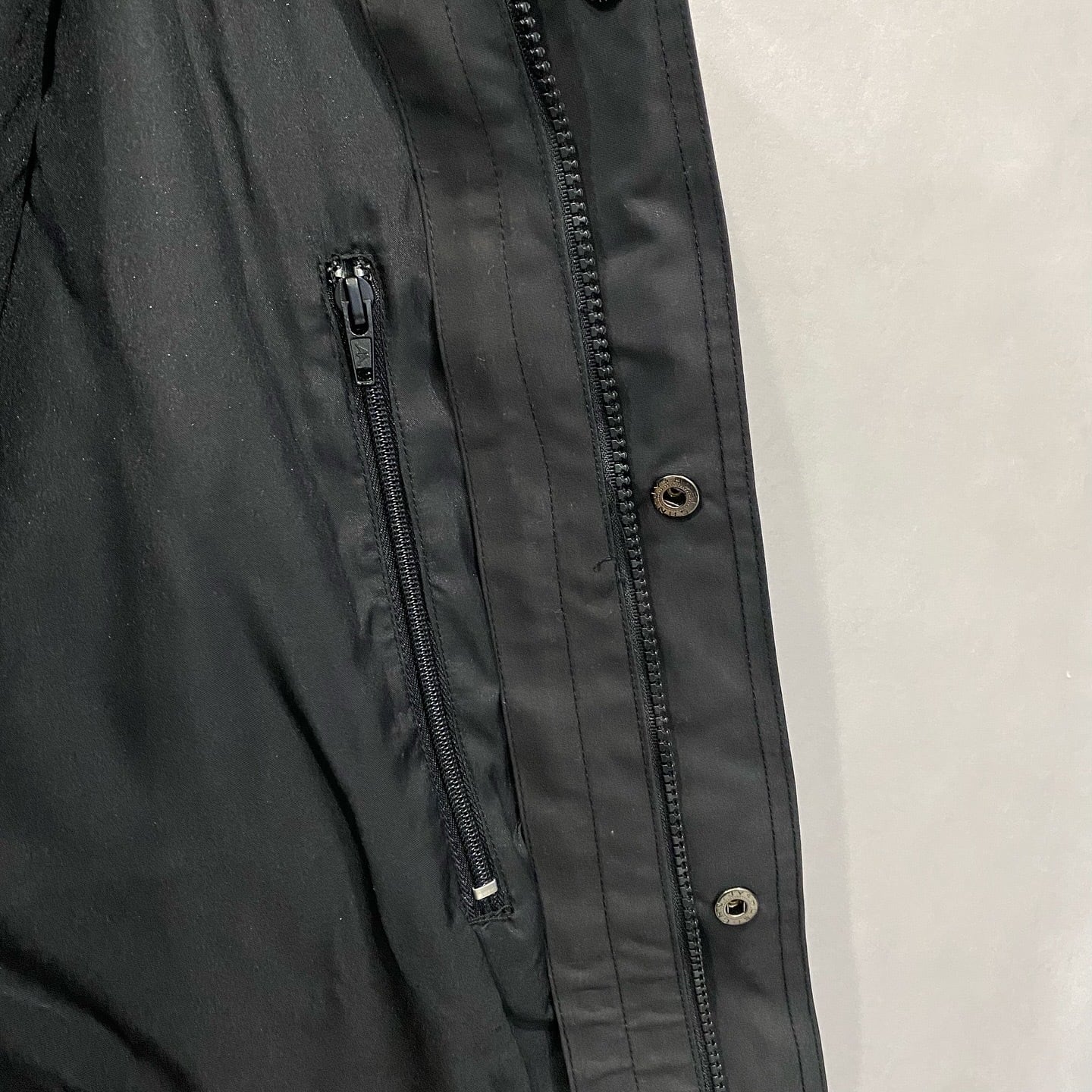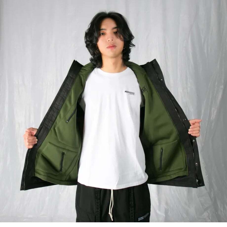 フロントは前立てが重なる内側にジップを配し、