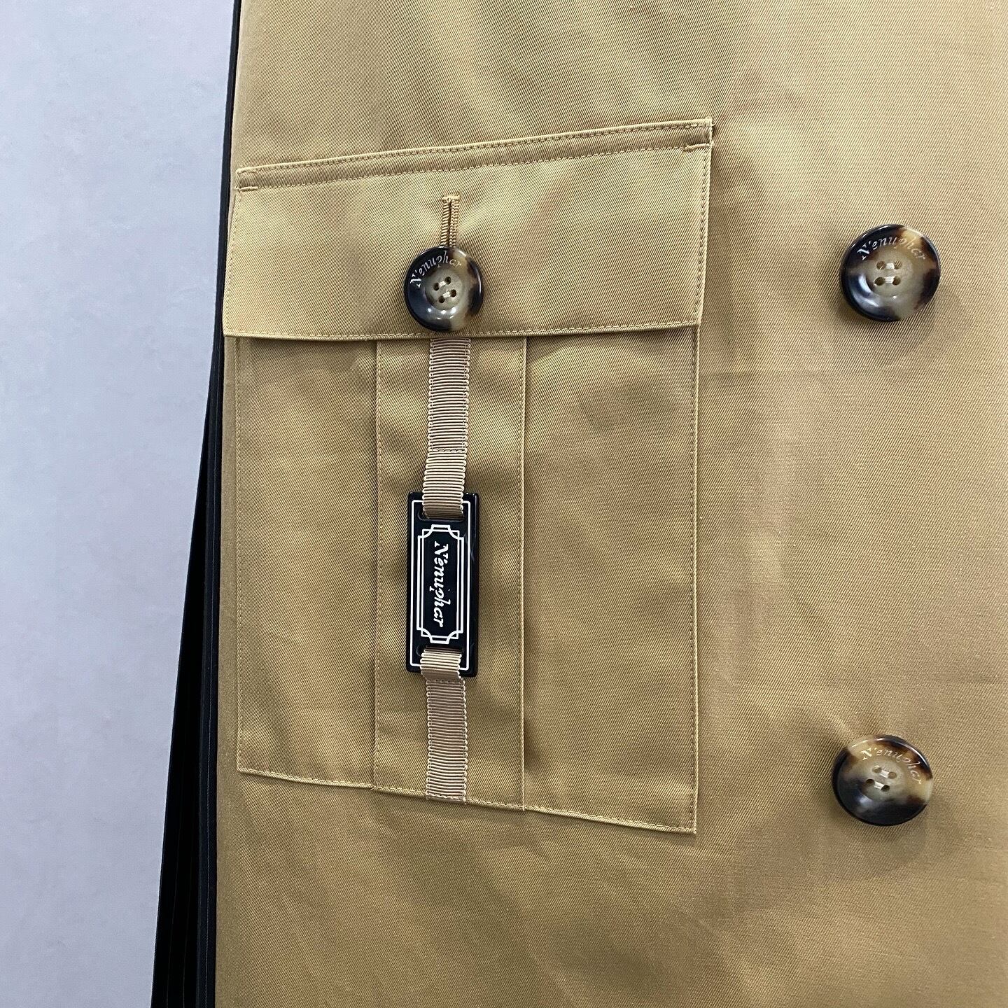 ダブル風のトレンチコートの仕様が盛り込まれており、