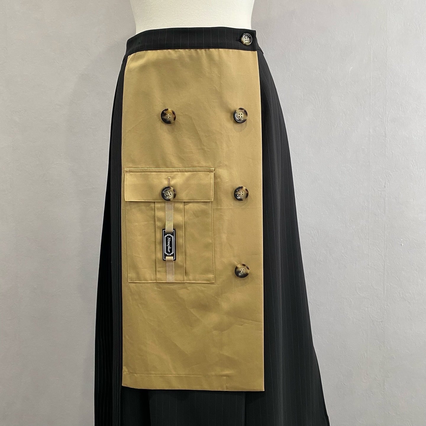 ストライプ柄トレンチプリーツ巻きスカート【N'enuphar】