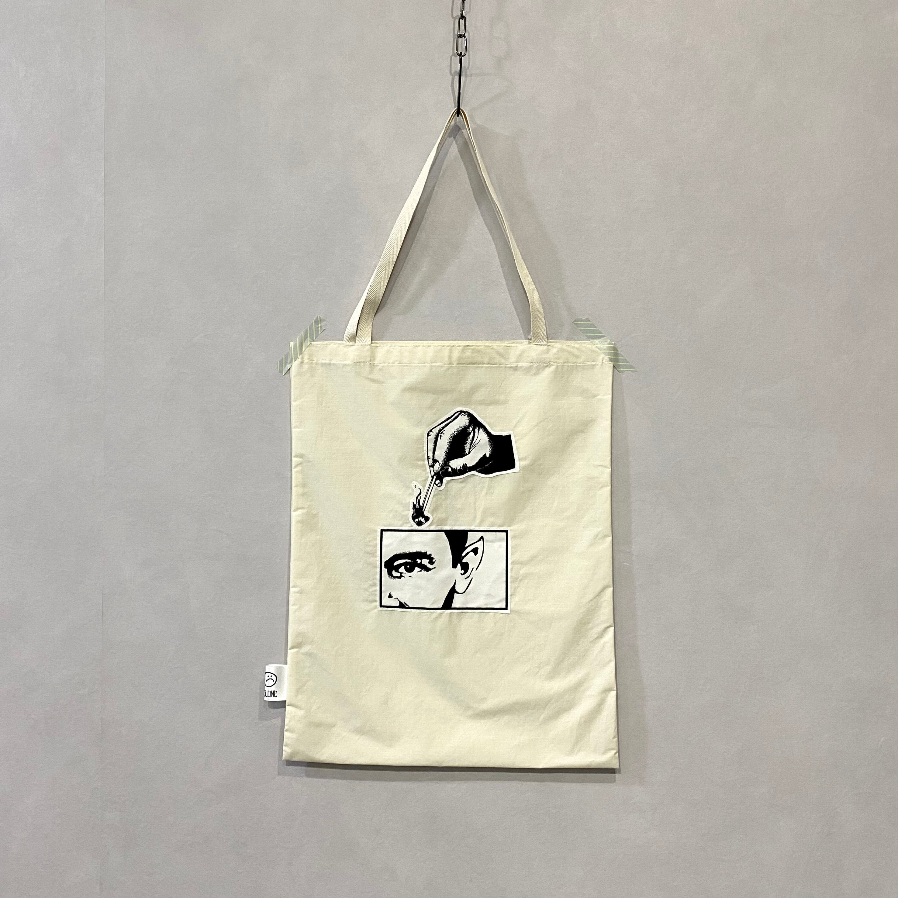 一つ一つ手刷りした生地を縫い付けたトートバッグです。