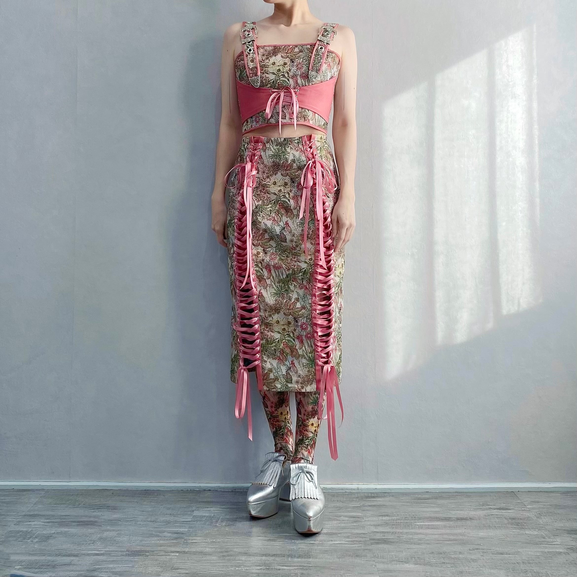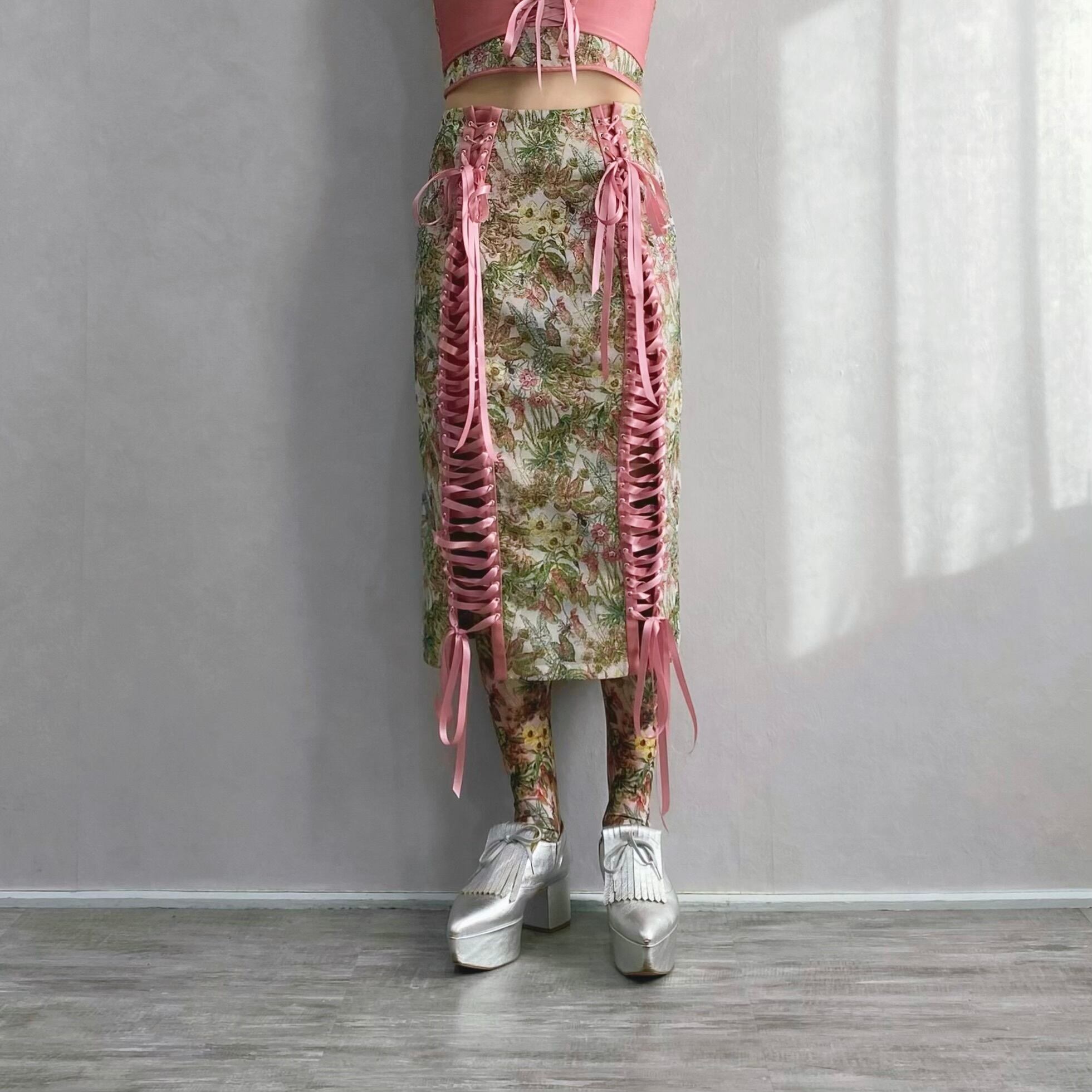 食虫植物柄のオリジナル図案のジャカード織スカート。