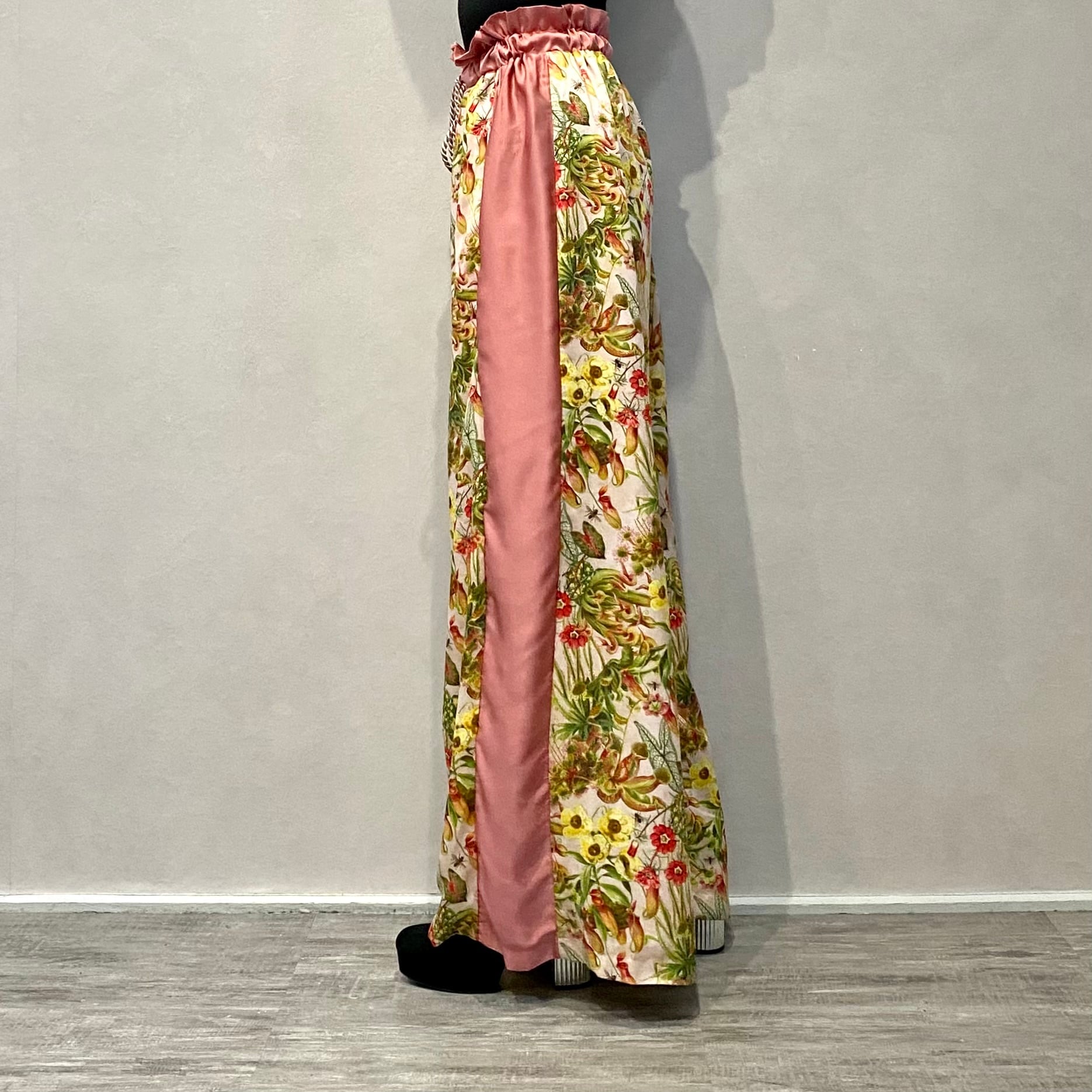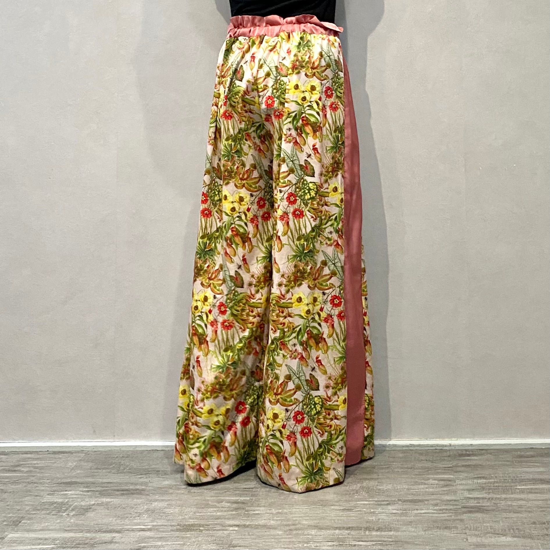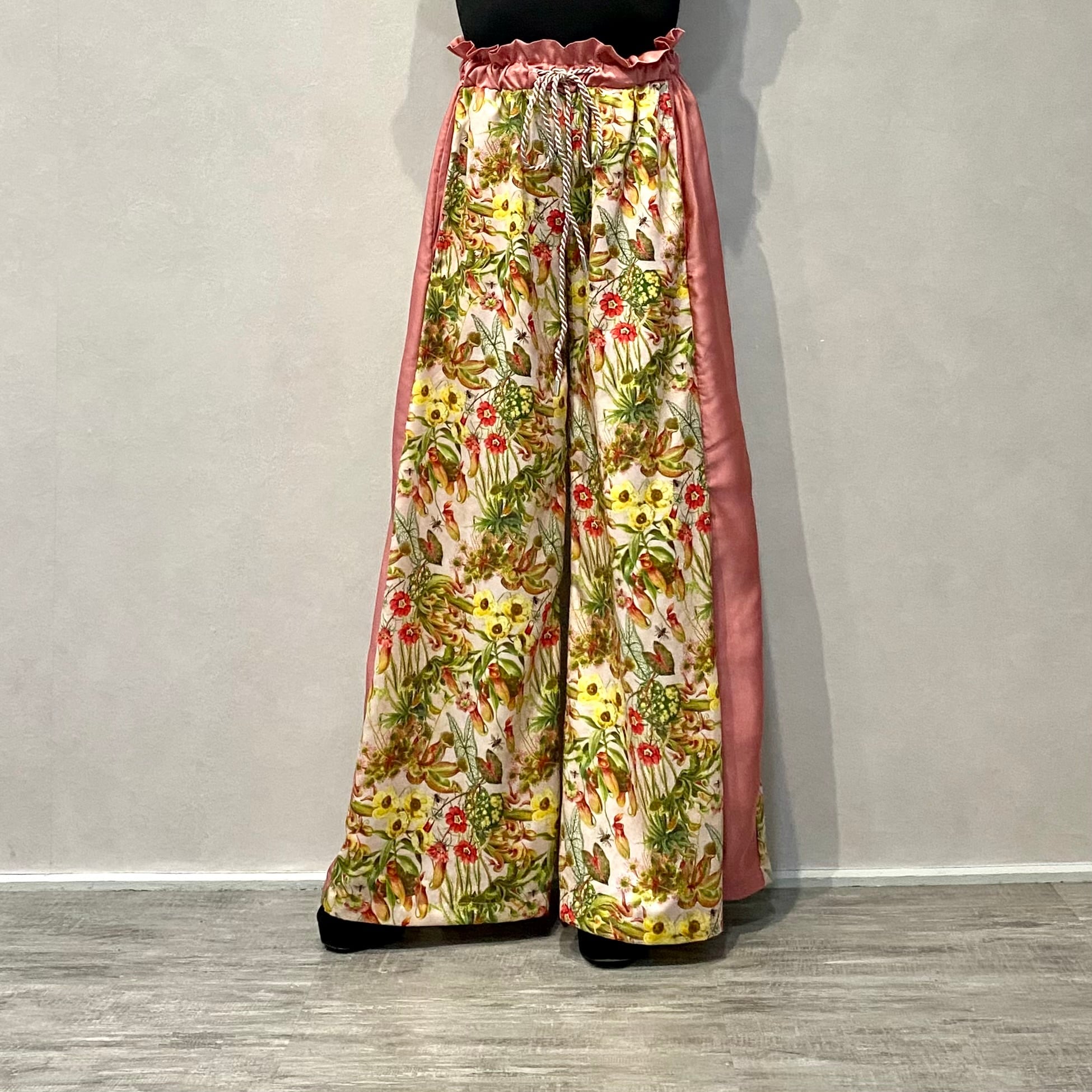 柔らかく軽やかな着心地のサテンワイドパンツです。