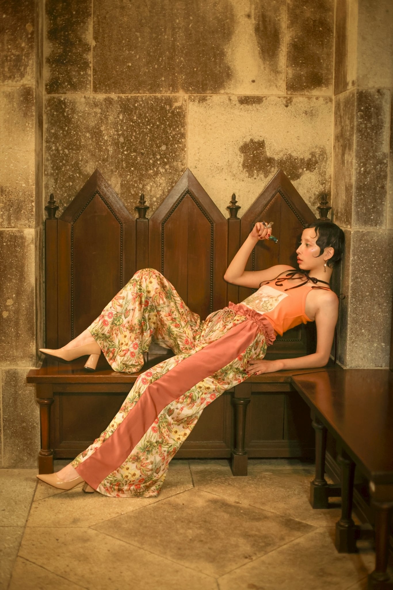 切り替え生地の差し色が、コーディネートをまとめます◎