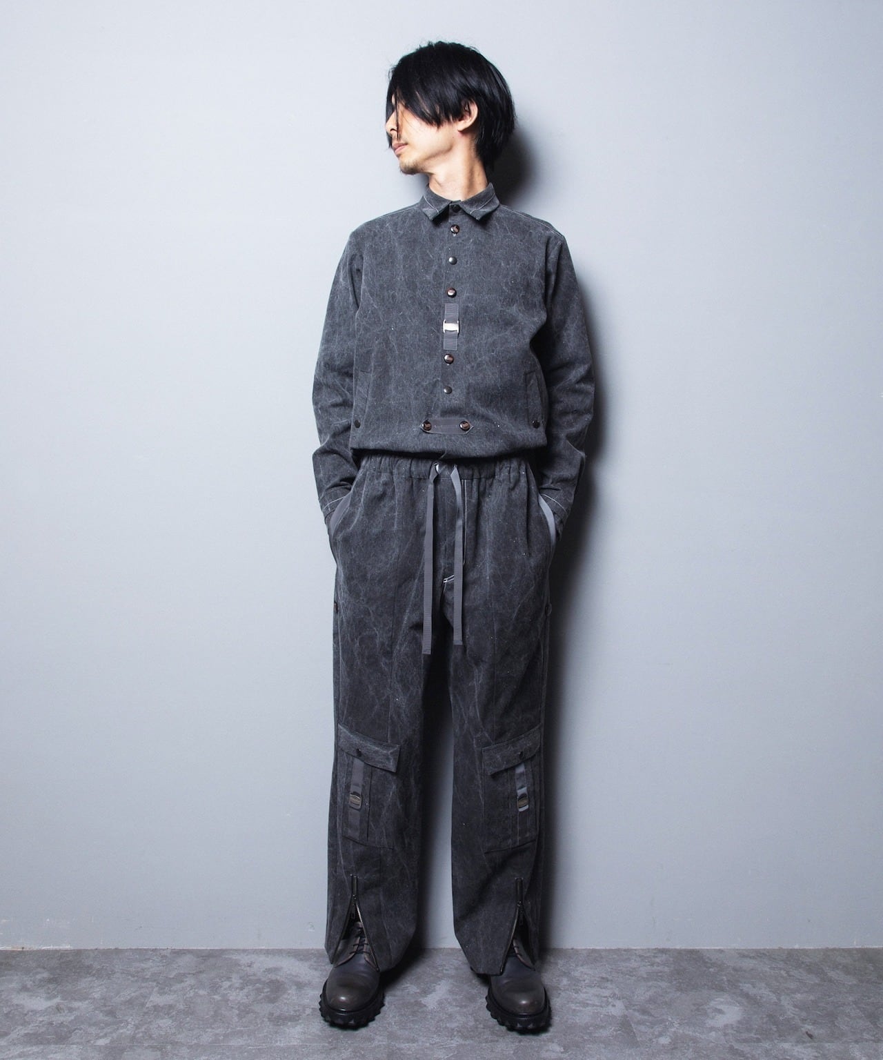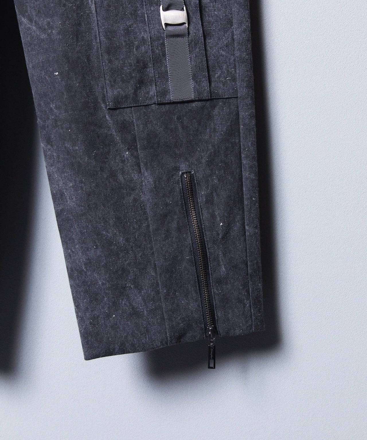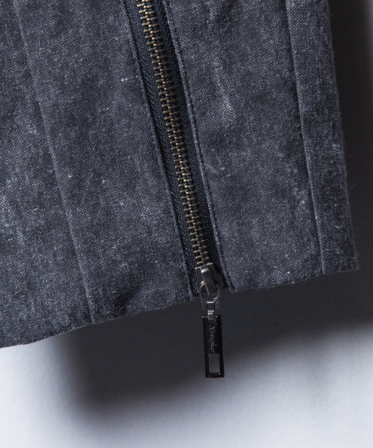 身生地には、顔料コーティングを施した厚みのある11号帆布にワッシャー加工を加えることで、ハリ感とシワ感のあるヴィンテージ調の風合いを持たせたコットン素材を使用。