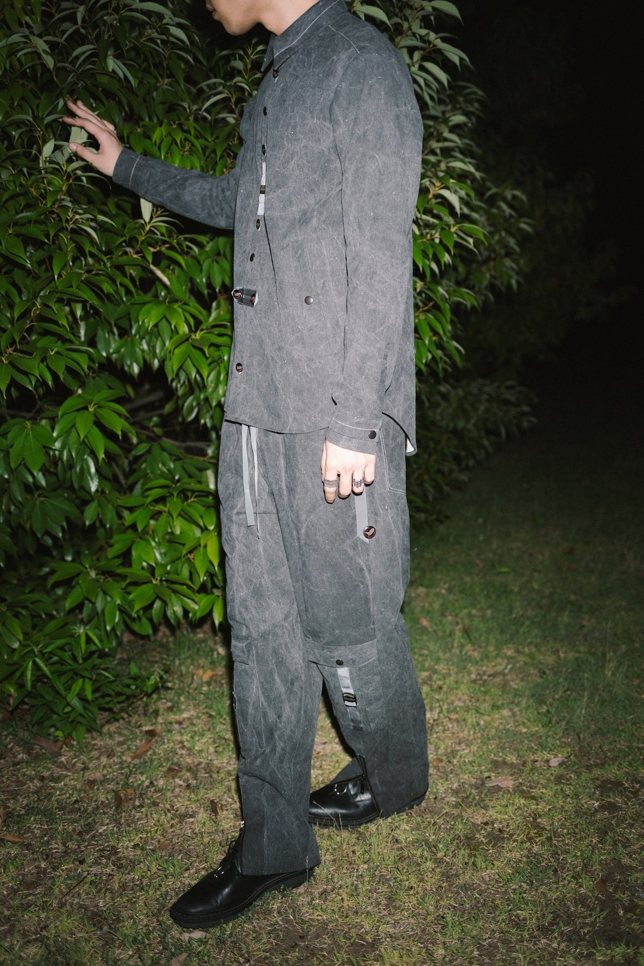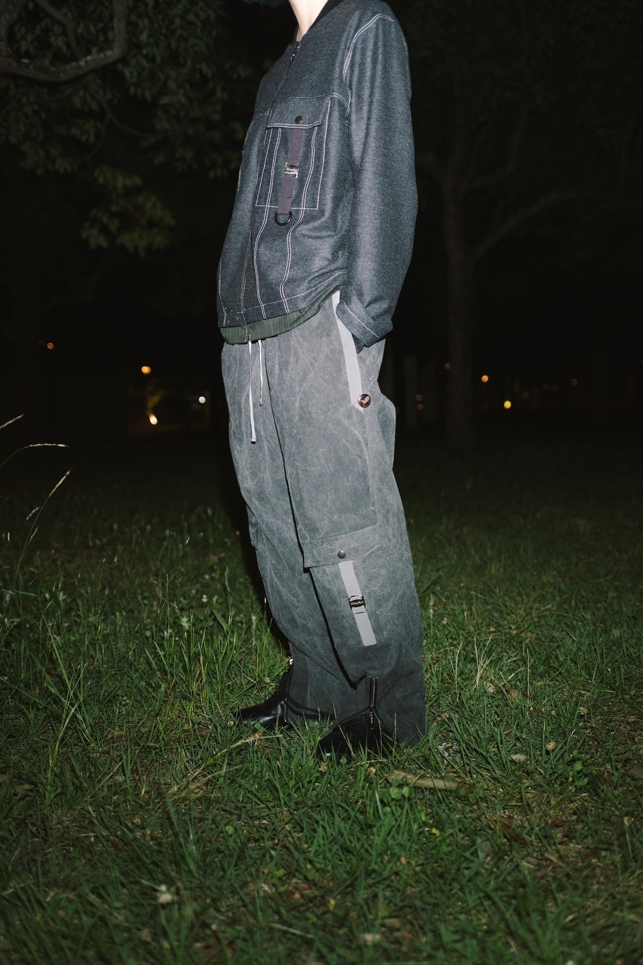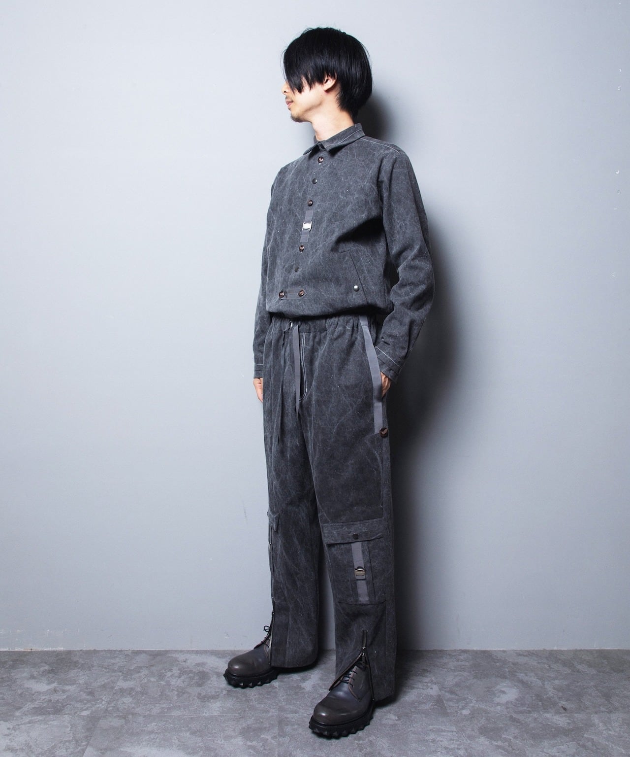 身生地には、顔料コーティングを施した厚みのある11号帆布にワッシャー加工を加えることで、ハリ感とシワ感のあるヴィンテージ調の風合いを持たせたコットン素材を使用。