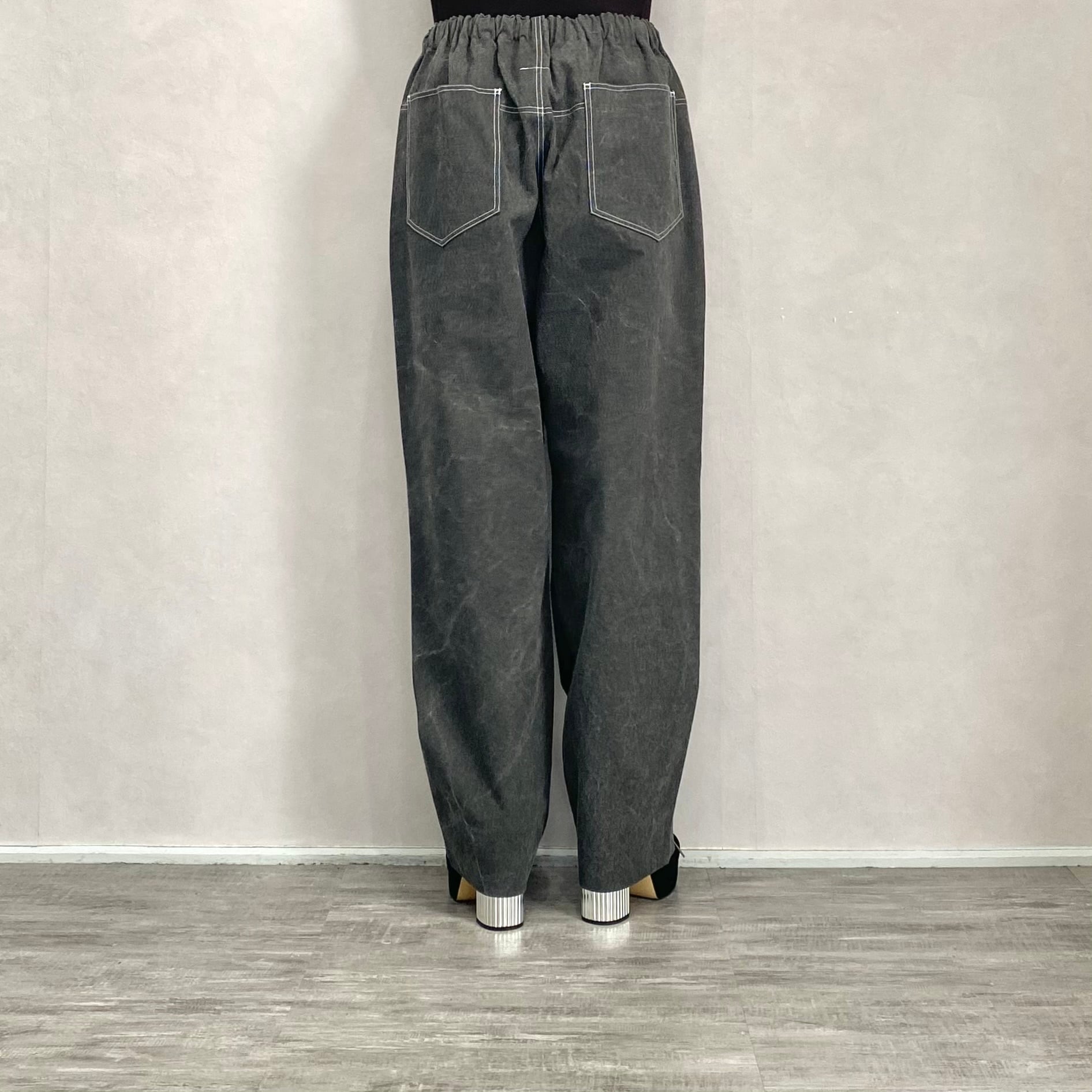 シルエットはゆったりめで、テーパードの効いたワイドイージーパンツ。