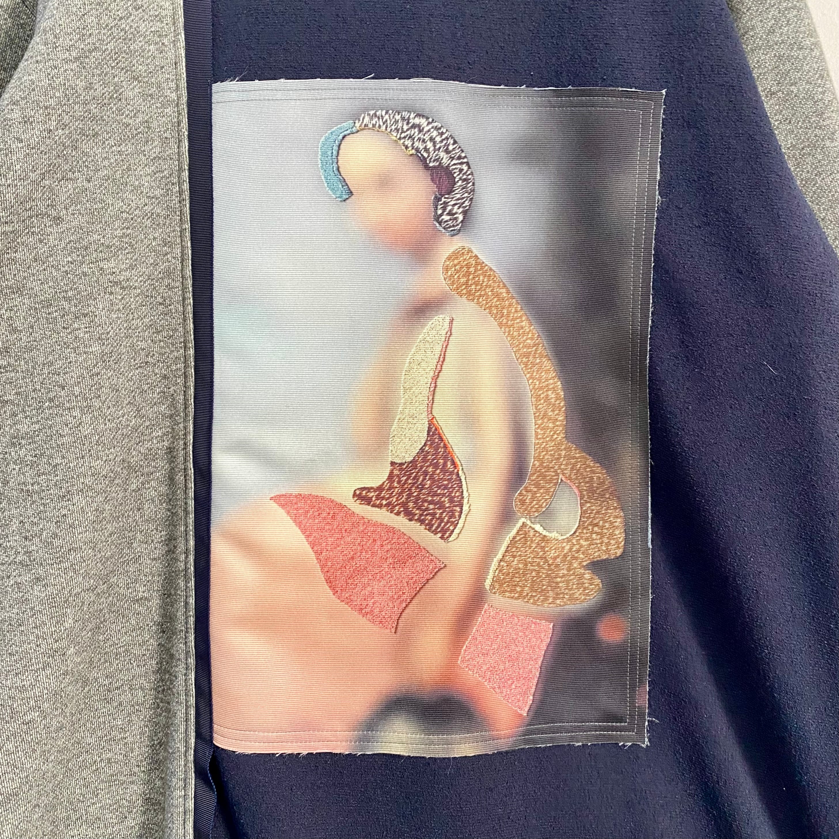 マティゴ氏自身が撮影した写真を生地にプリント・手刺繍を施した作品を生地に。