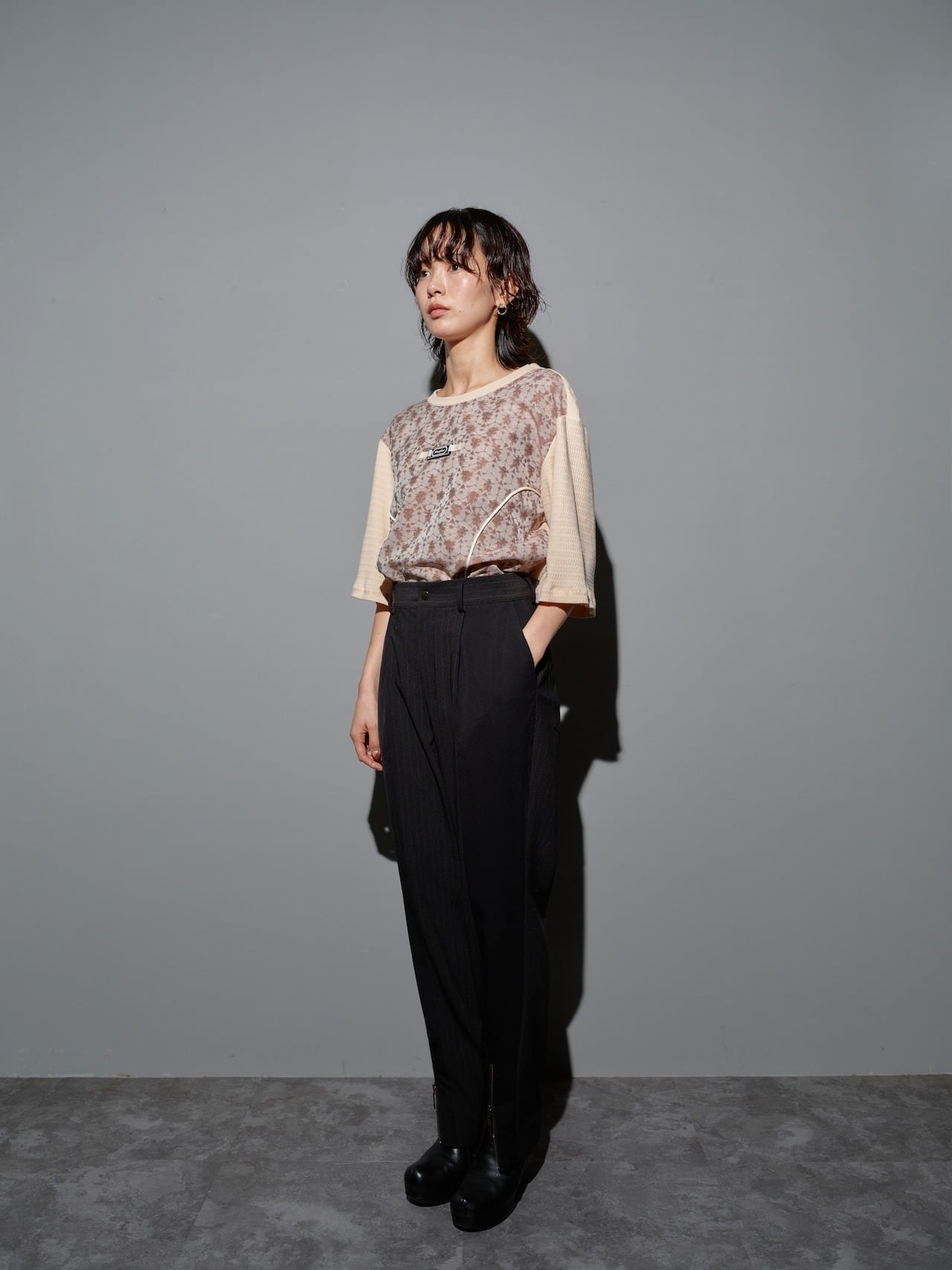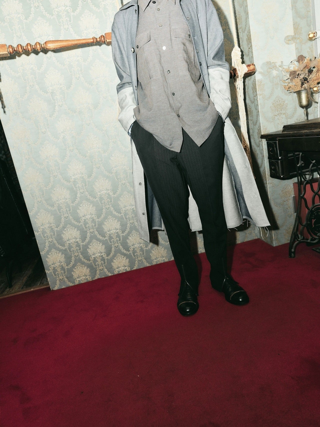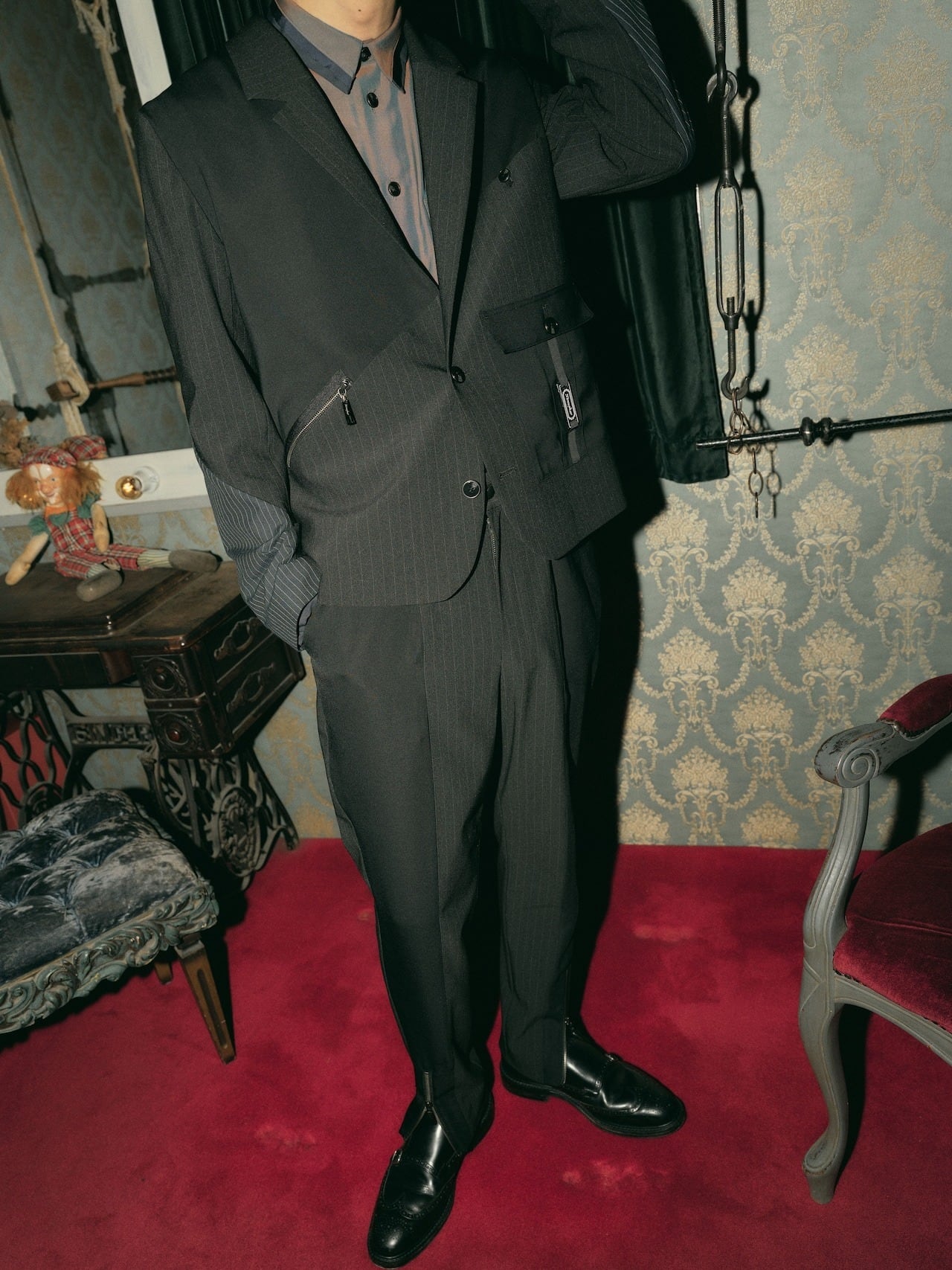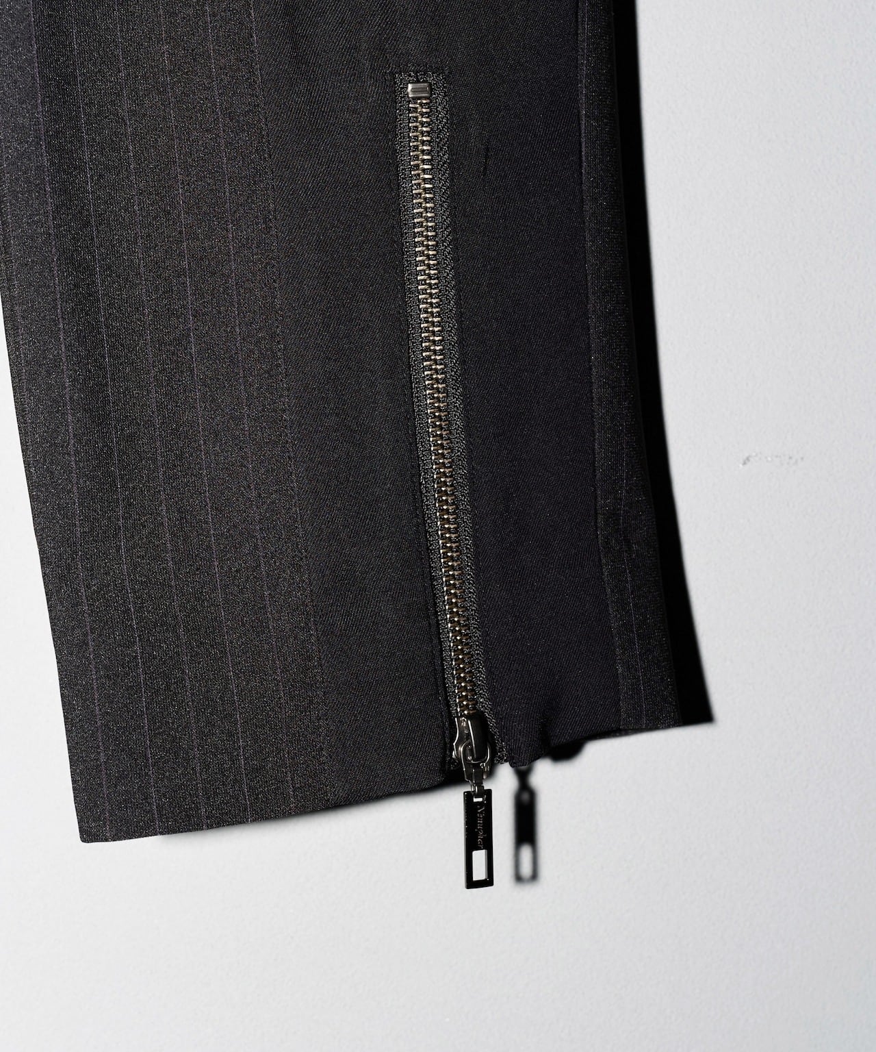 スラックスとジーンズのディティールをミックスしたデザイン。