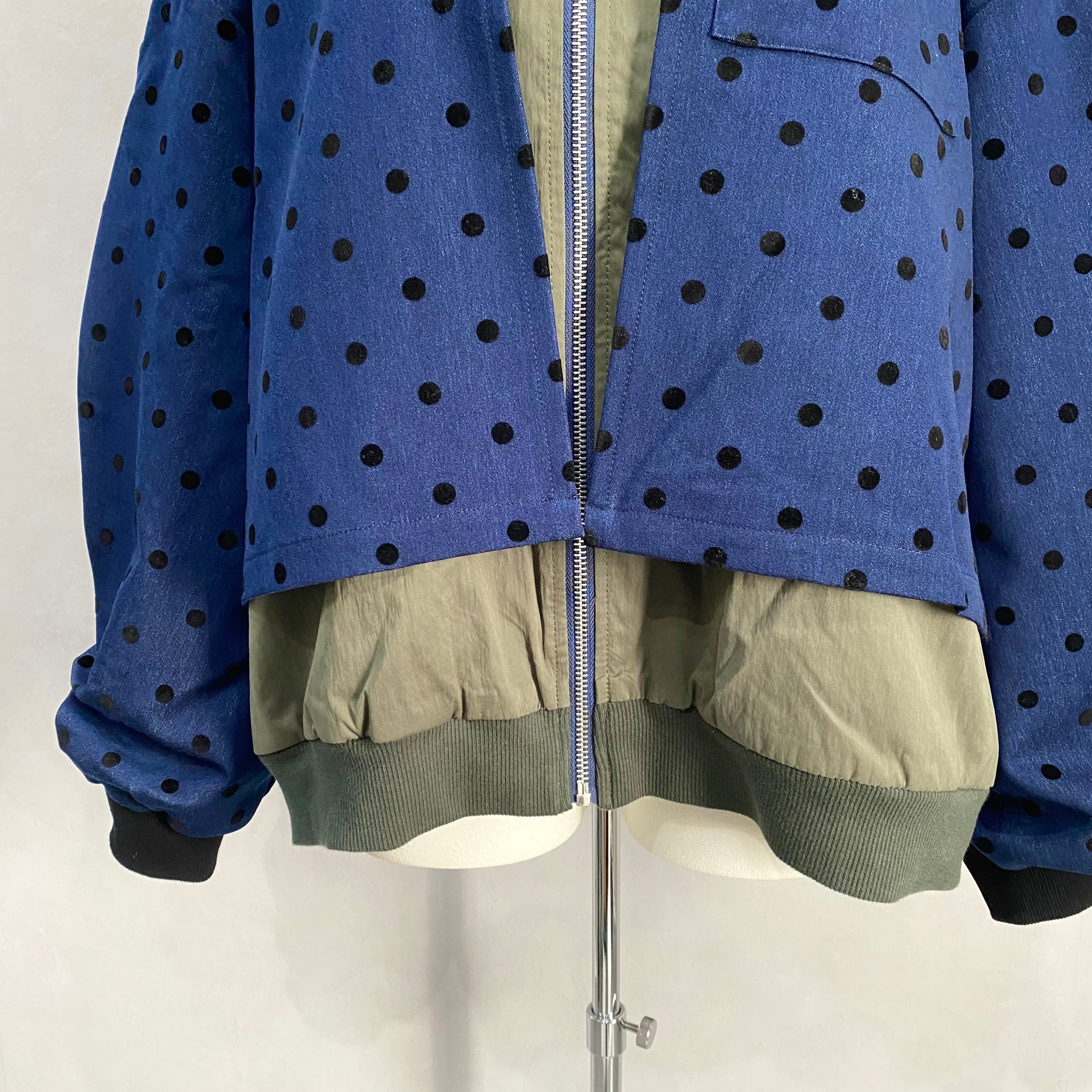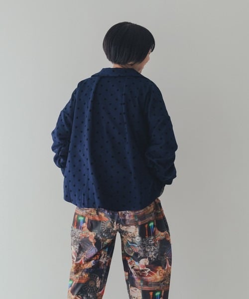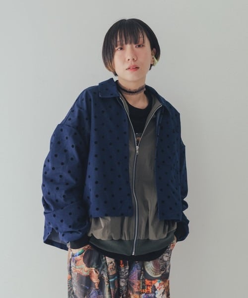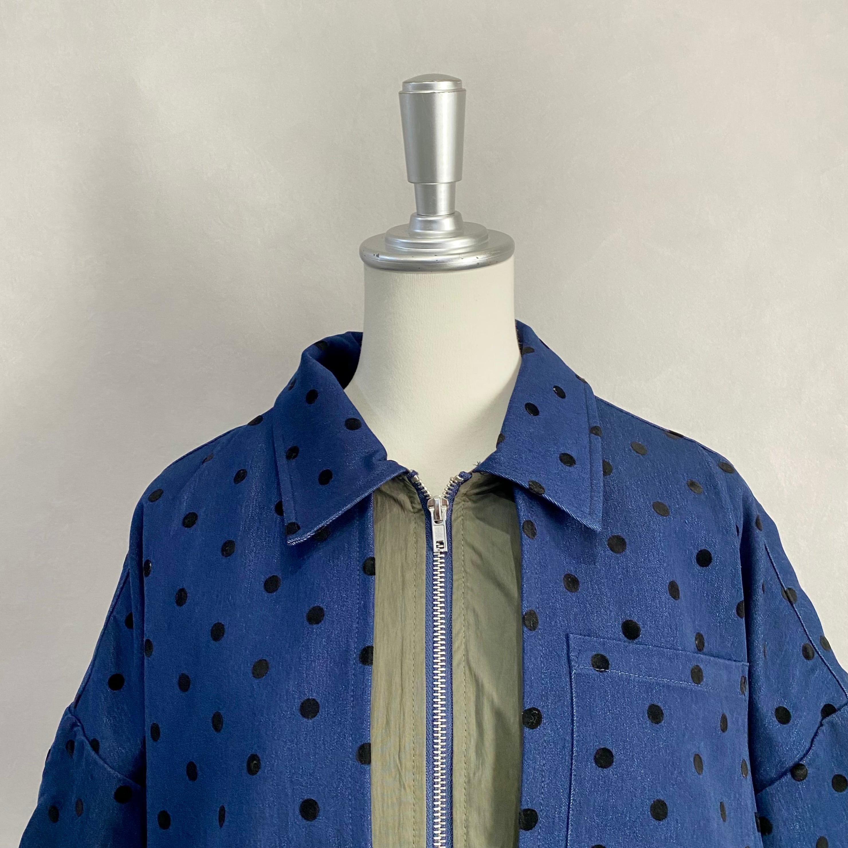 ドット柄のダンガリー生地を使ったジャケットは