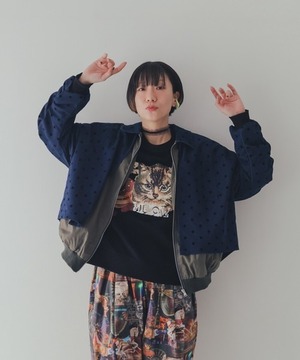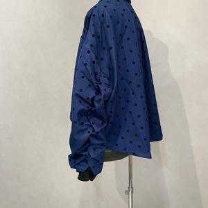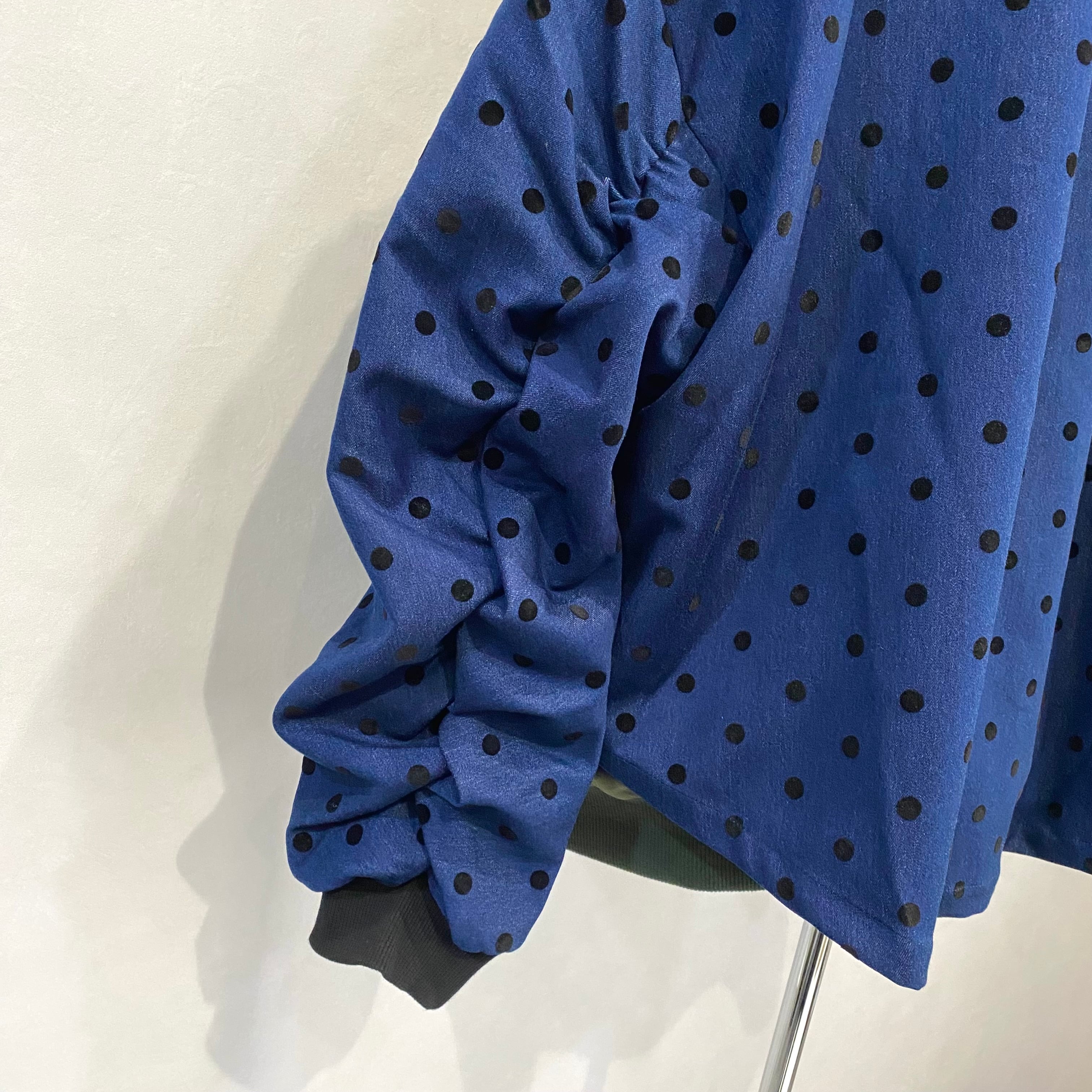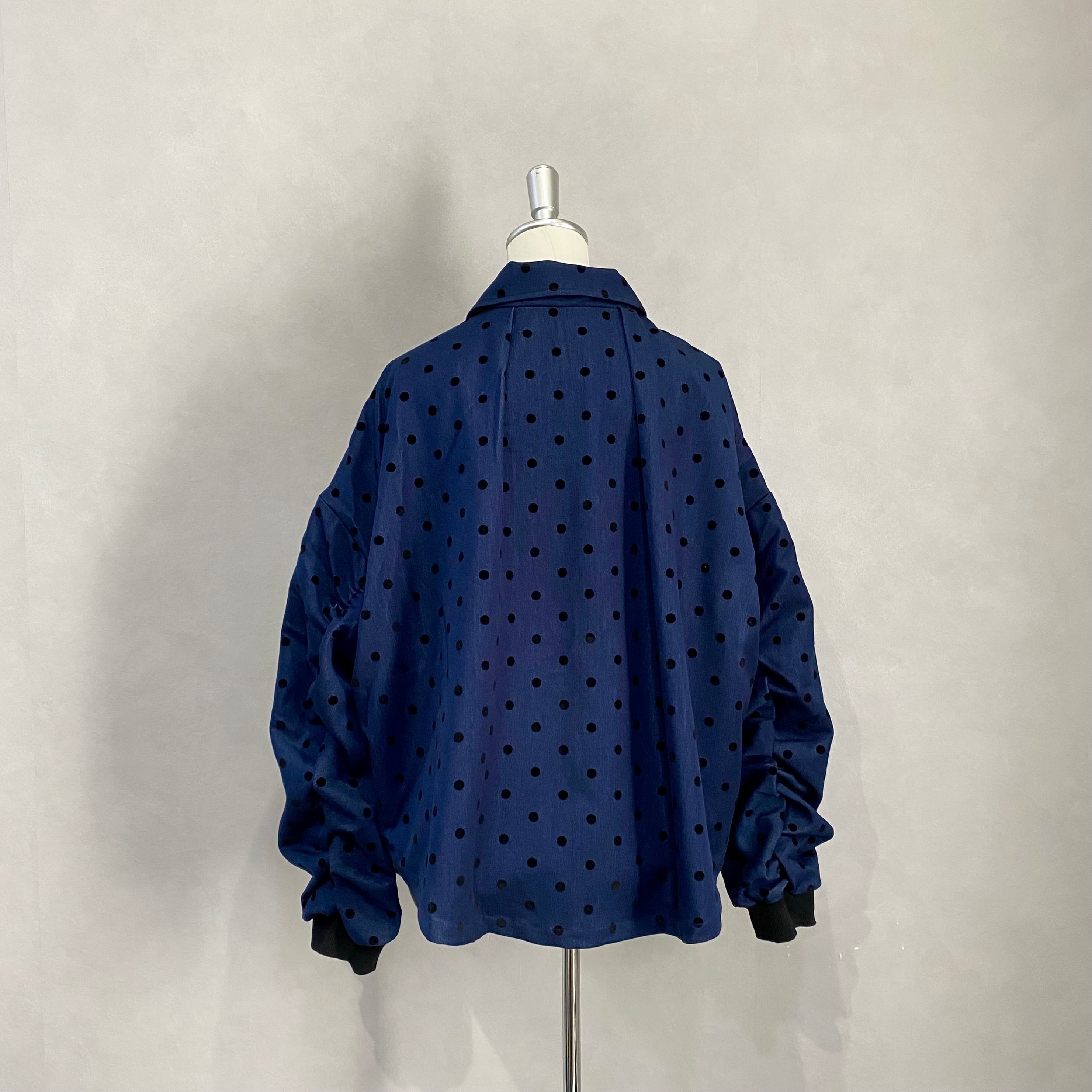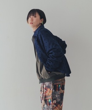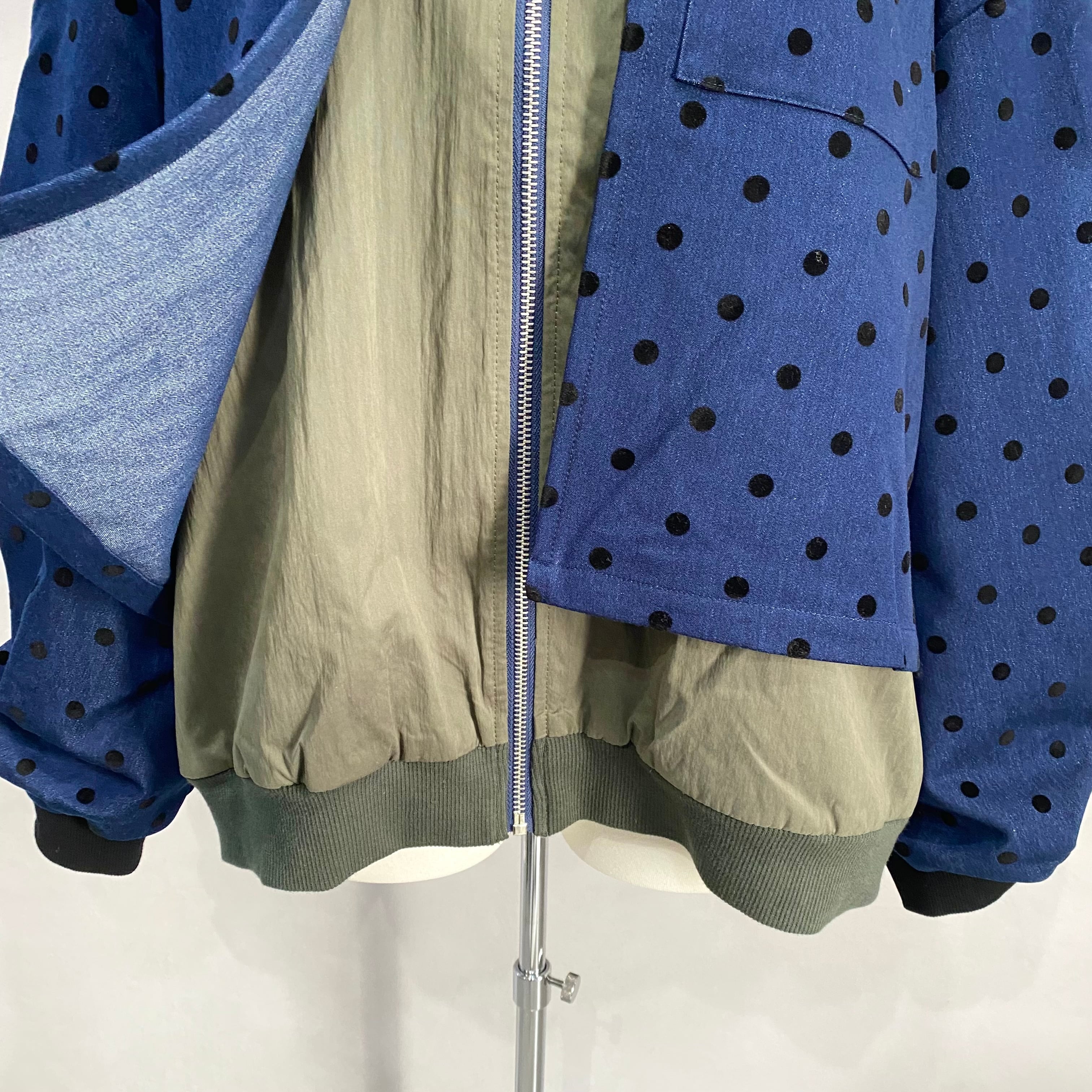 ドット柄のダンガリー生地を使ったジャケットは