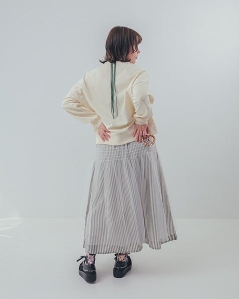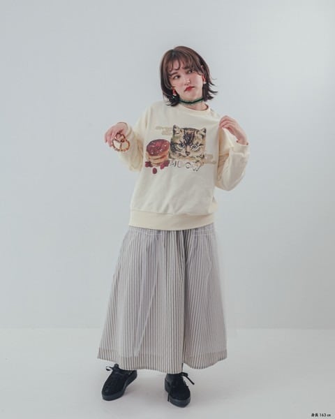 肩の位置を落としたドロップショルダーはラフさと可愛らしさを演出するだけでなく、