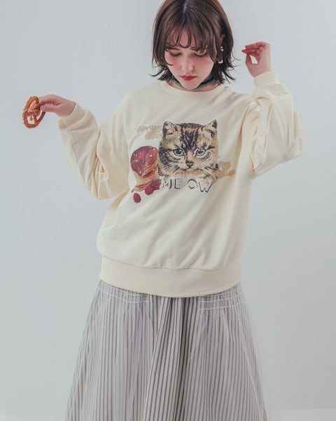 こっくり甘いスイーツをコラージュしたトレーナーは、