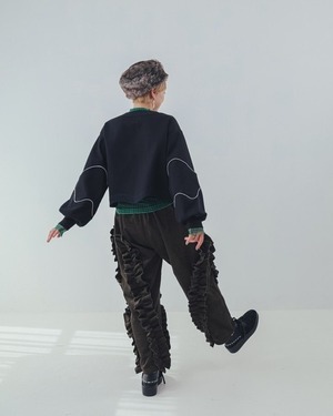アシンメトリーにあしらった立体感あるフリルが