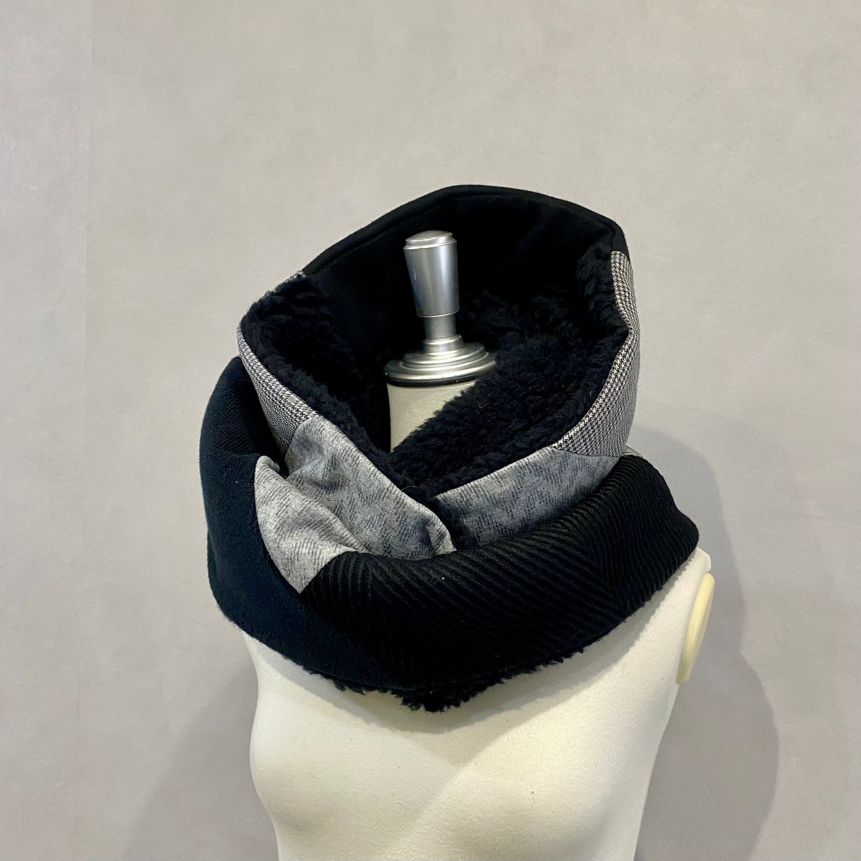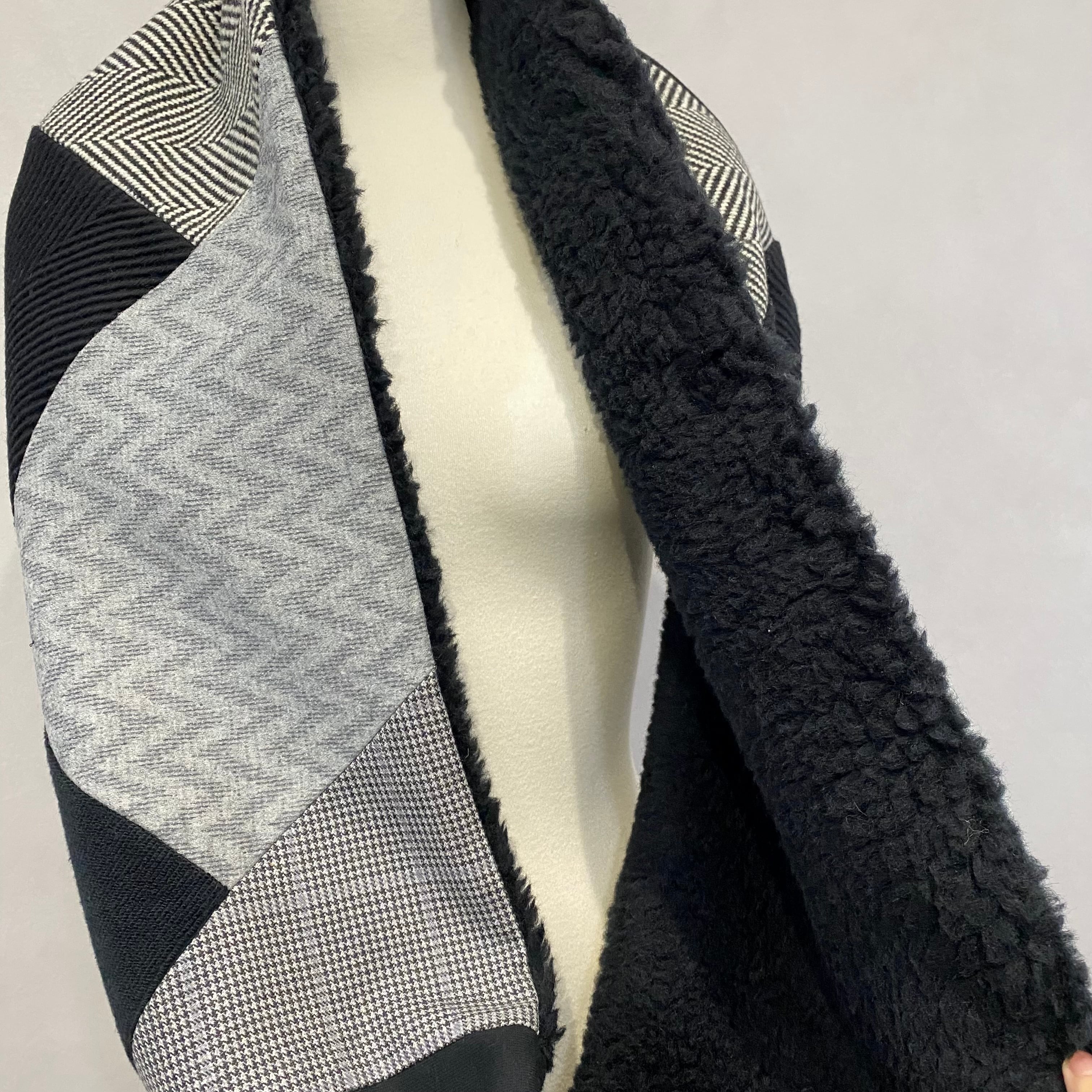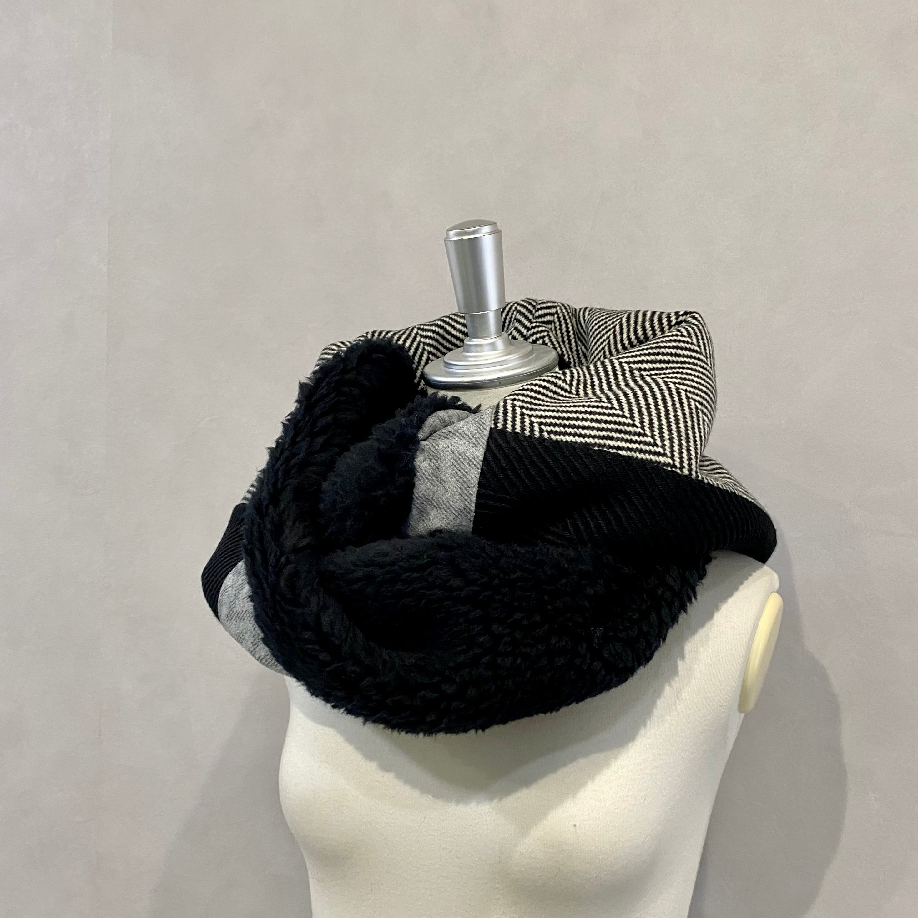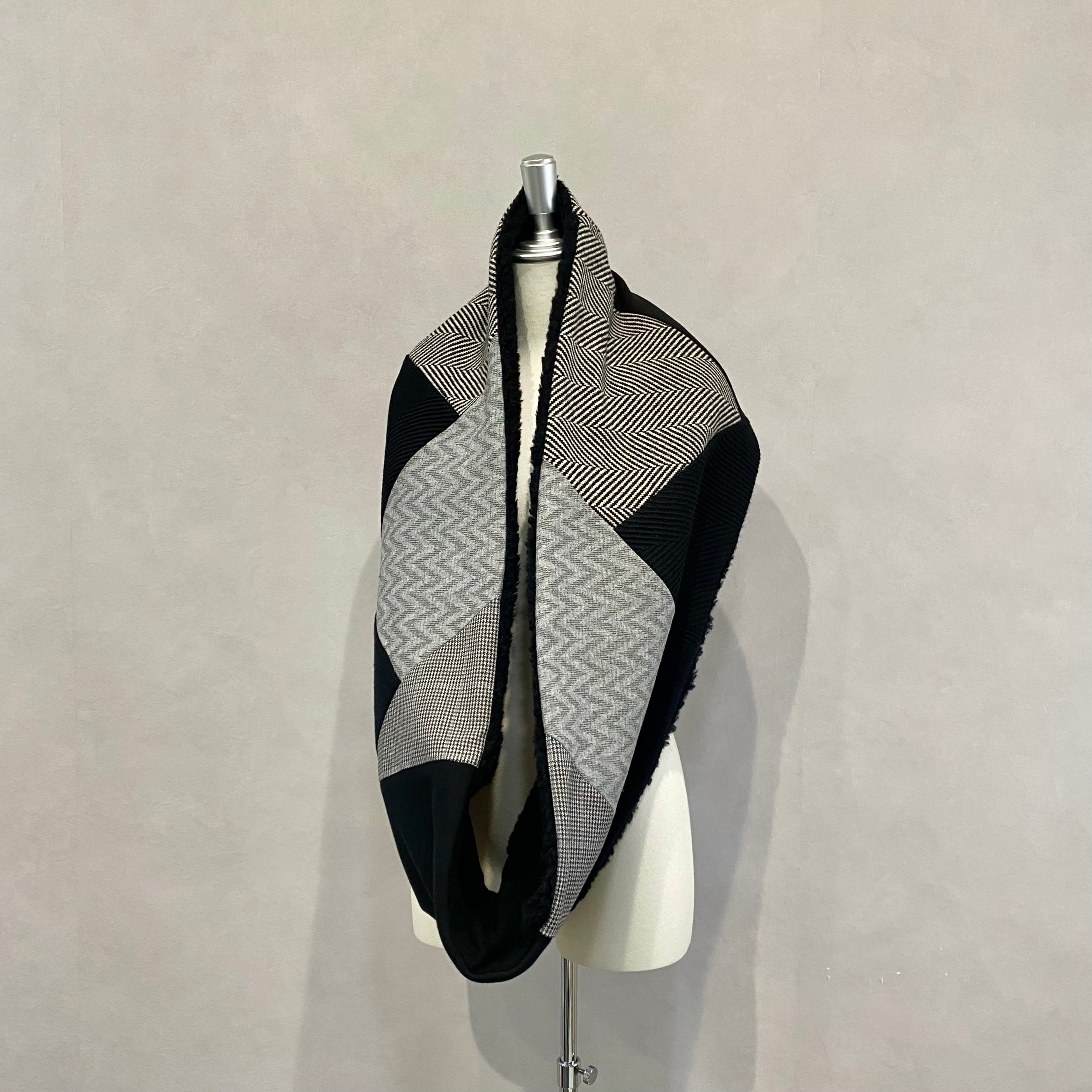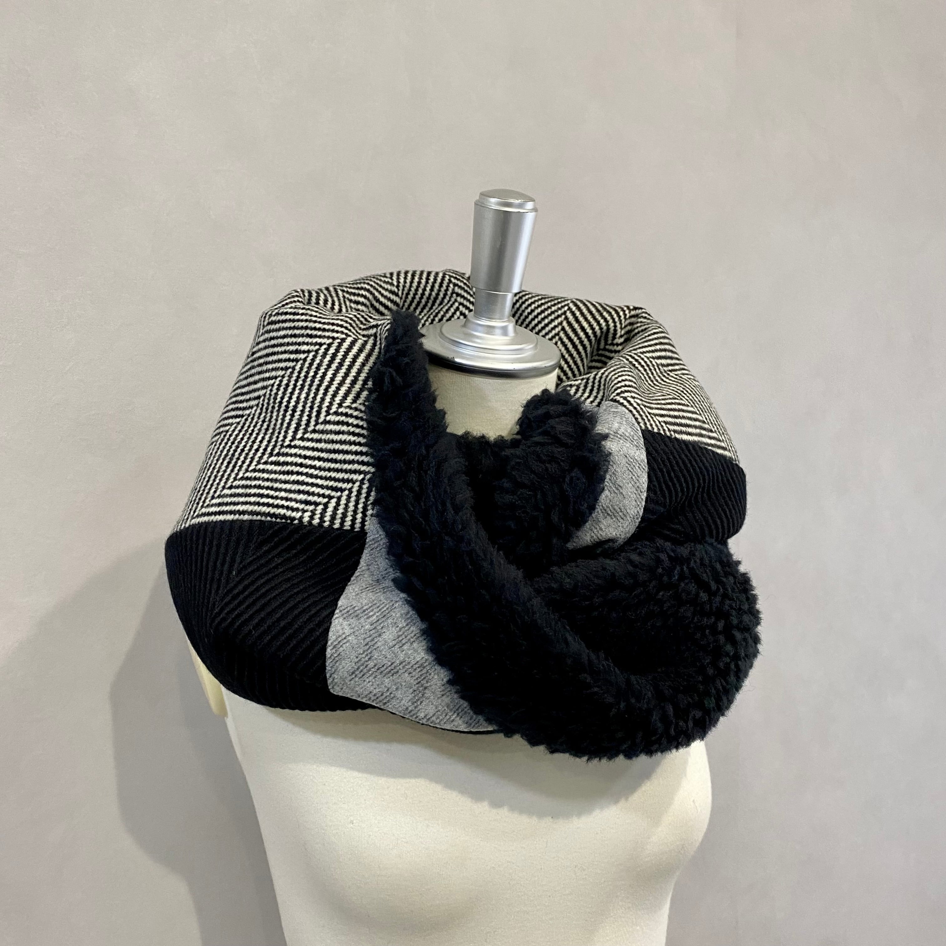 八の字巻きでしっかり防寒・肩に掛けるだけでも素敵です◎