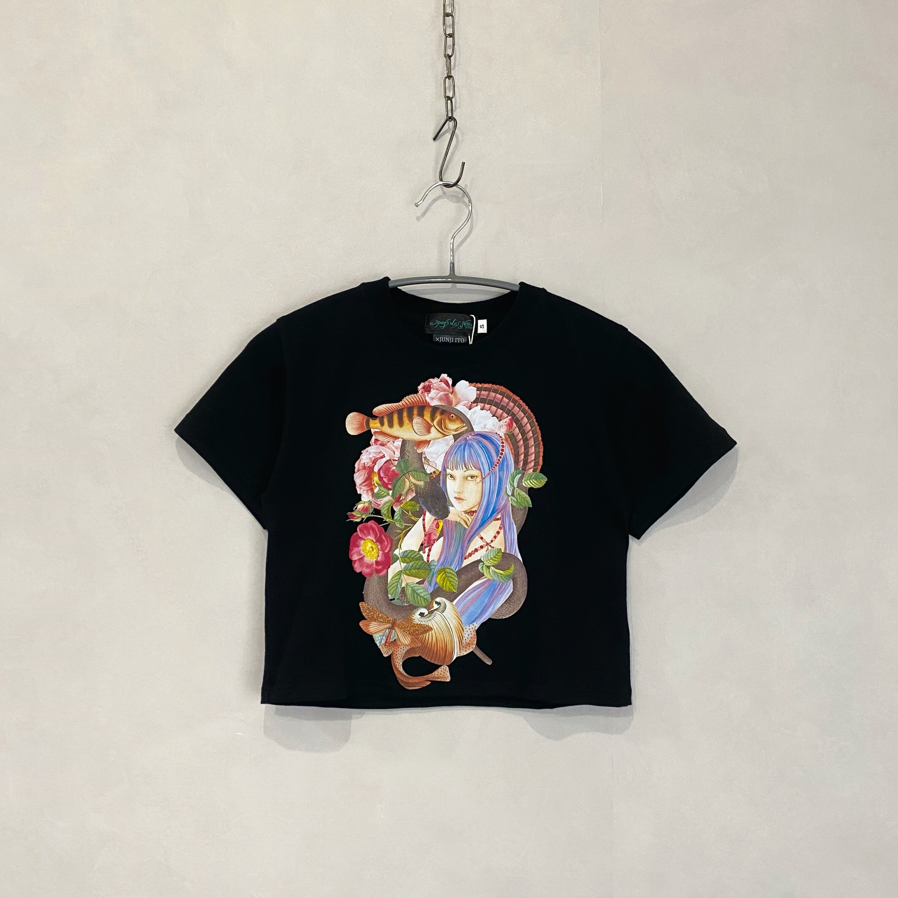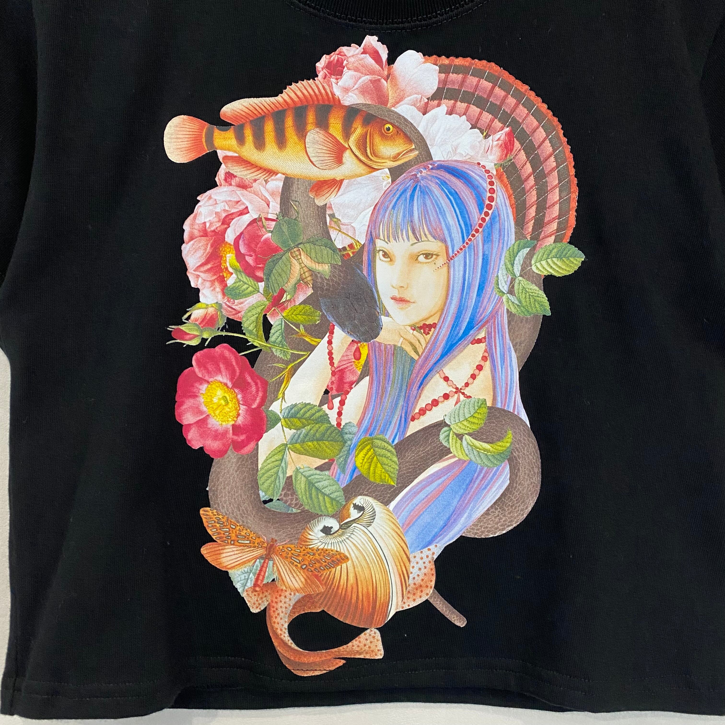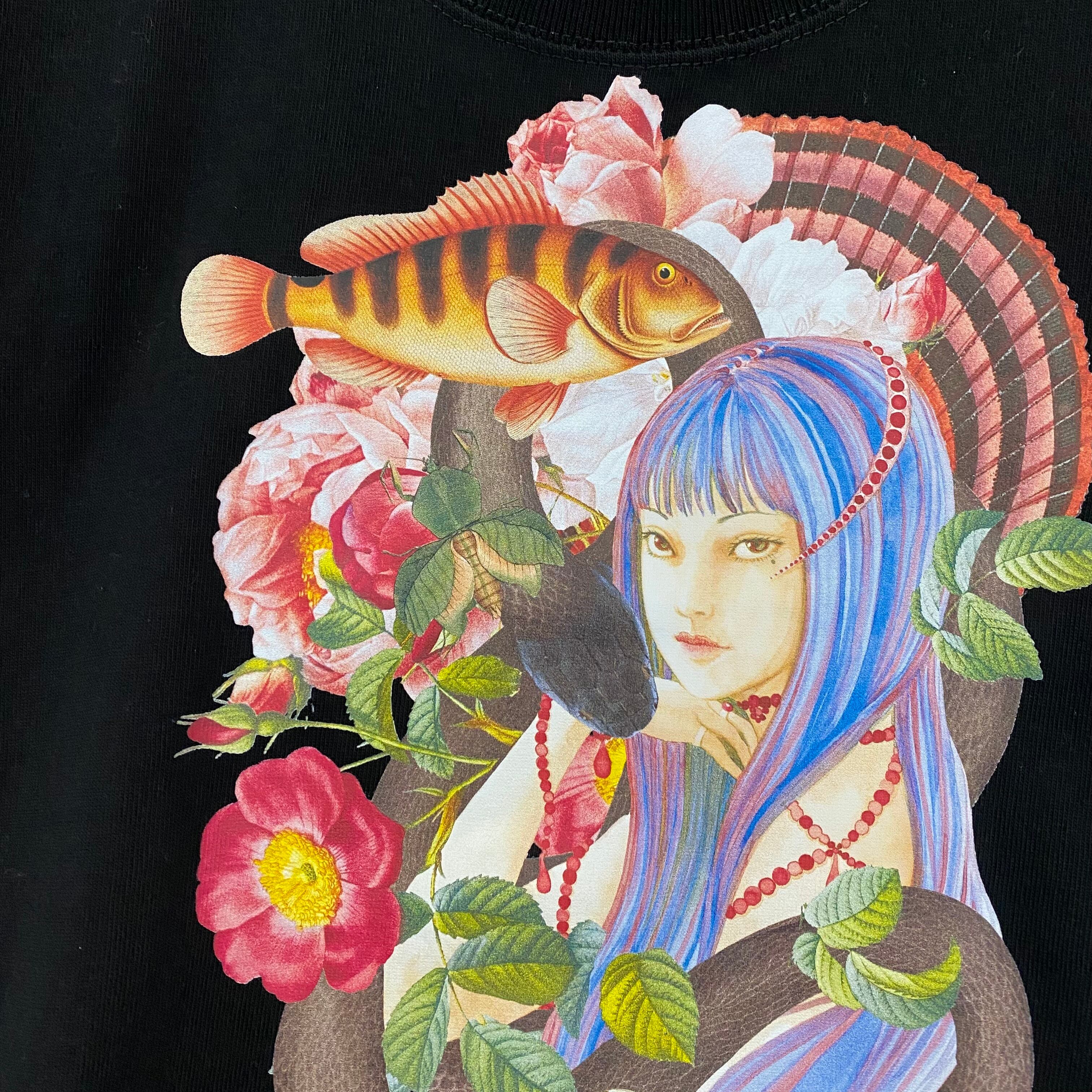 妖艶な富江と、博物画の蛇をコラージュしたグラフィック。