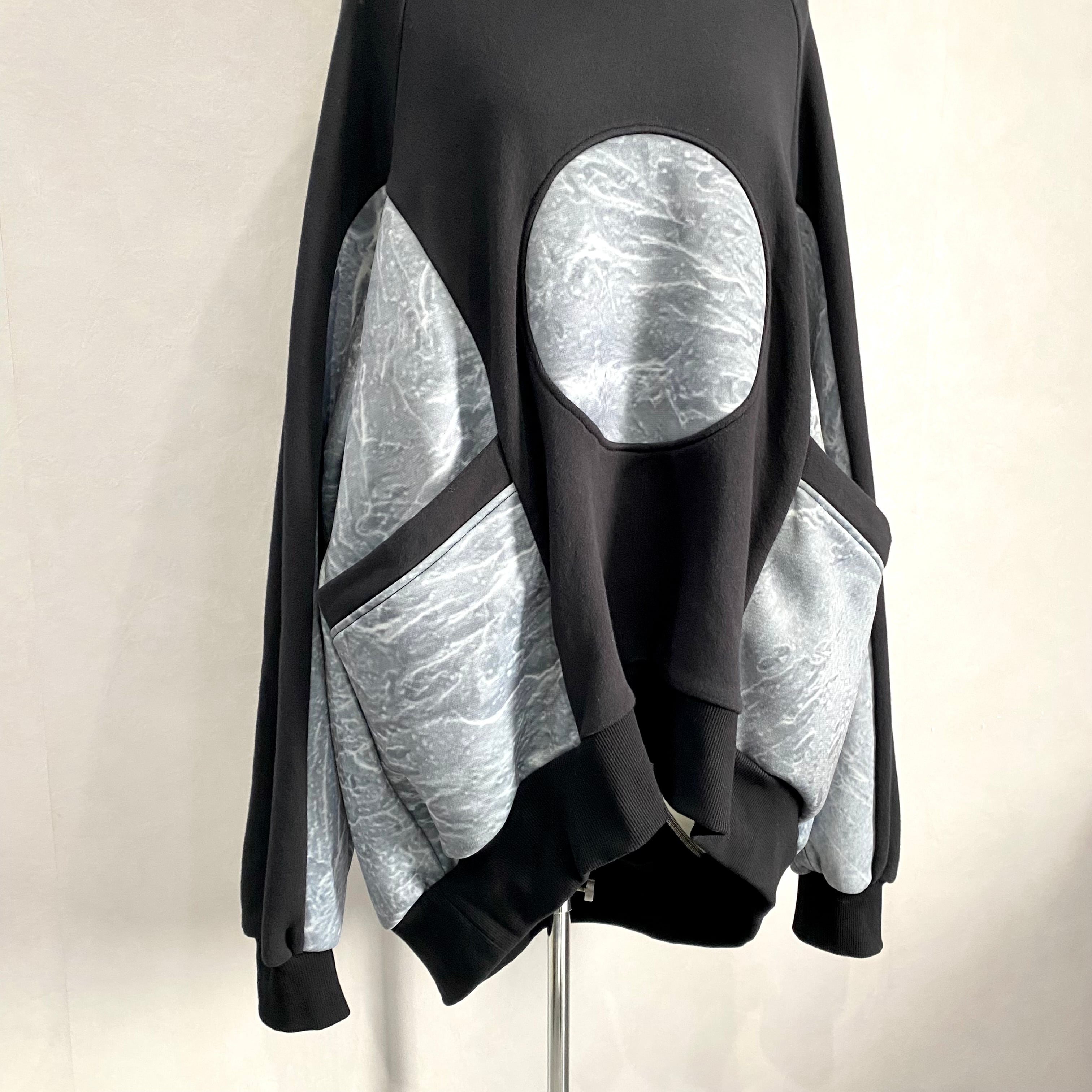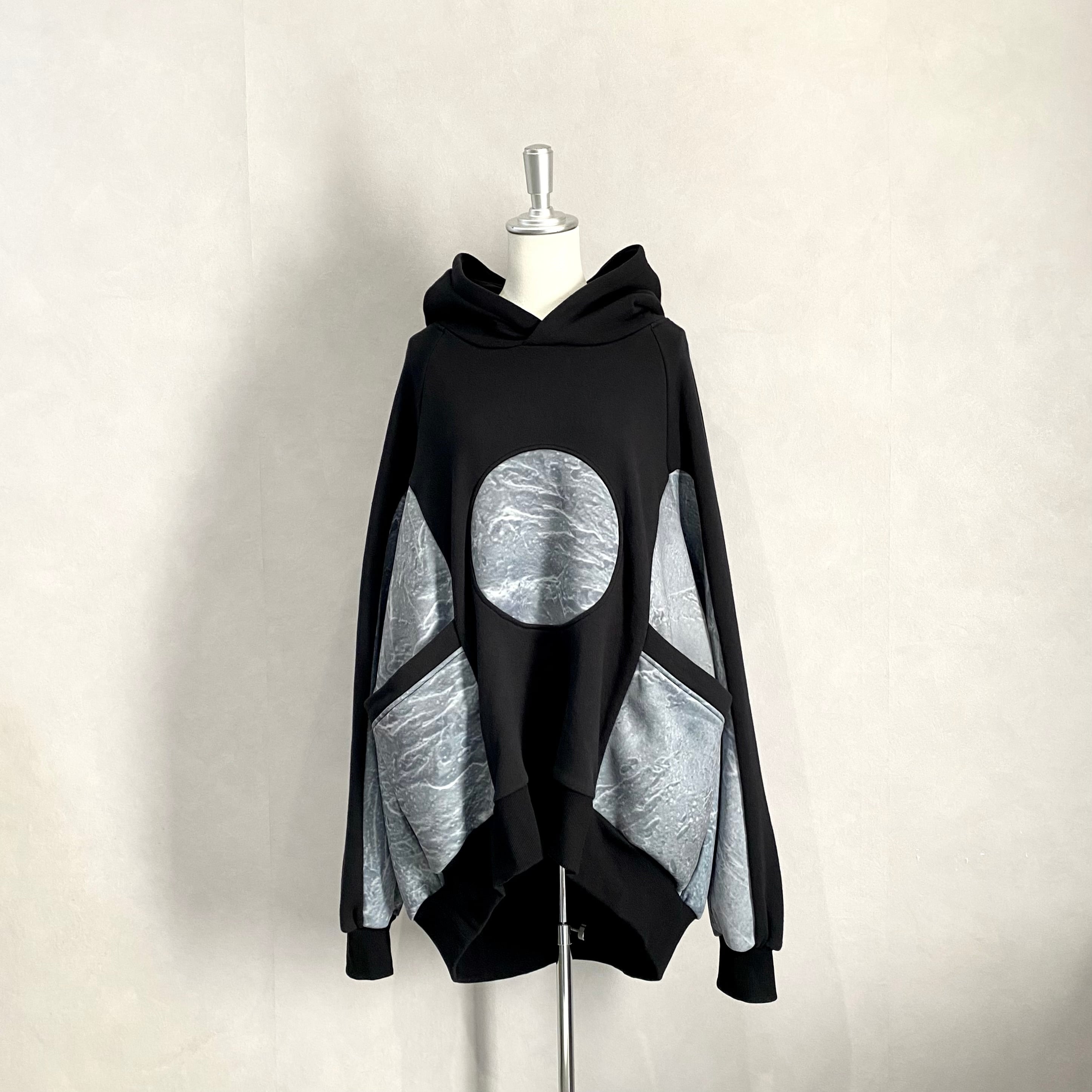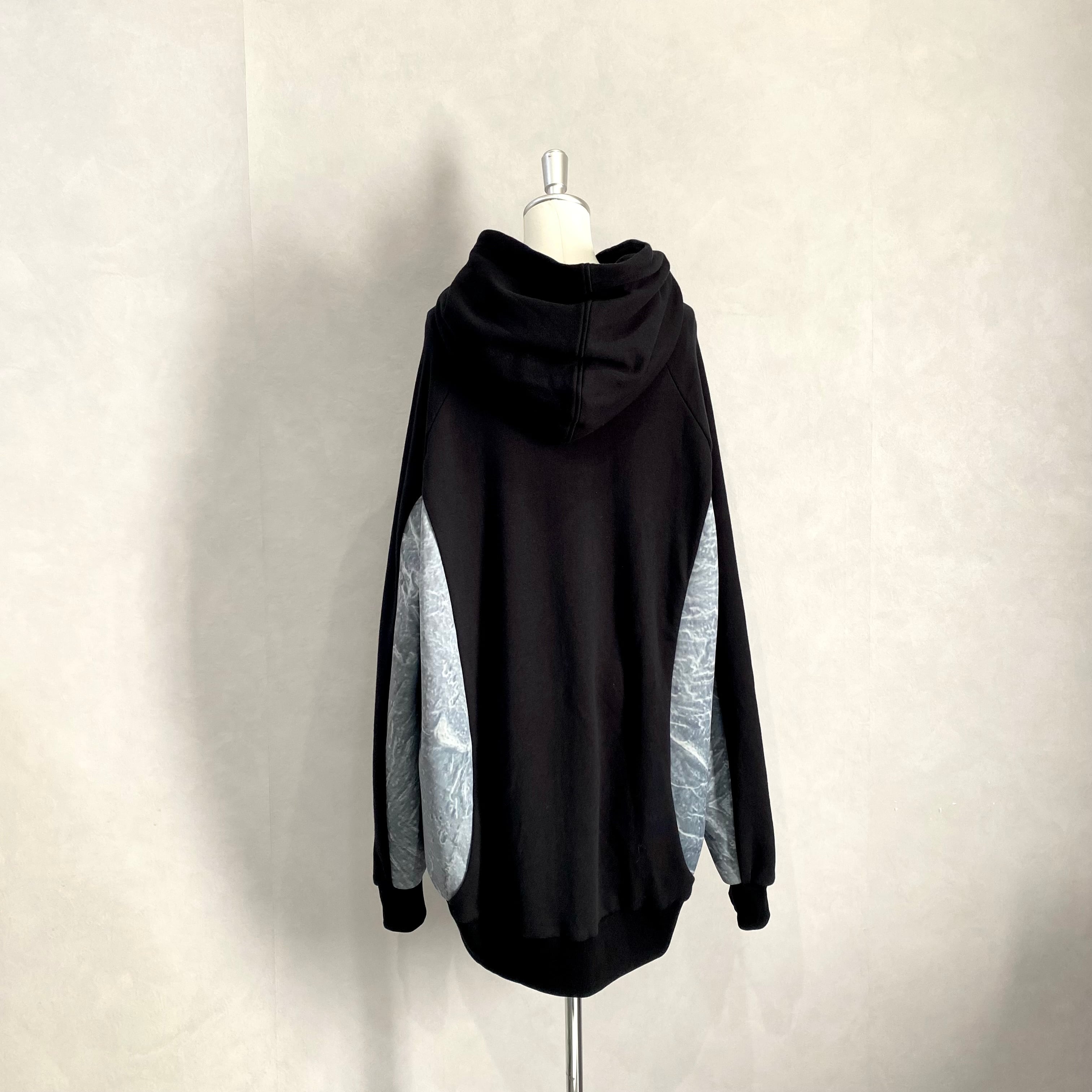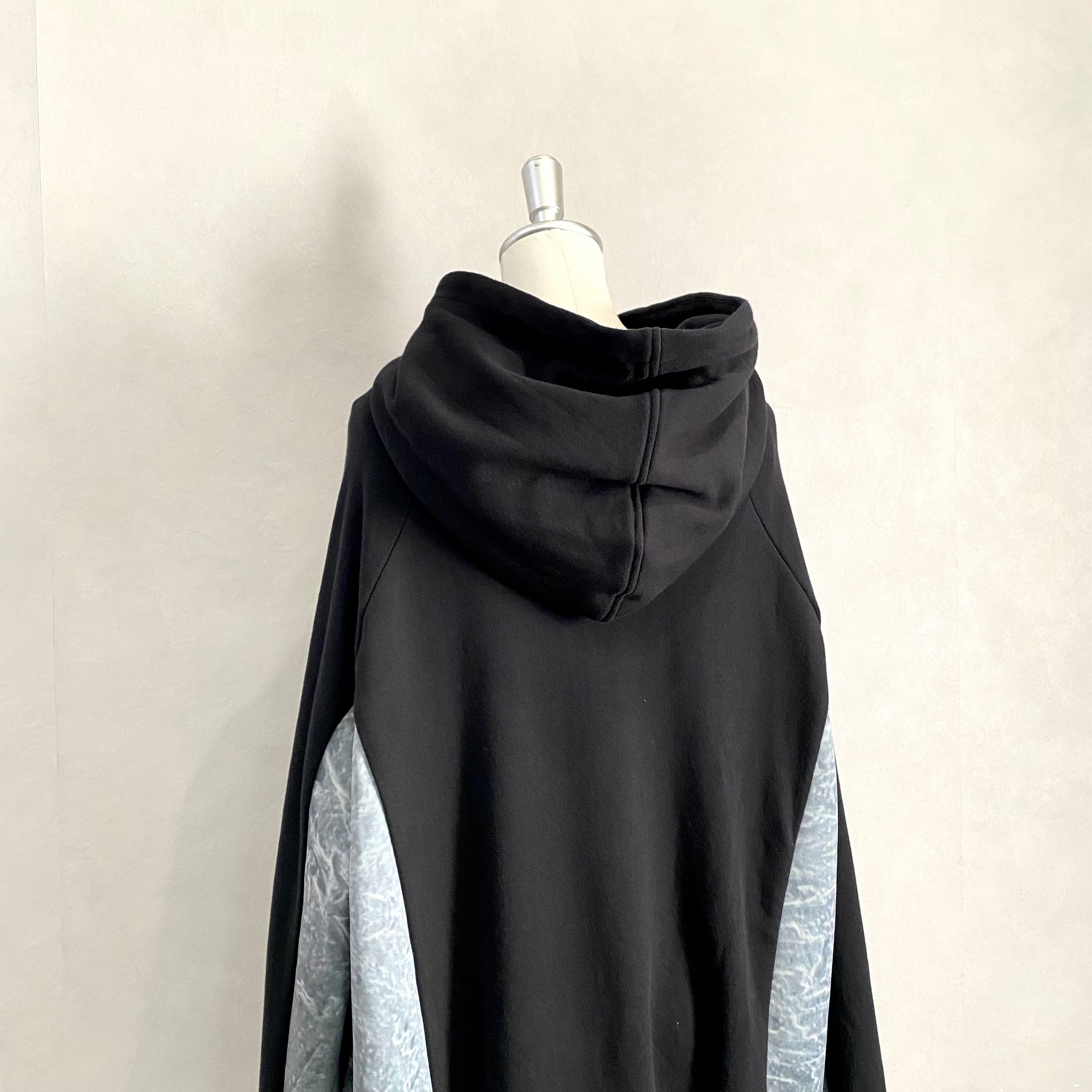 大きめのポケットがサイドに配置された厚手フーディです。