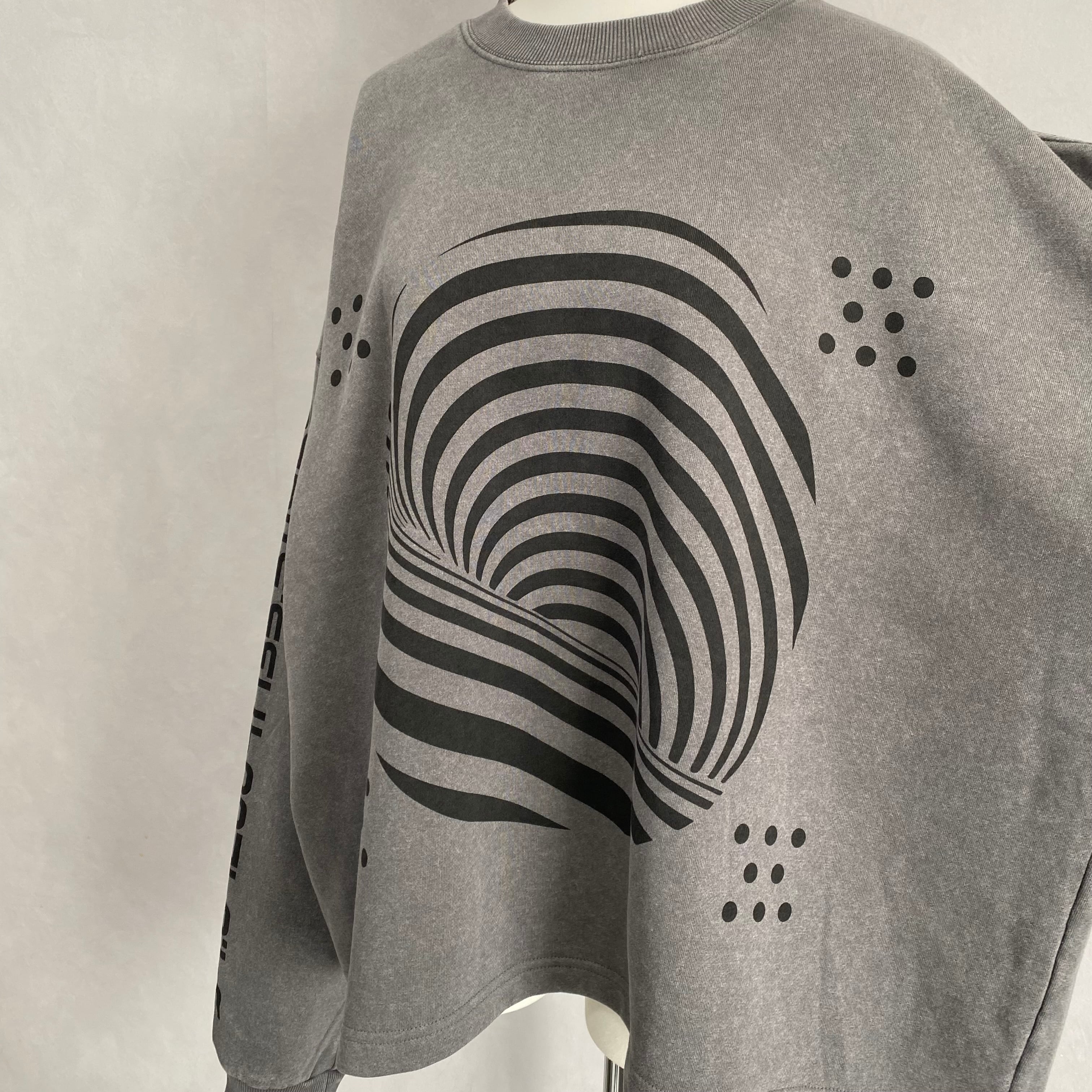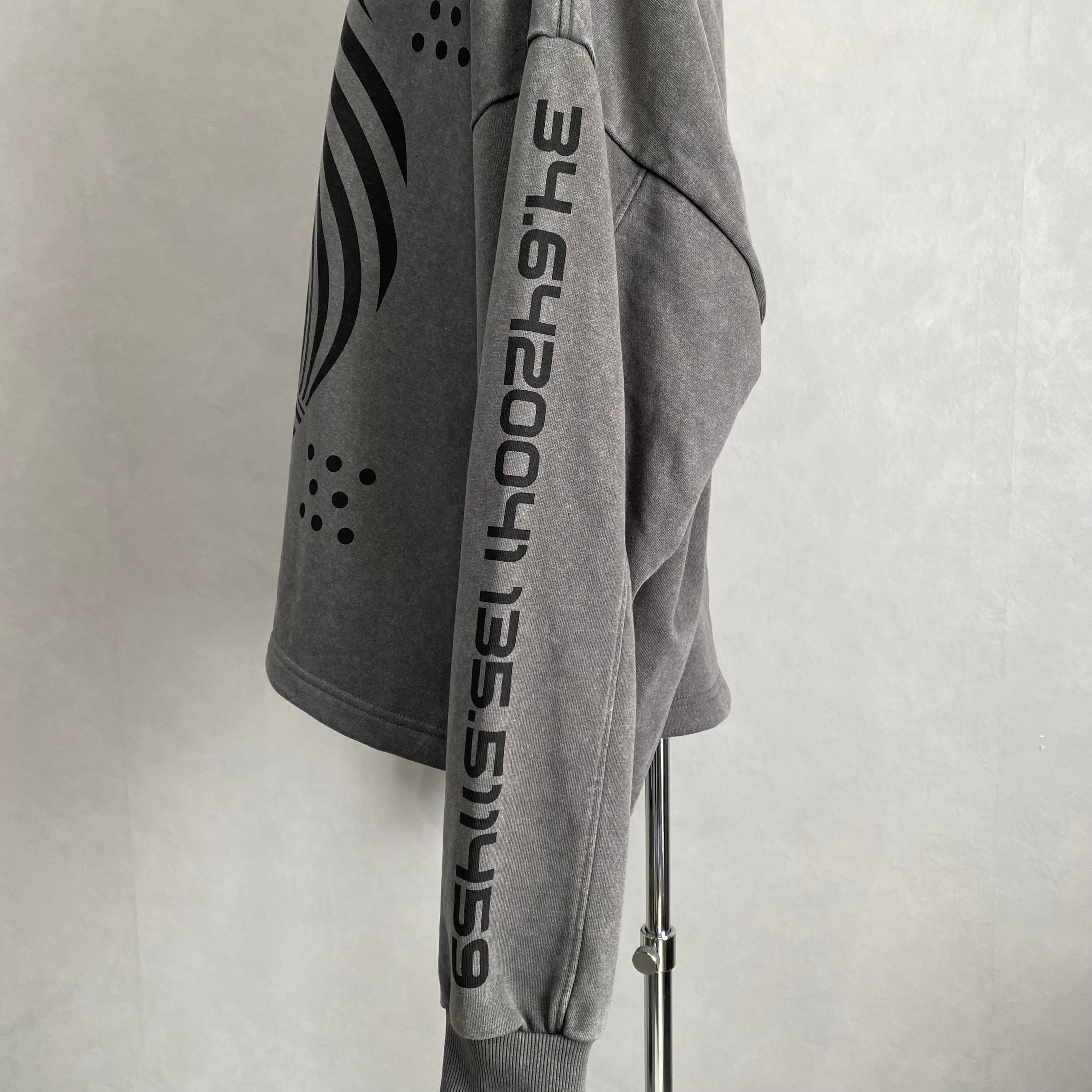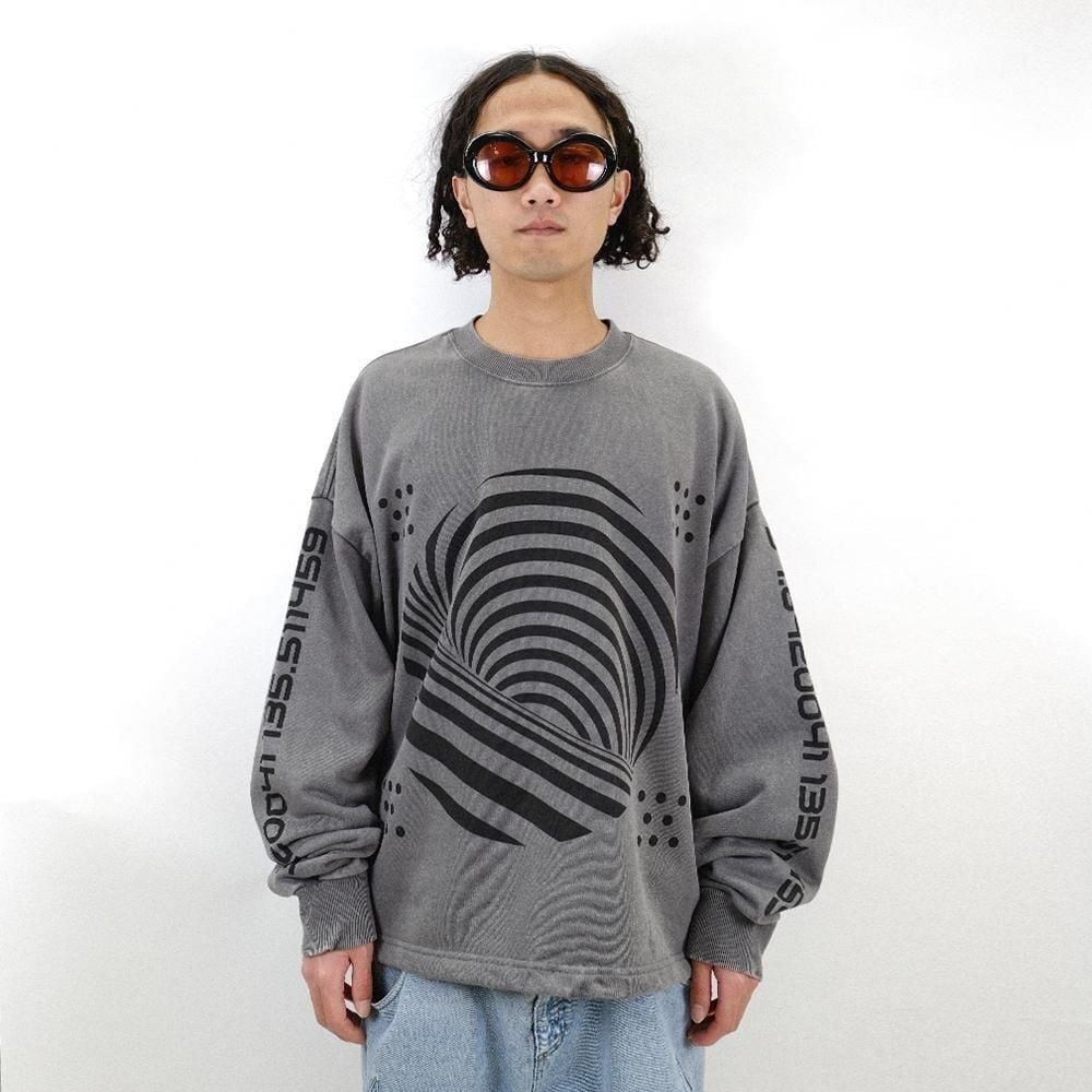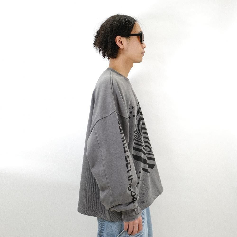 印象的なグラフィックを大きく配した裏パイルスウェット。