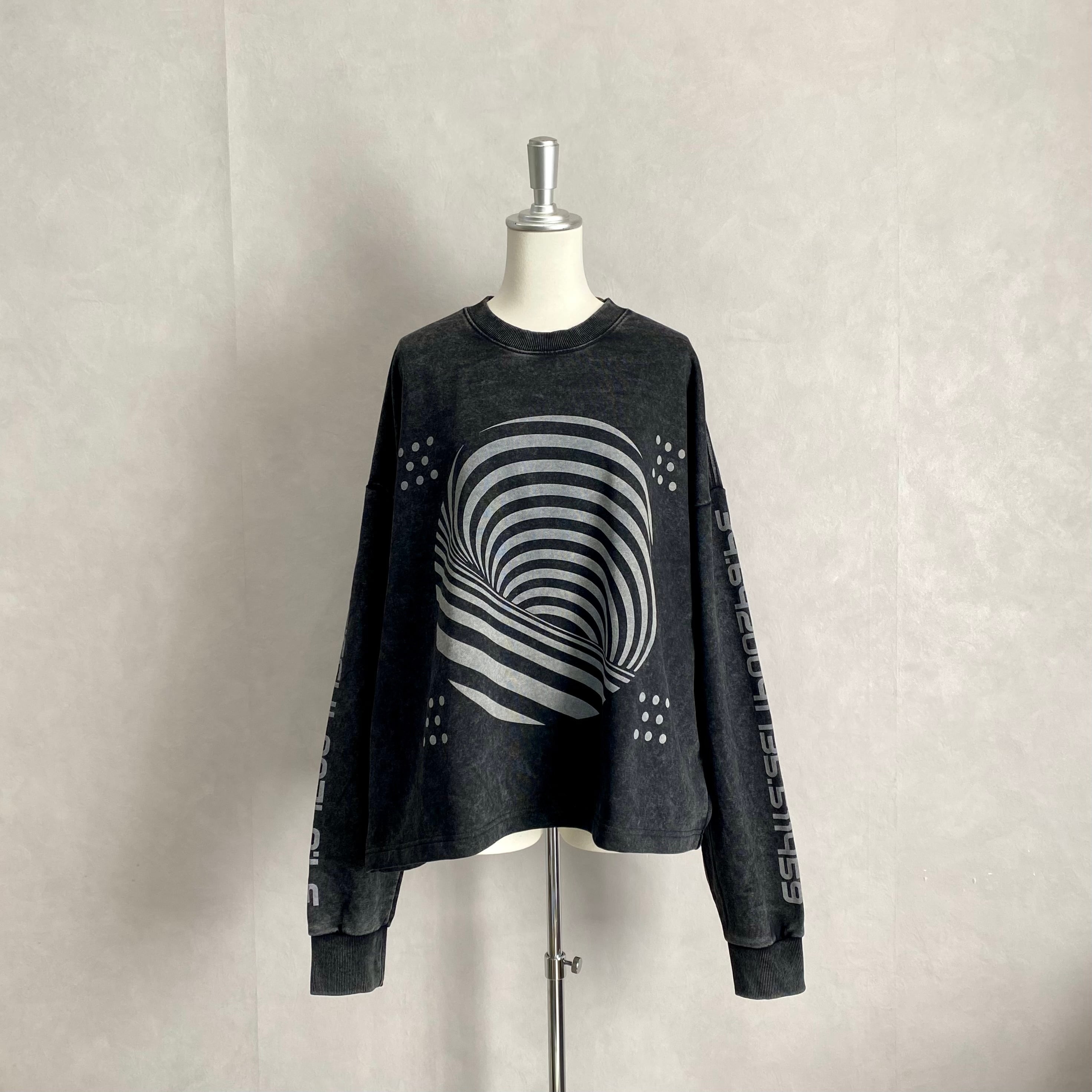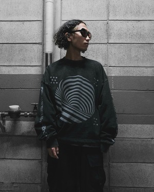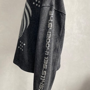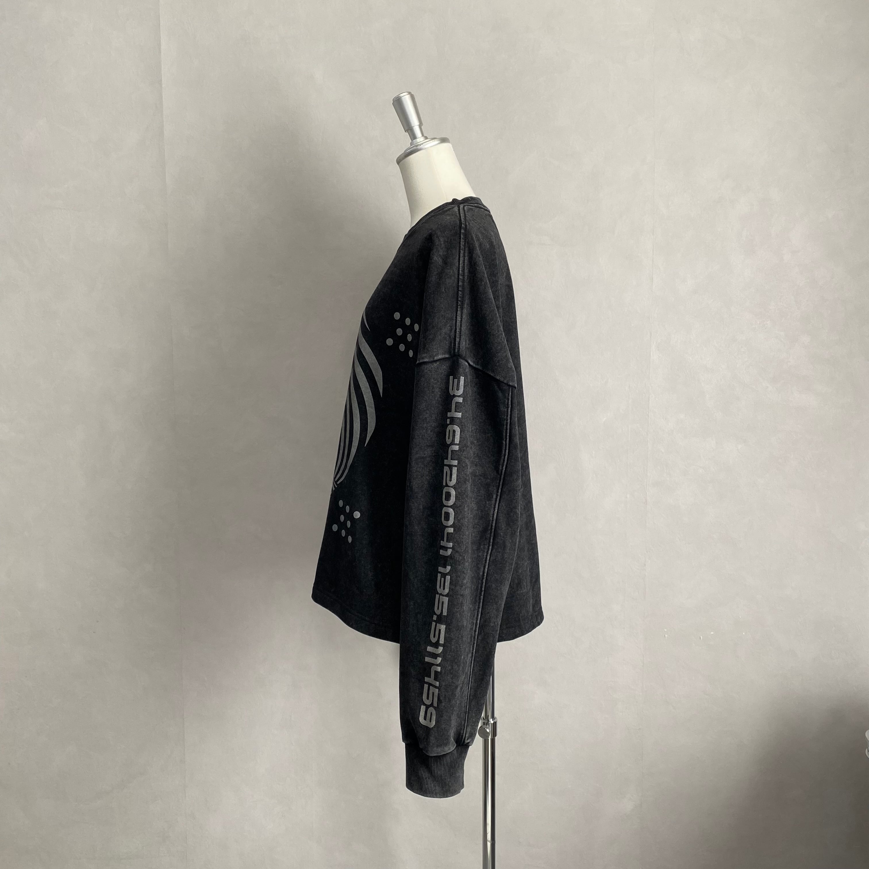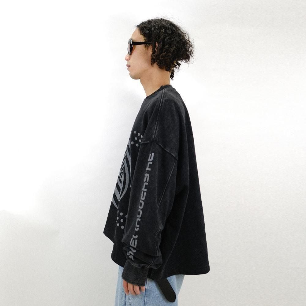 印象的なグラフィックを大きく配した裏パイルスウェット。