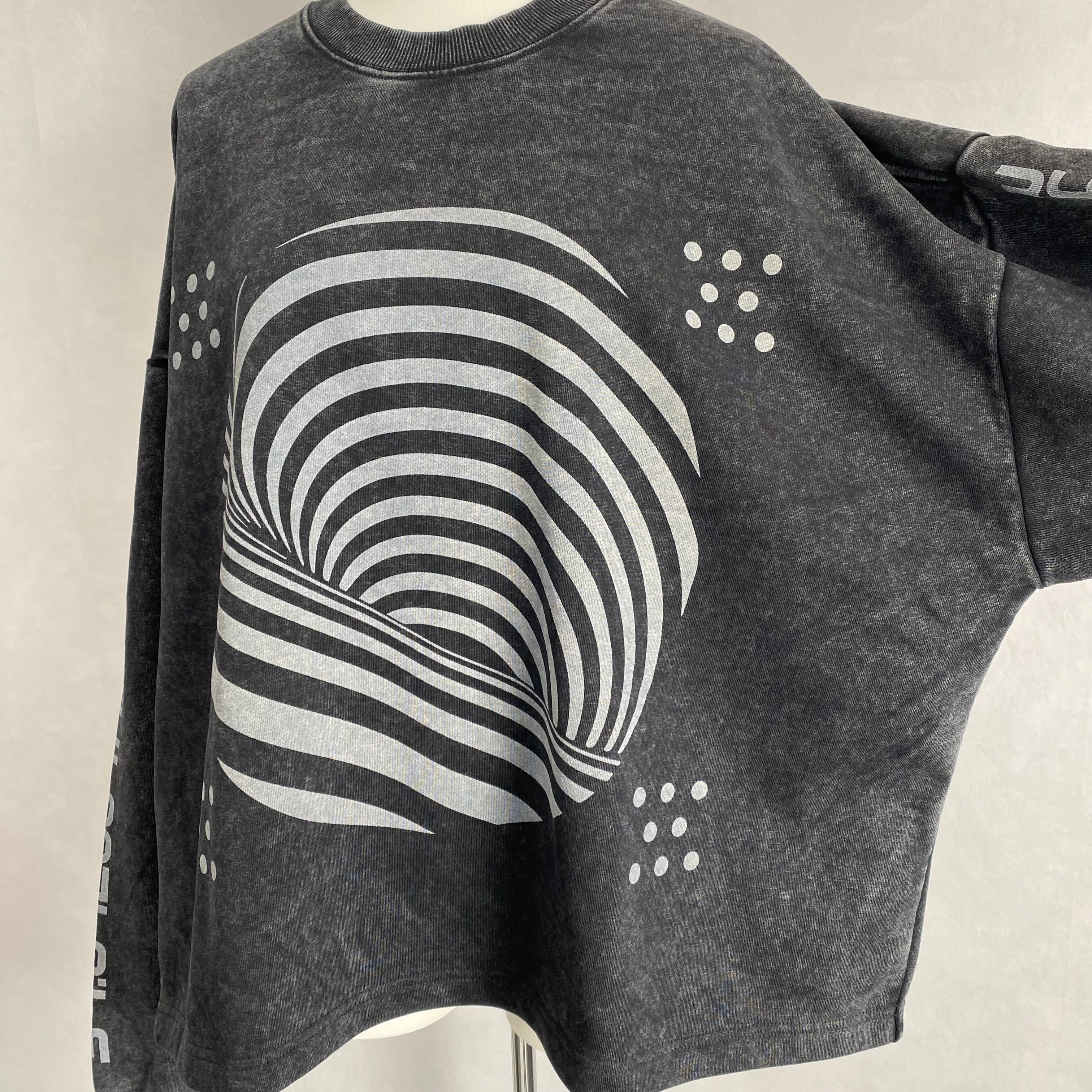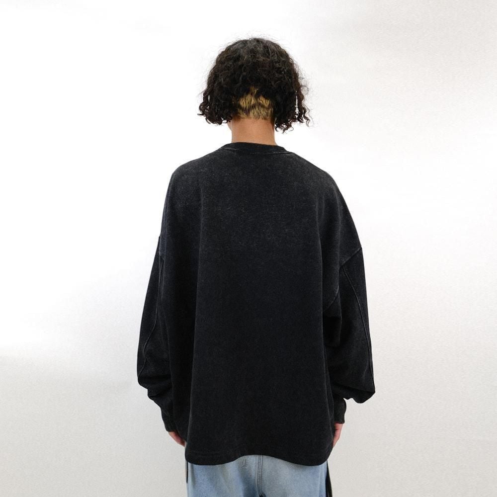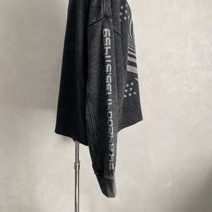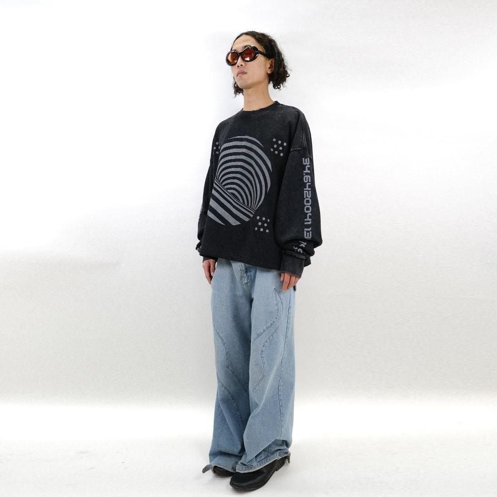 印象的なグラフィックを大きく配した裏パイルスウェット。