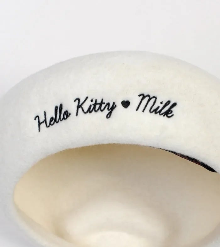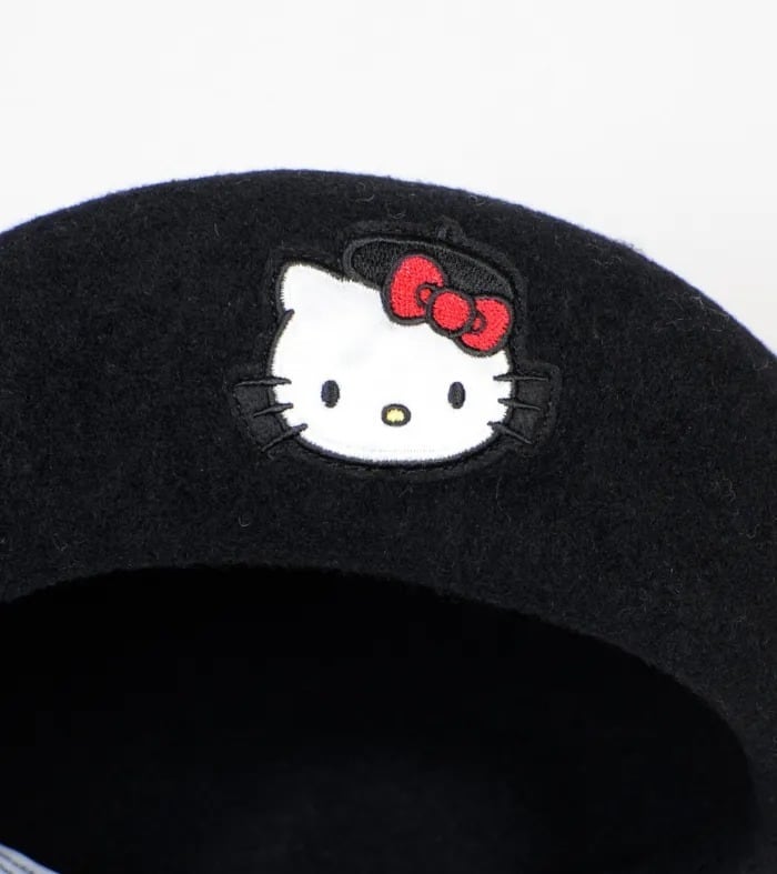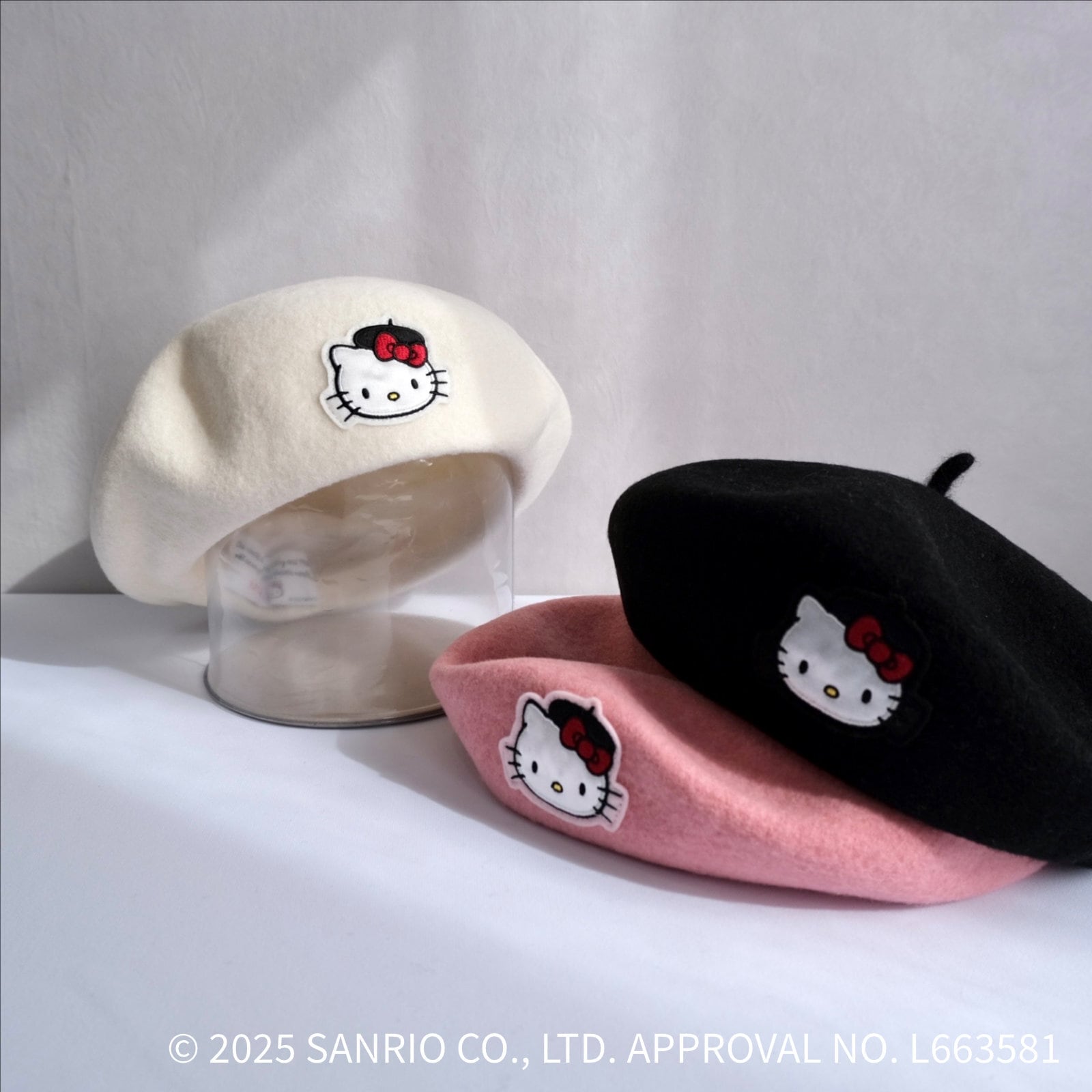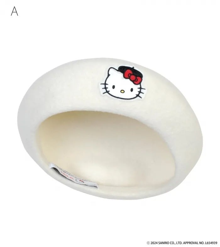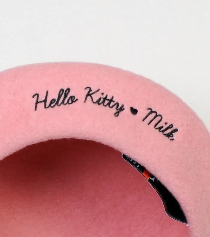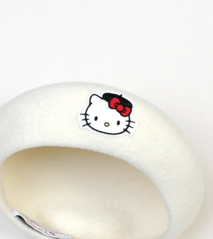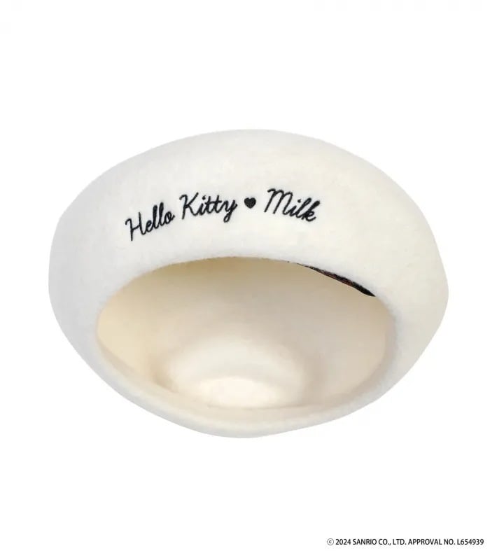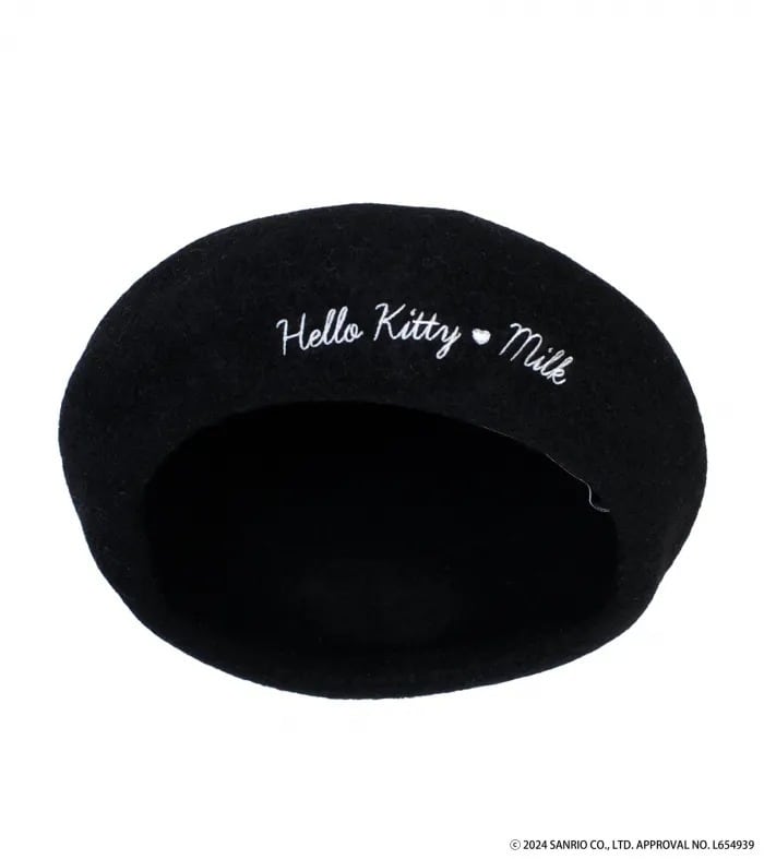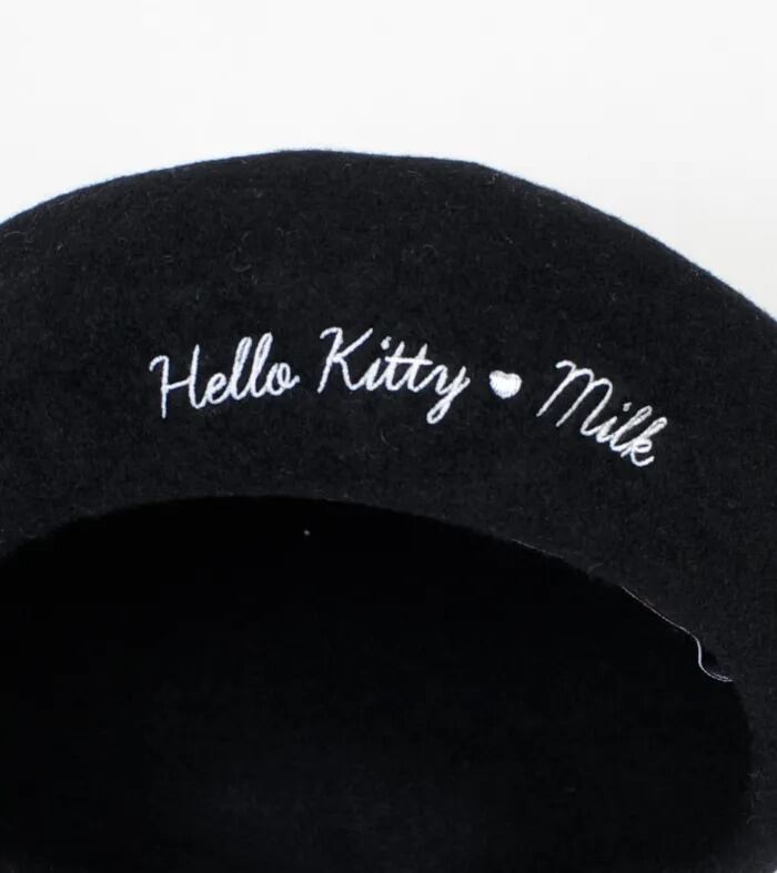 ベレー帽をかぶったハローキティのワッペンが付いたMILKおなじみのベレー帽♡