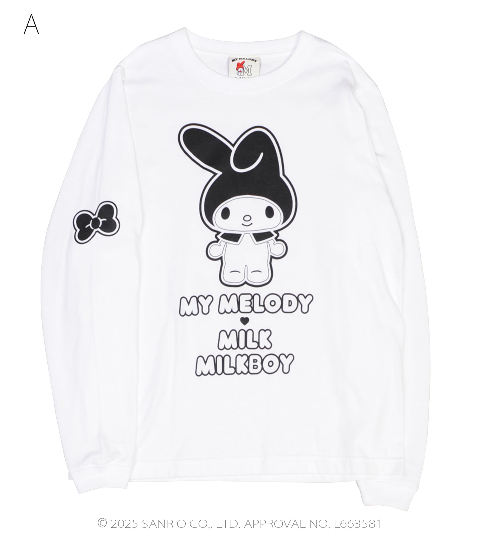 MY MELODY・MILK・MILKBOYの3つのネームロゴがポイントのロングスリーブTEE