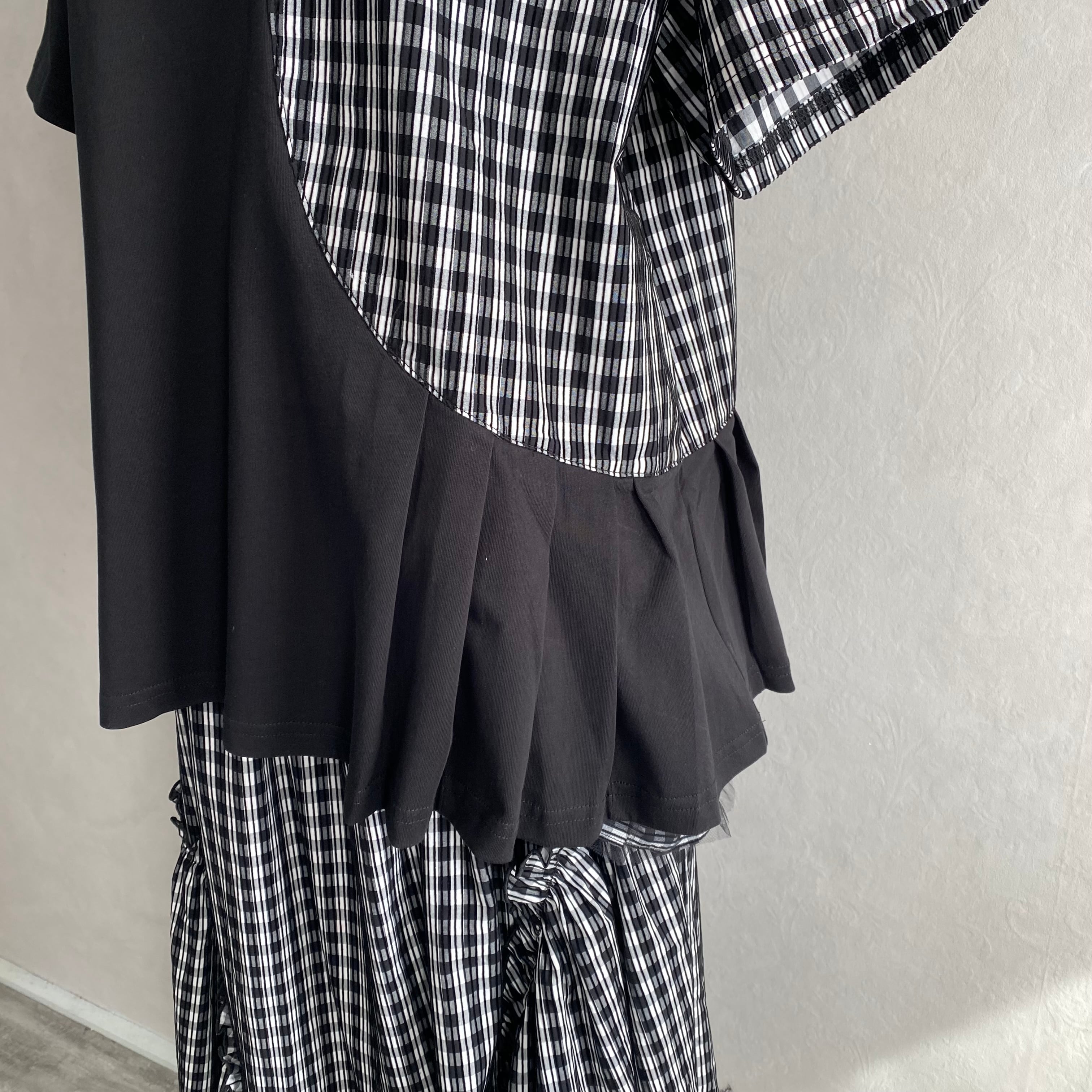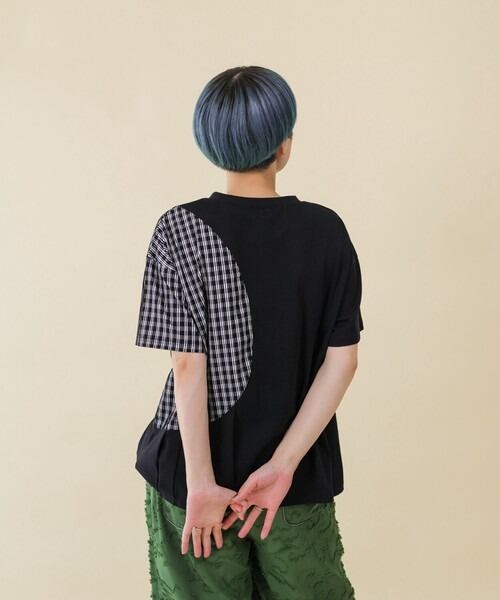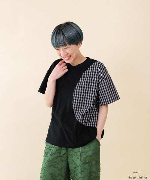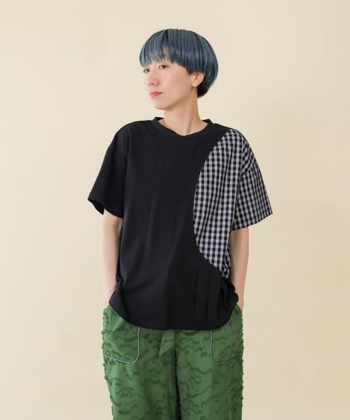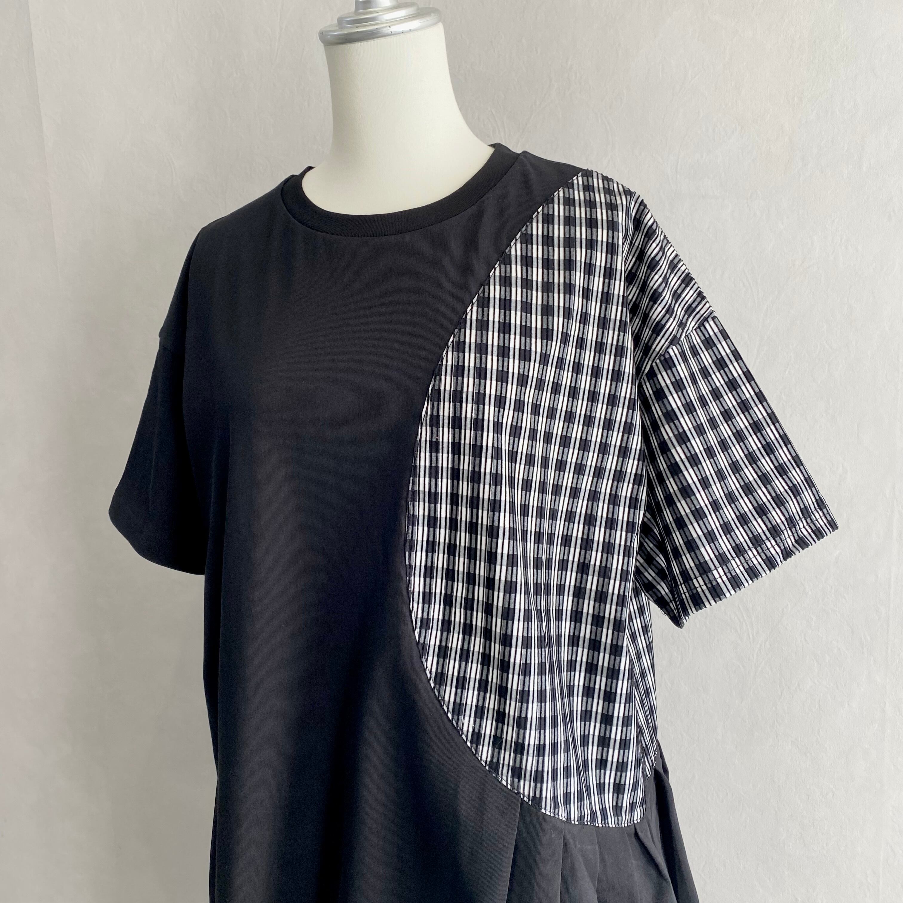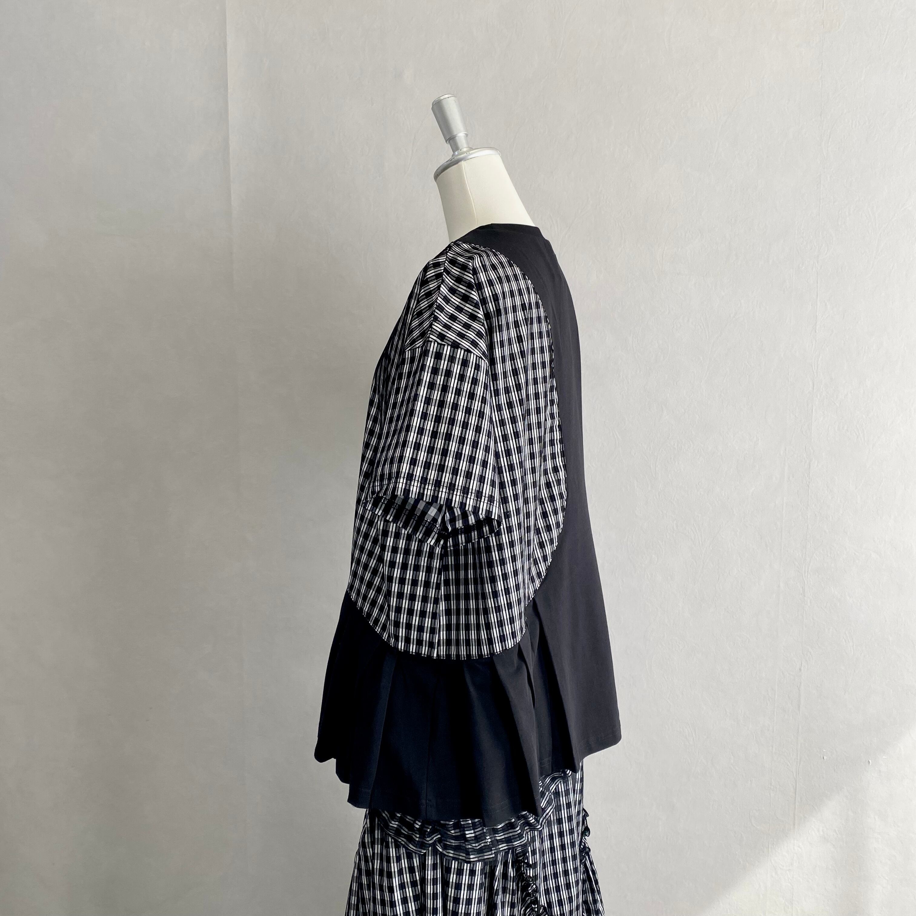 パッと目を引くライン入りのギンガムチェック生地を切り替え部分に使用することで遊び心を演出。