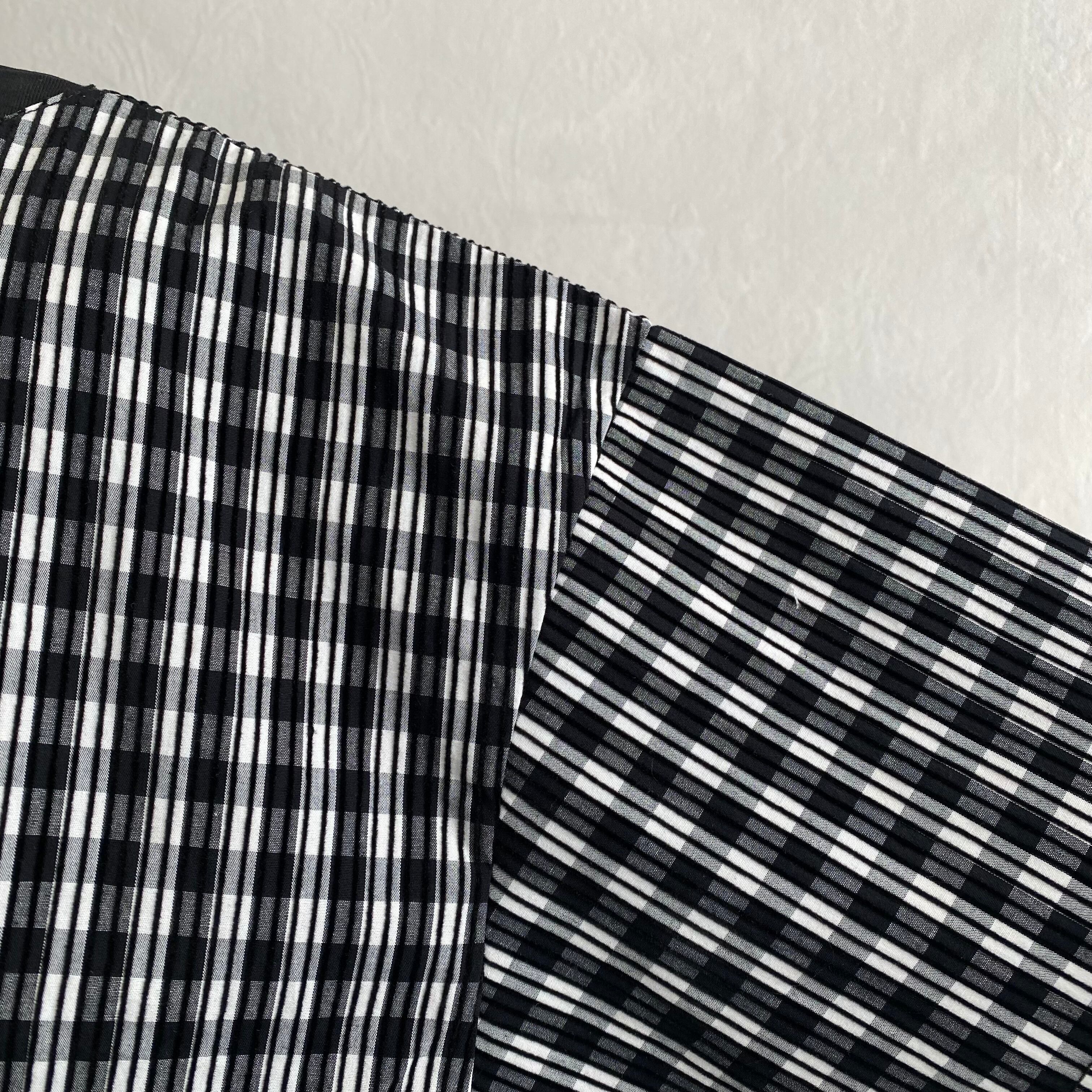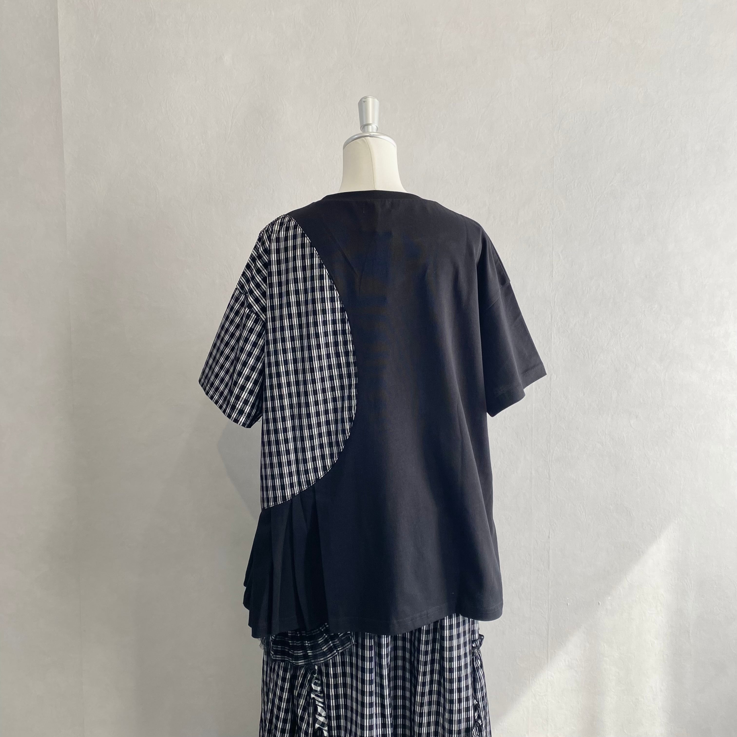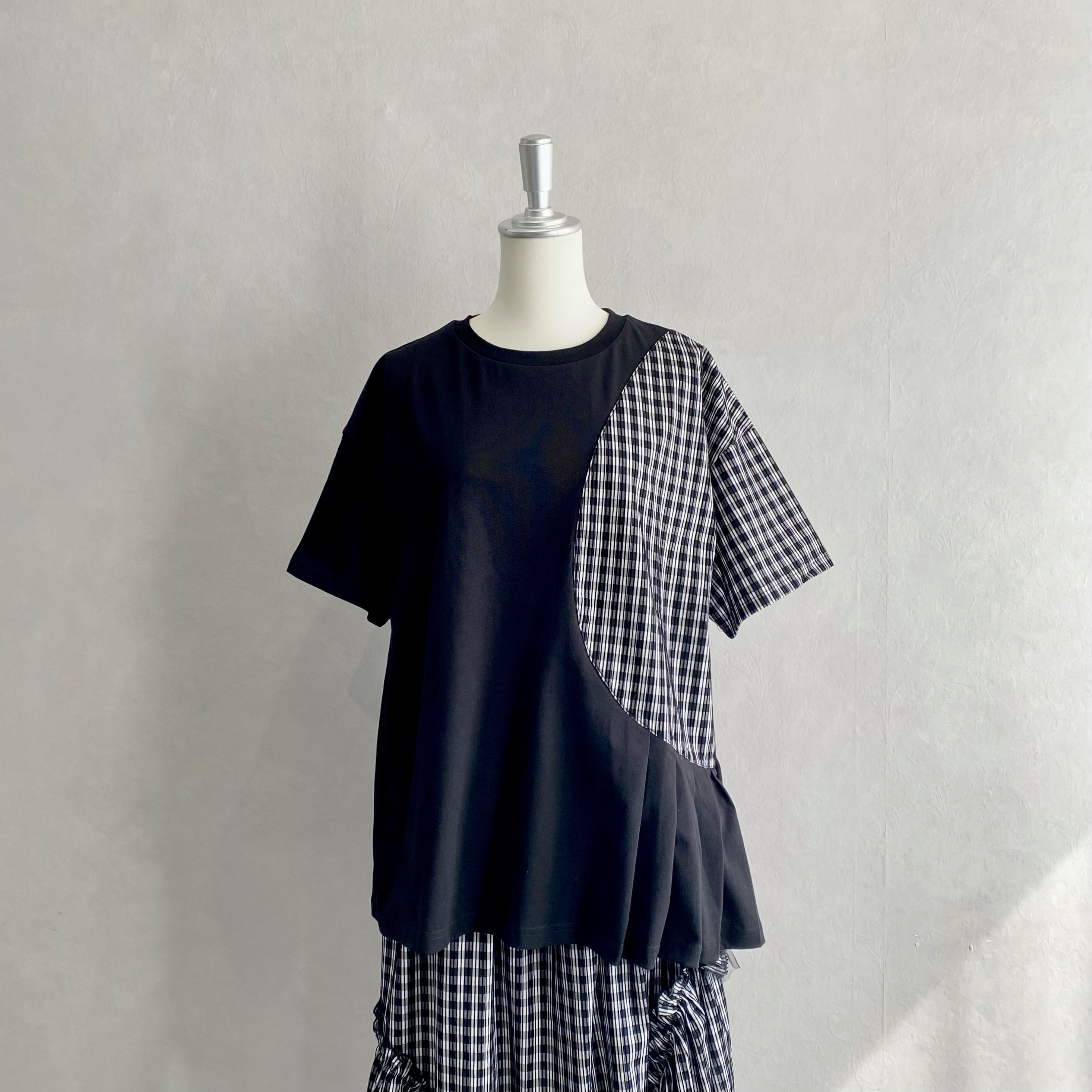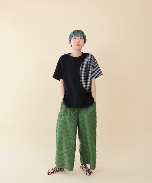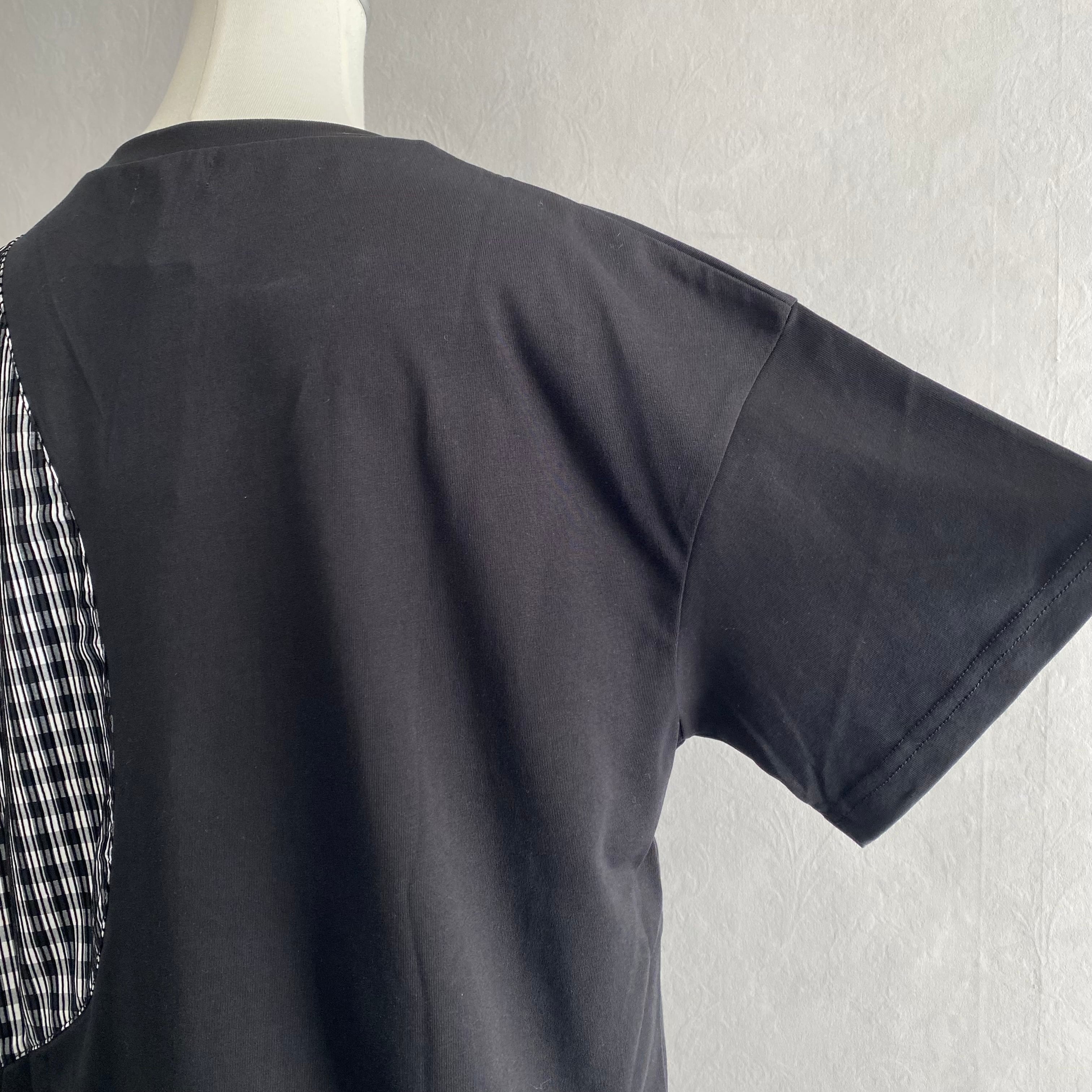 パッと目を引くライン入りのギンガムチェック生地を切り替え部分に使用することで遊び心を演出。