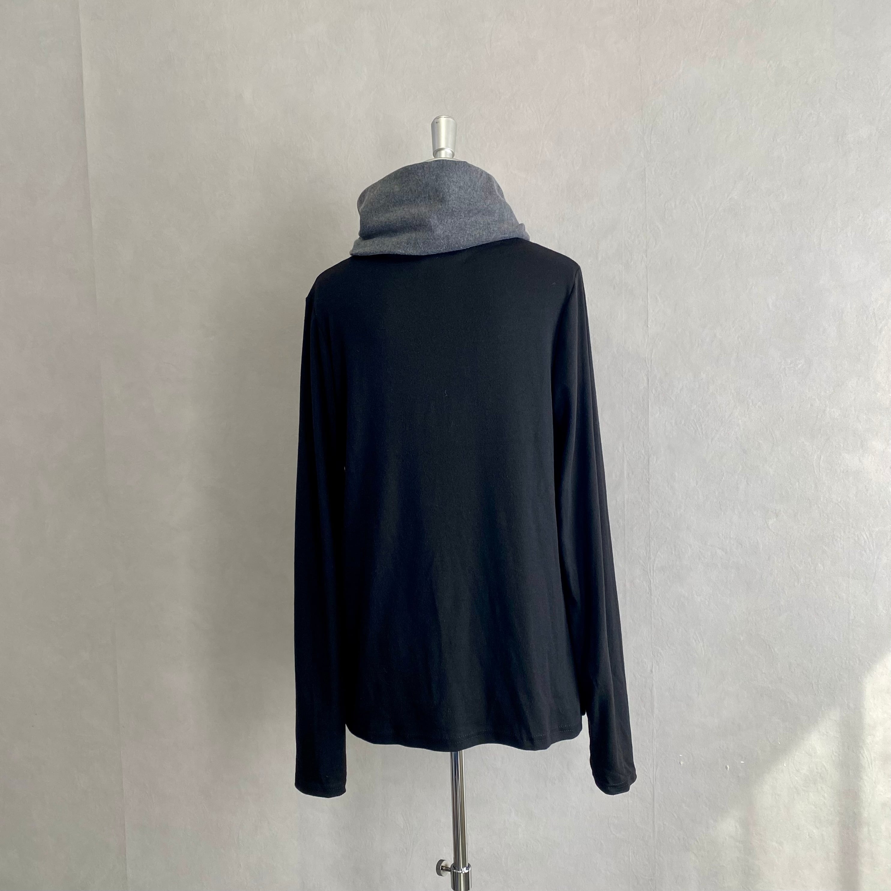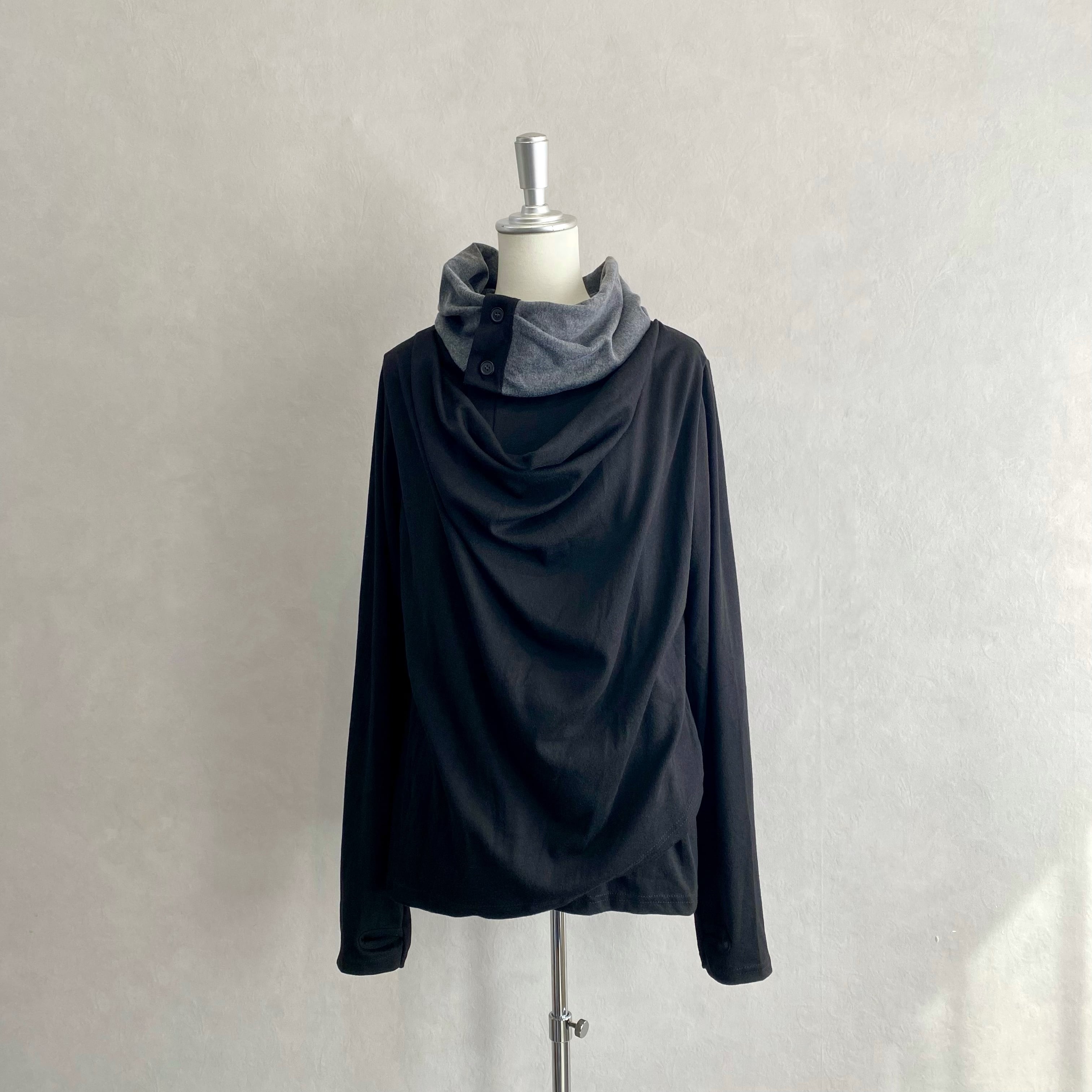 ボタンがアクセントになったボリュームネックカットソーです。 フロントはゆったりとしたドレープシルエット、 両袖先は指穴仕様になっています〇 生地は肉厚なソフト起毛で肌触りも抜群です! ----------------- 【material】ポリエステル65%、綿35% 【size】Free 着丈約68cm 身幅約50cm 肩幅約42cm 袖丈約72cm -----------------
