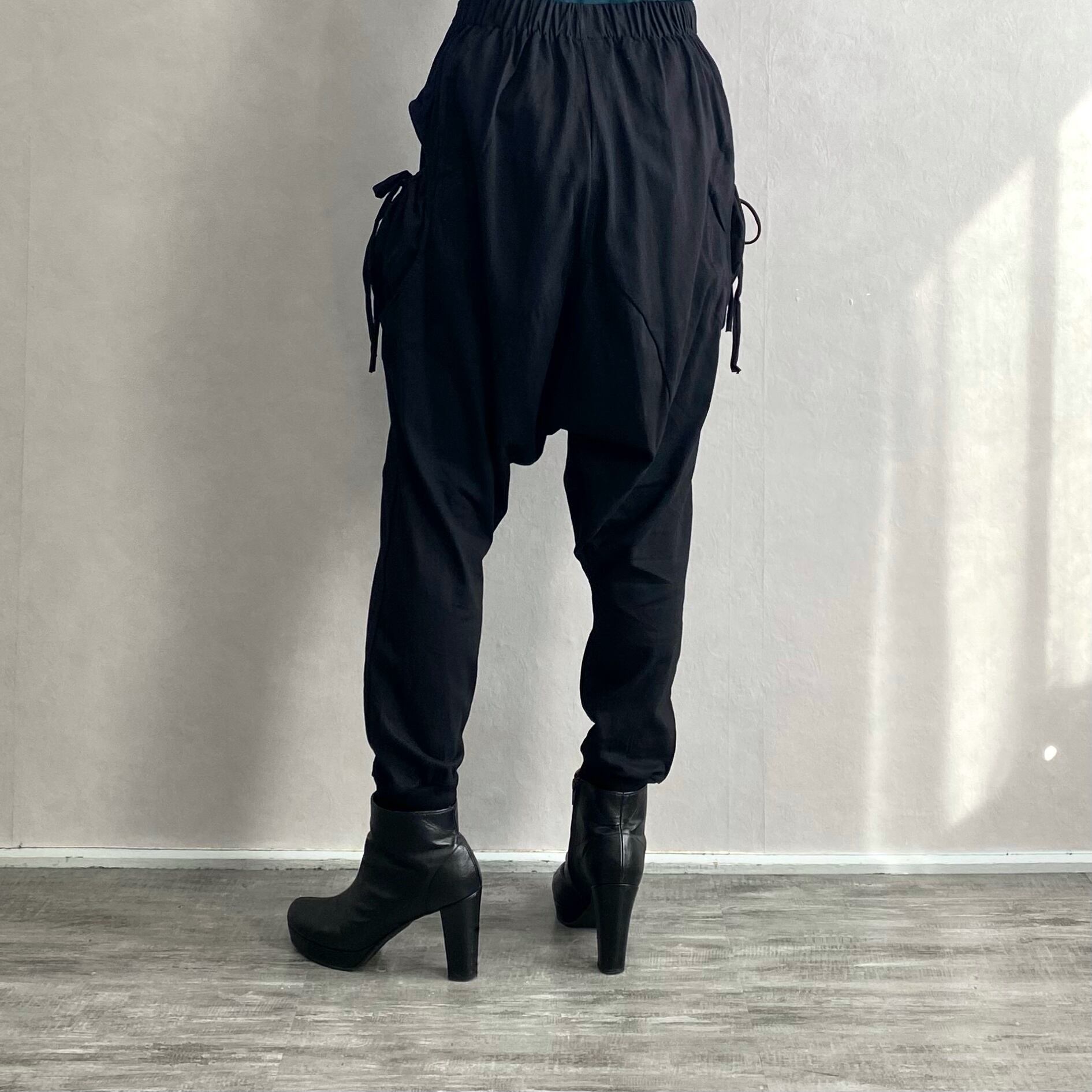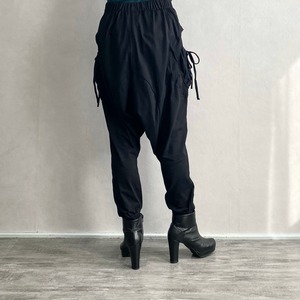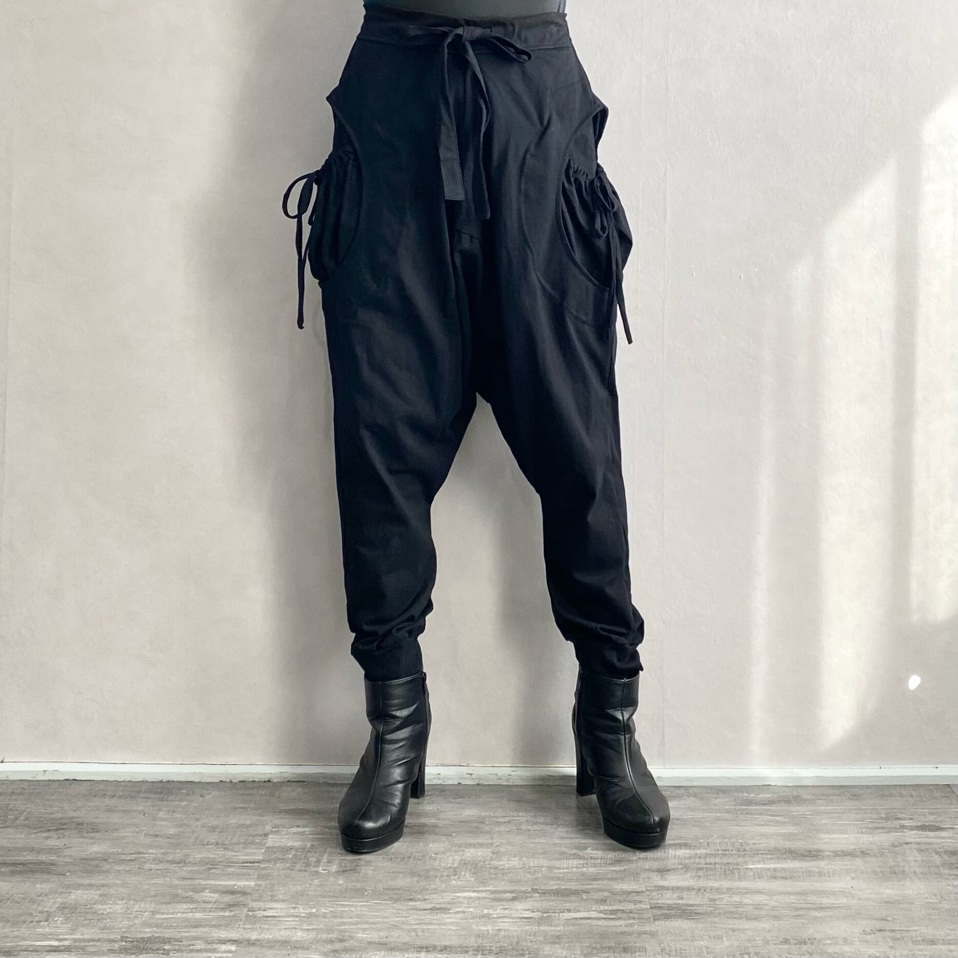 両サイドの変形ポケットが特徴的なサルエルパンツです。