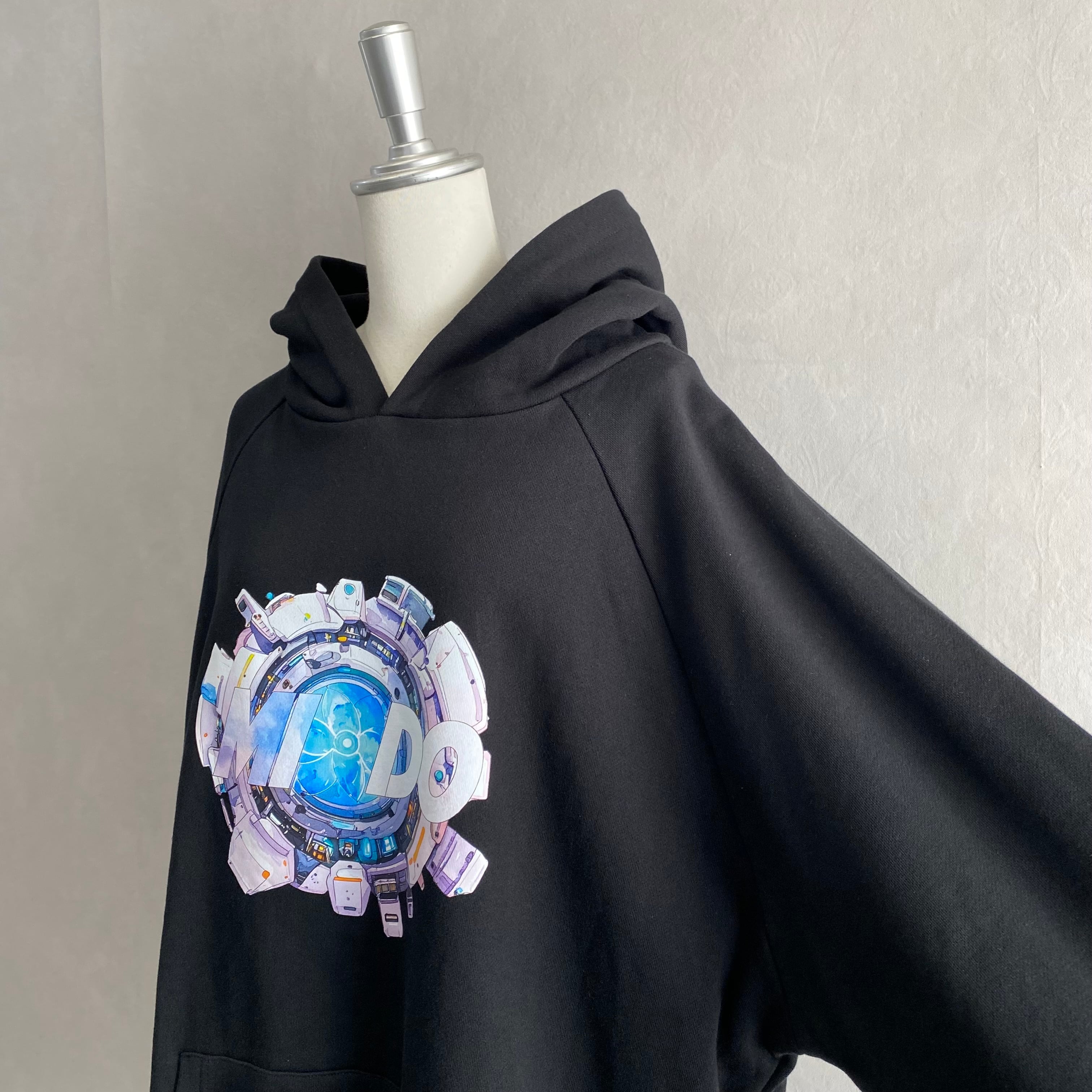 ラグランスリーブ設計のオリジナルフーディです。