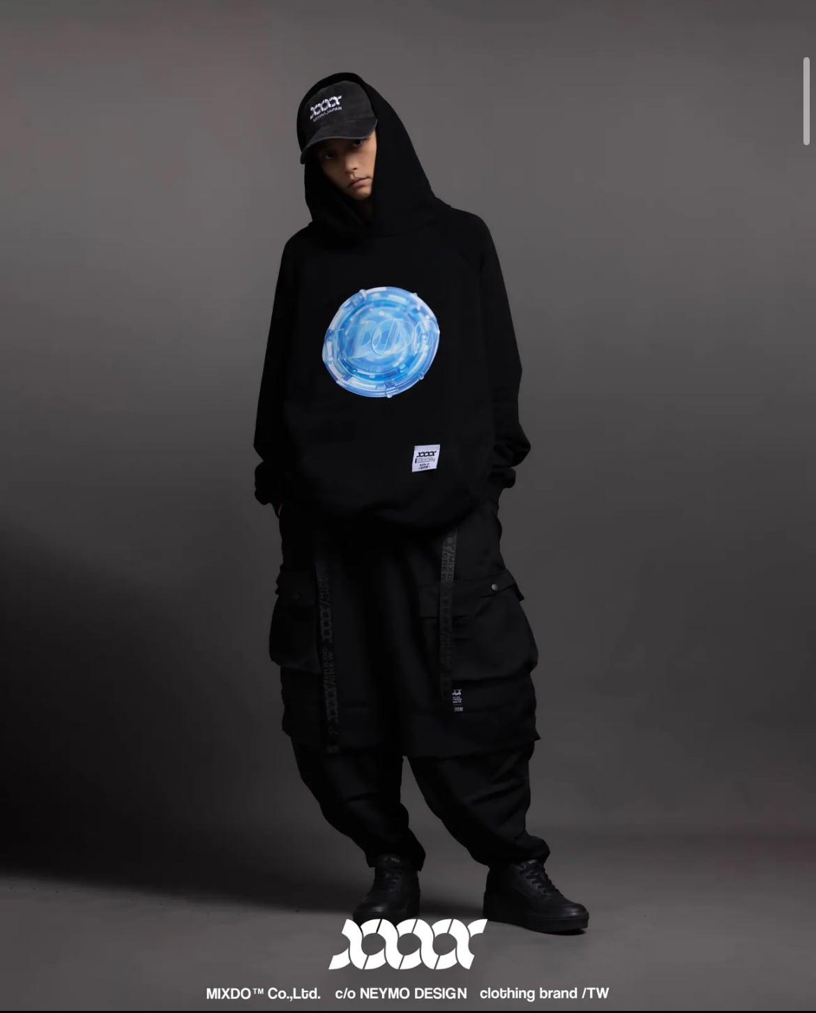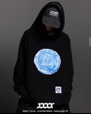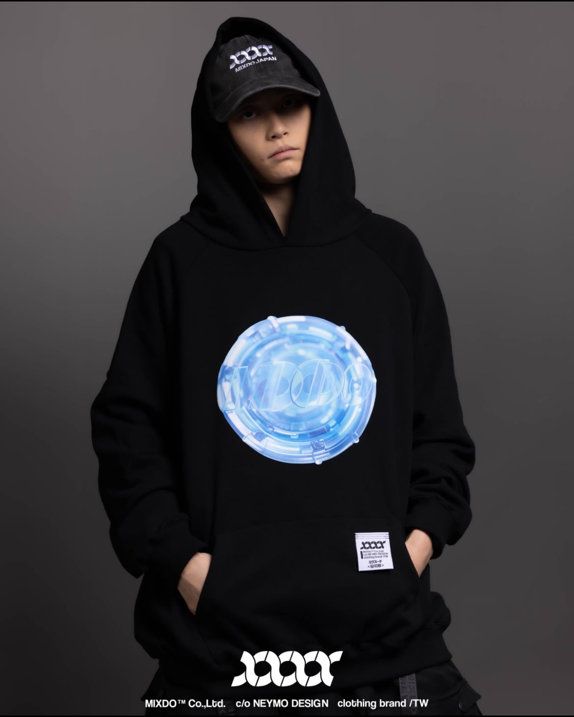 MIXDOのロゴを中心に、鋼鉄のようなエネルギーコア構造を融合。