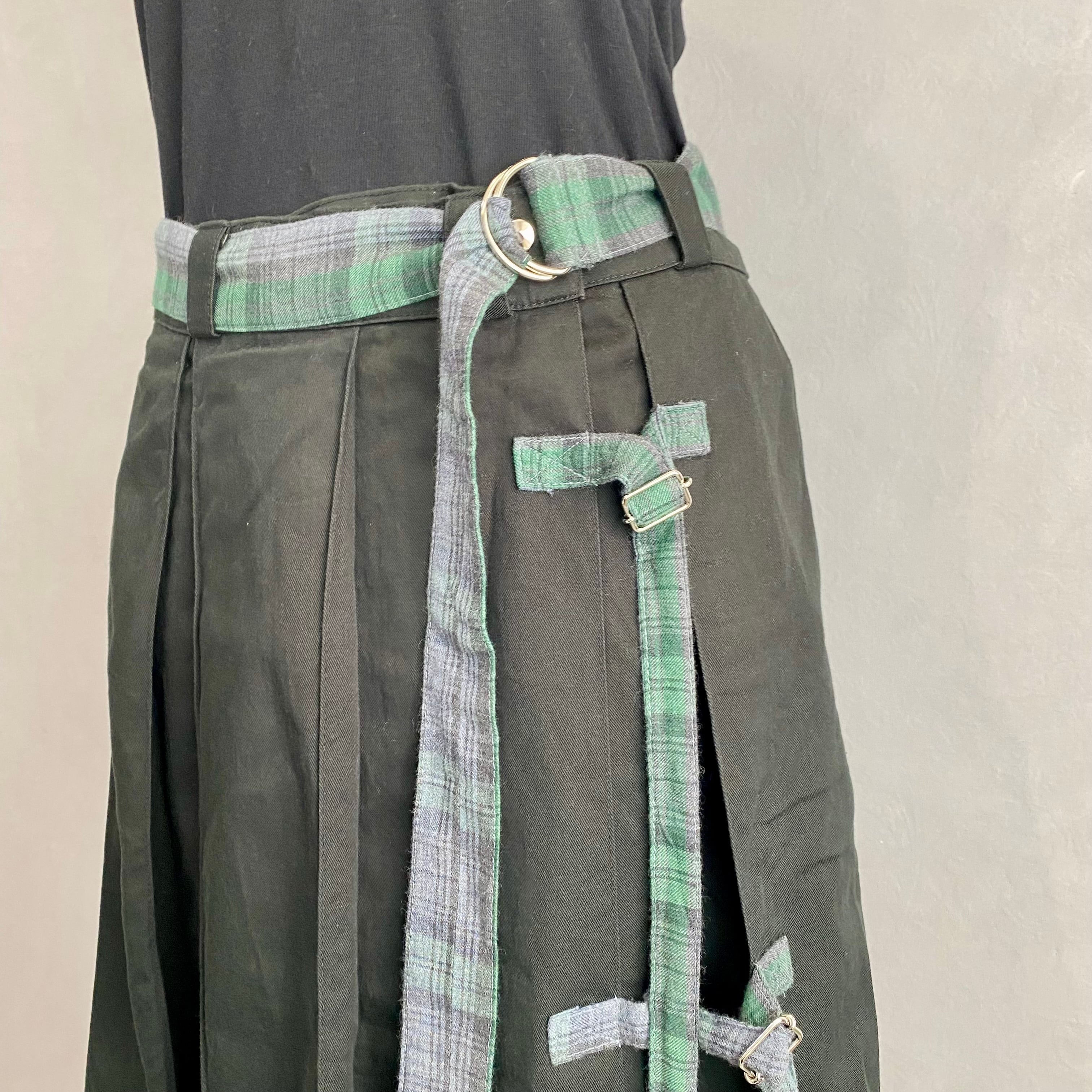 ウエストはバネホックで2段階調整が可能で、更にベルト付きなので微調整も可能です。