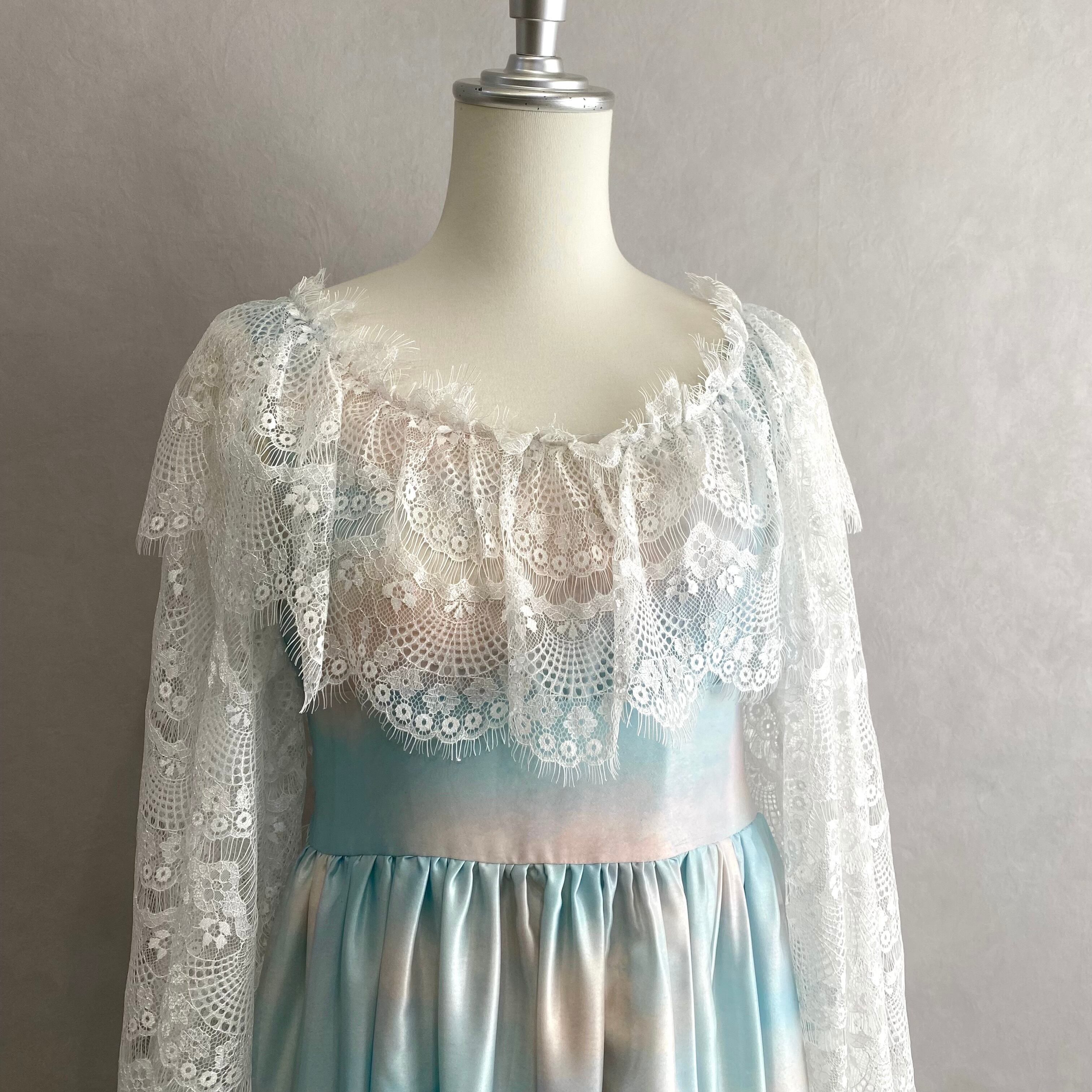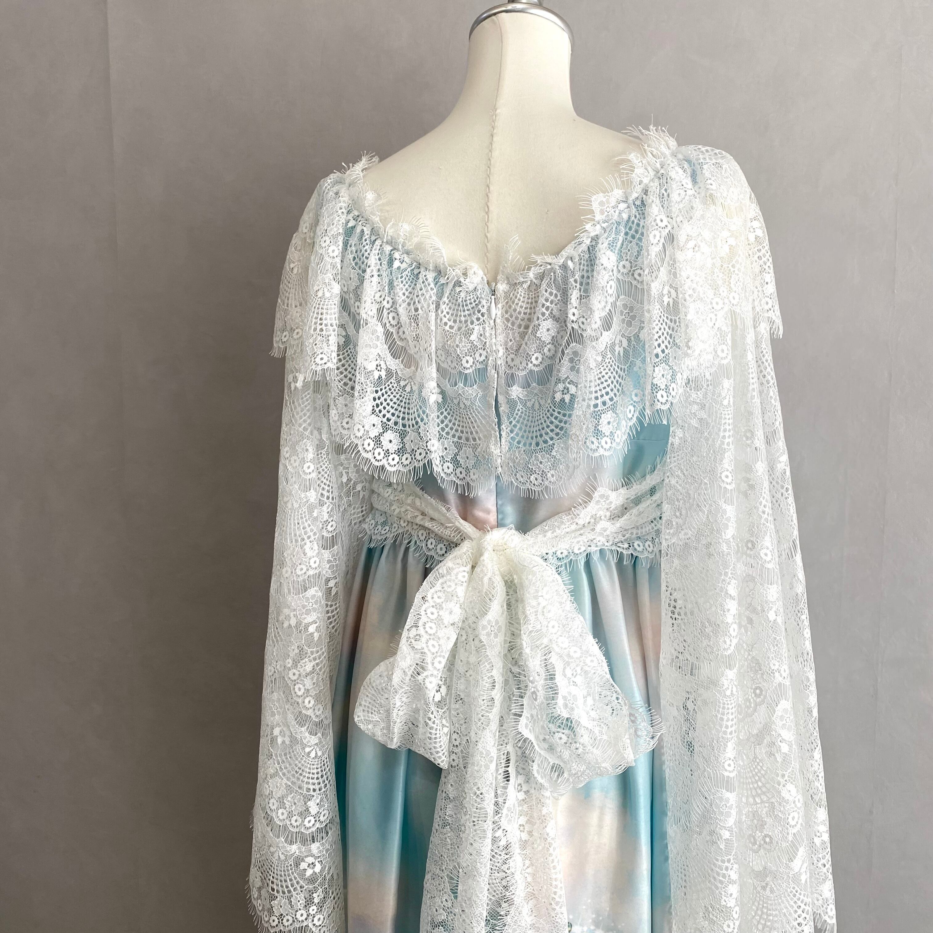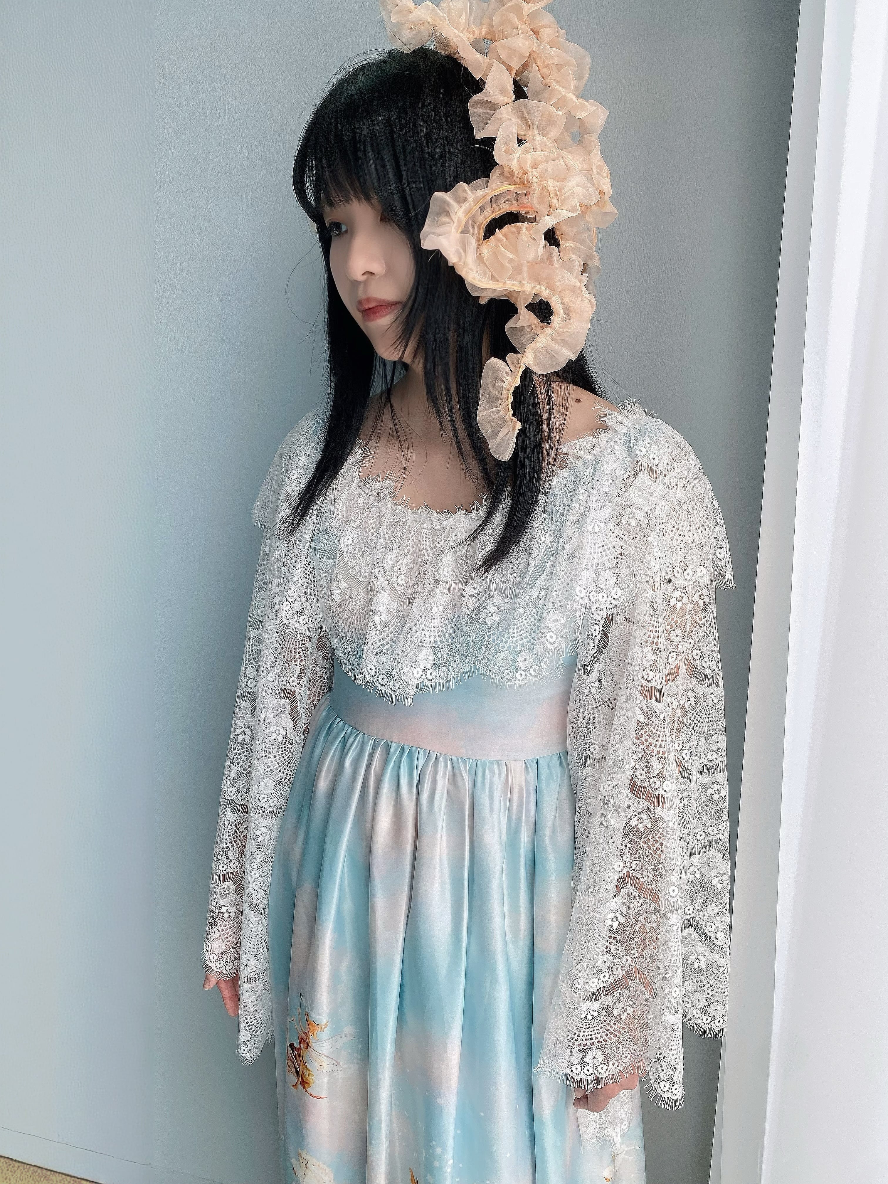 袖のリバーレースは妖精の羽のように身頃脇から生えています。