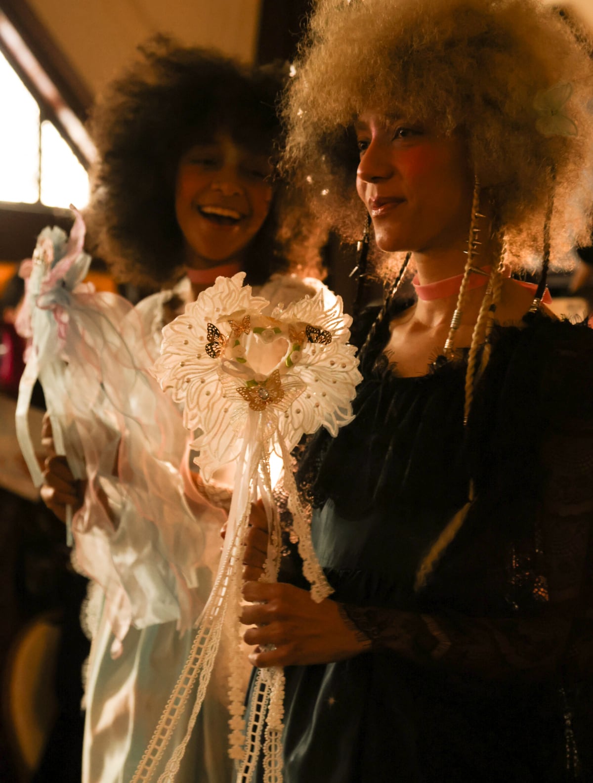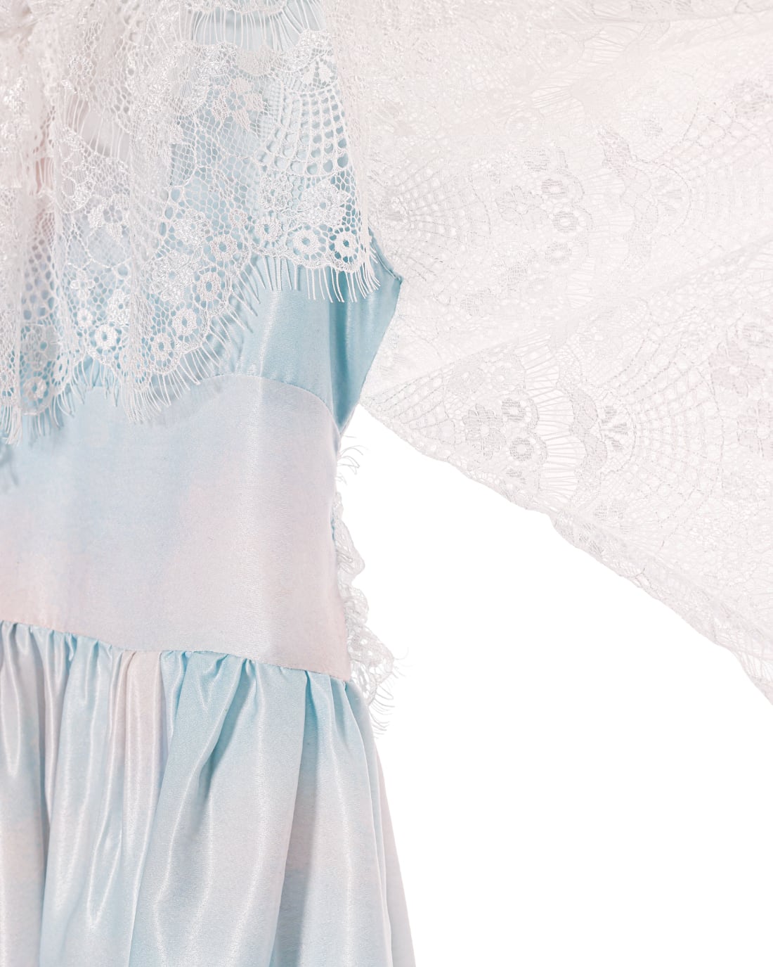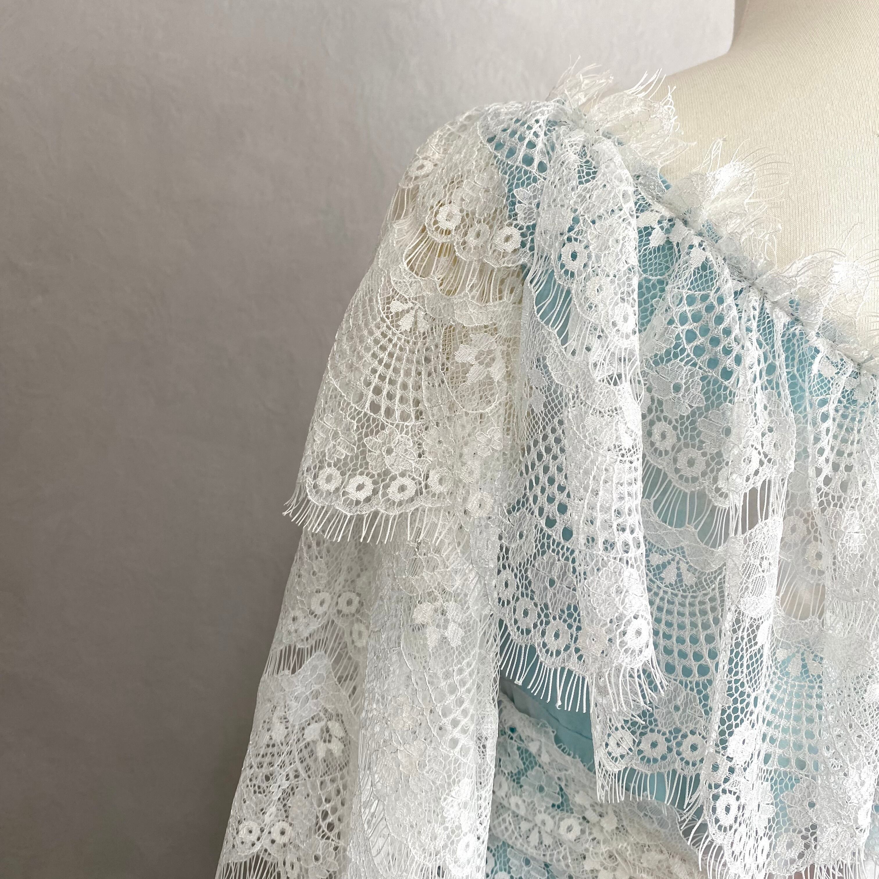 袖のリバーレースは妖精の羽のように身頃脇から生えています。