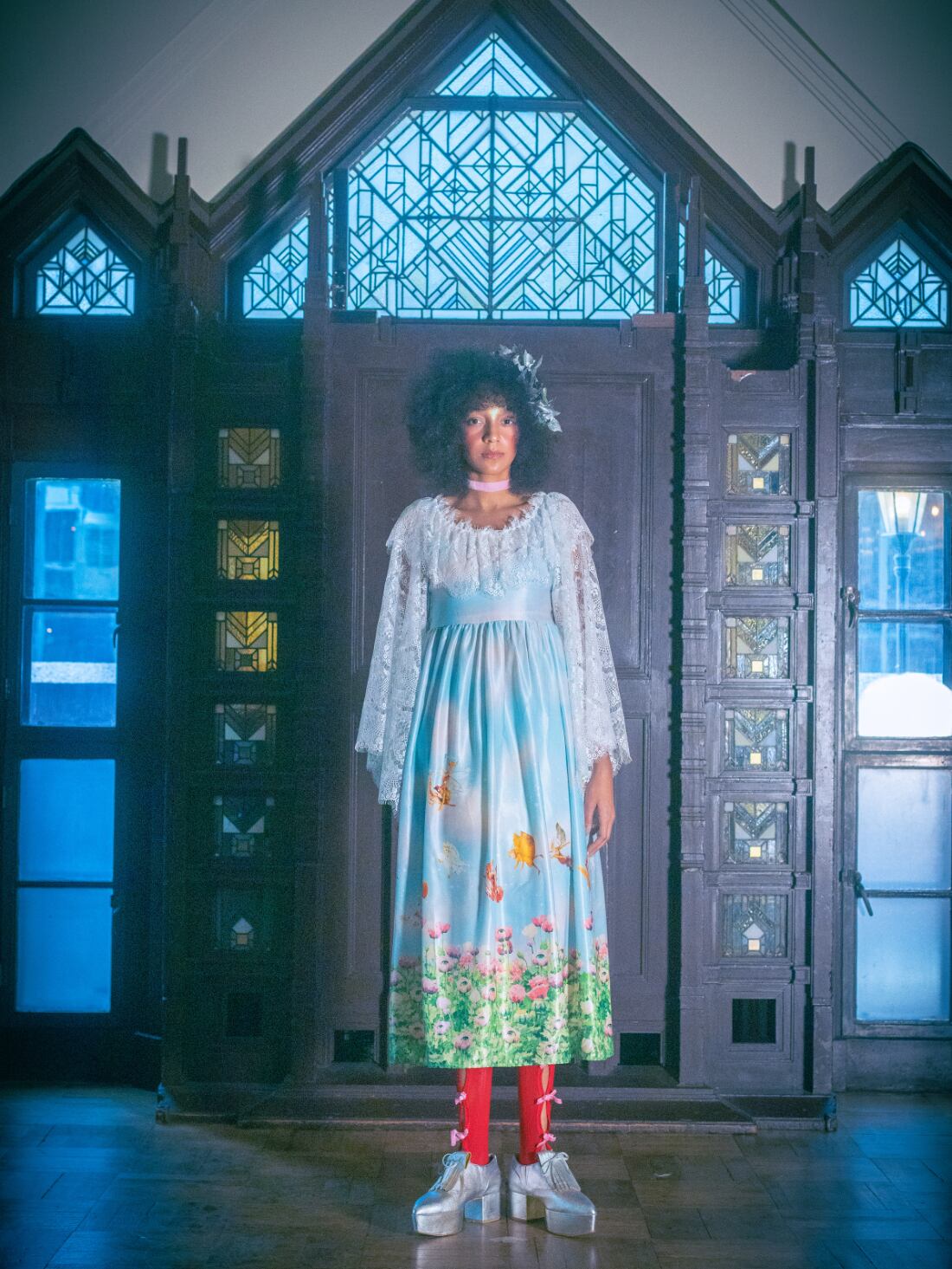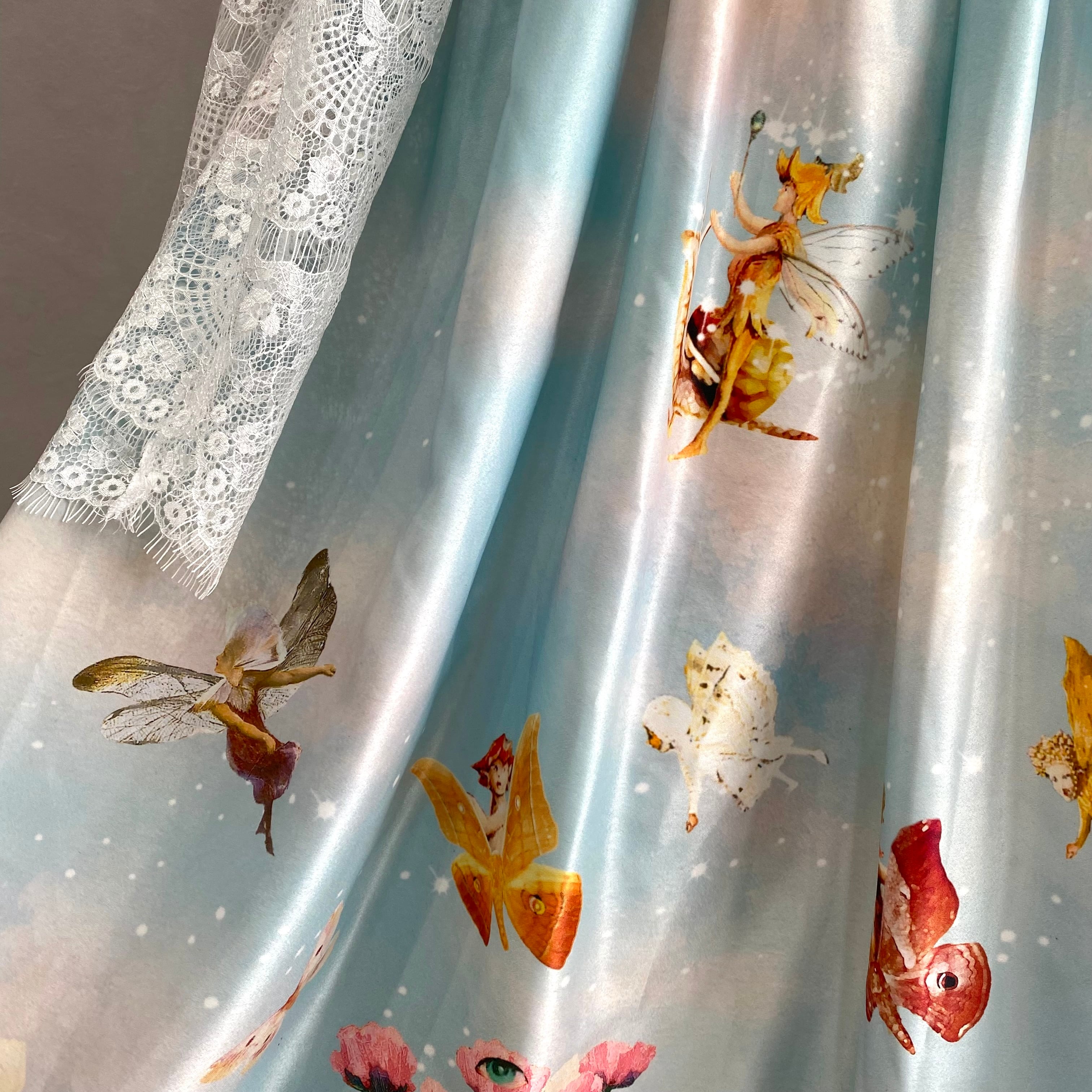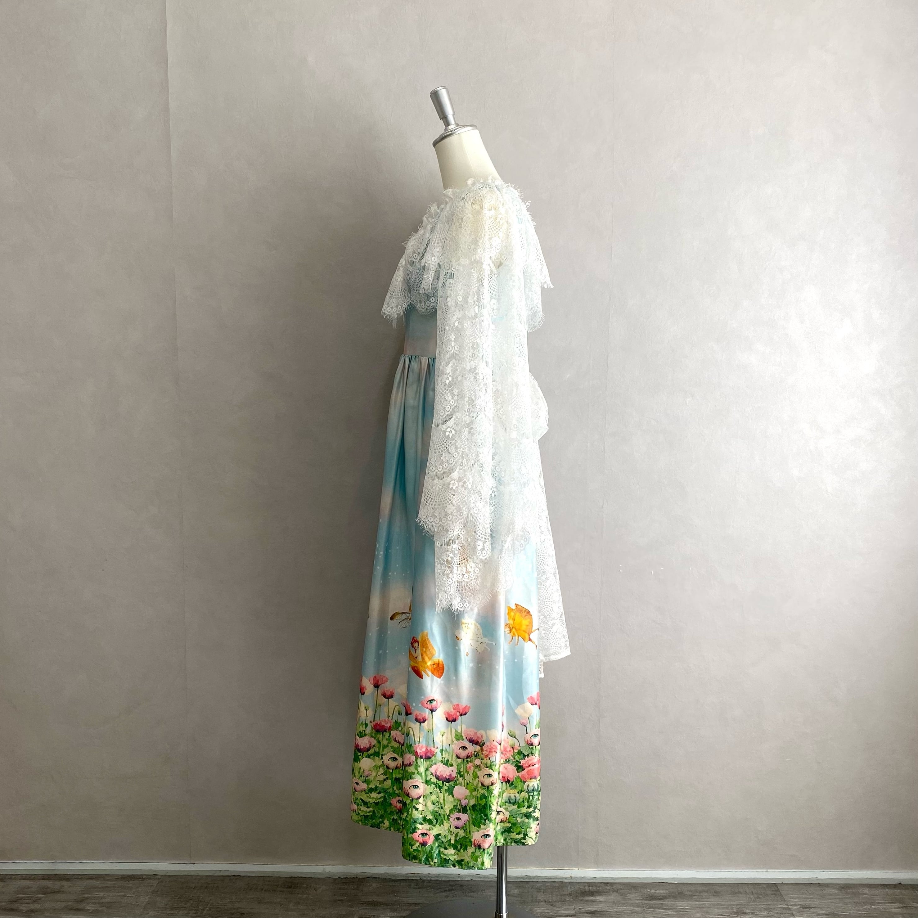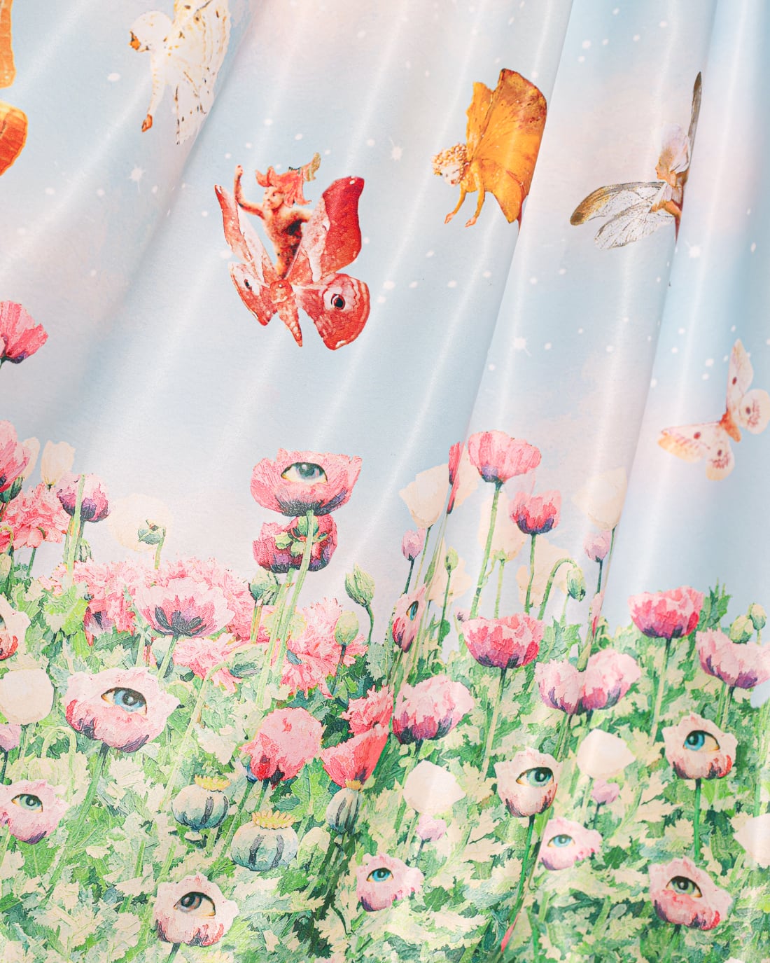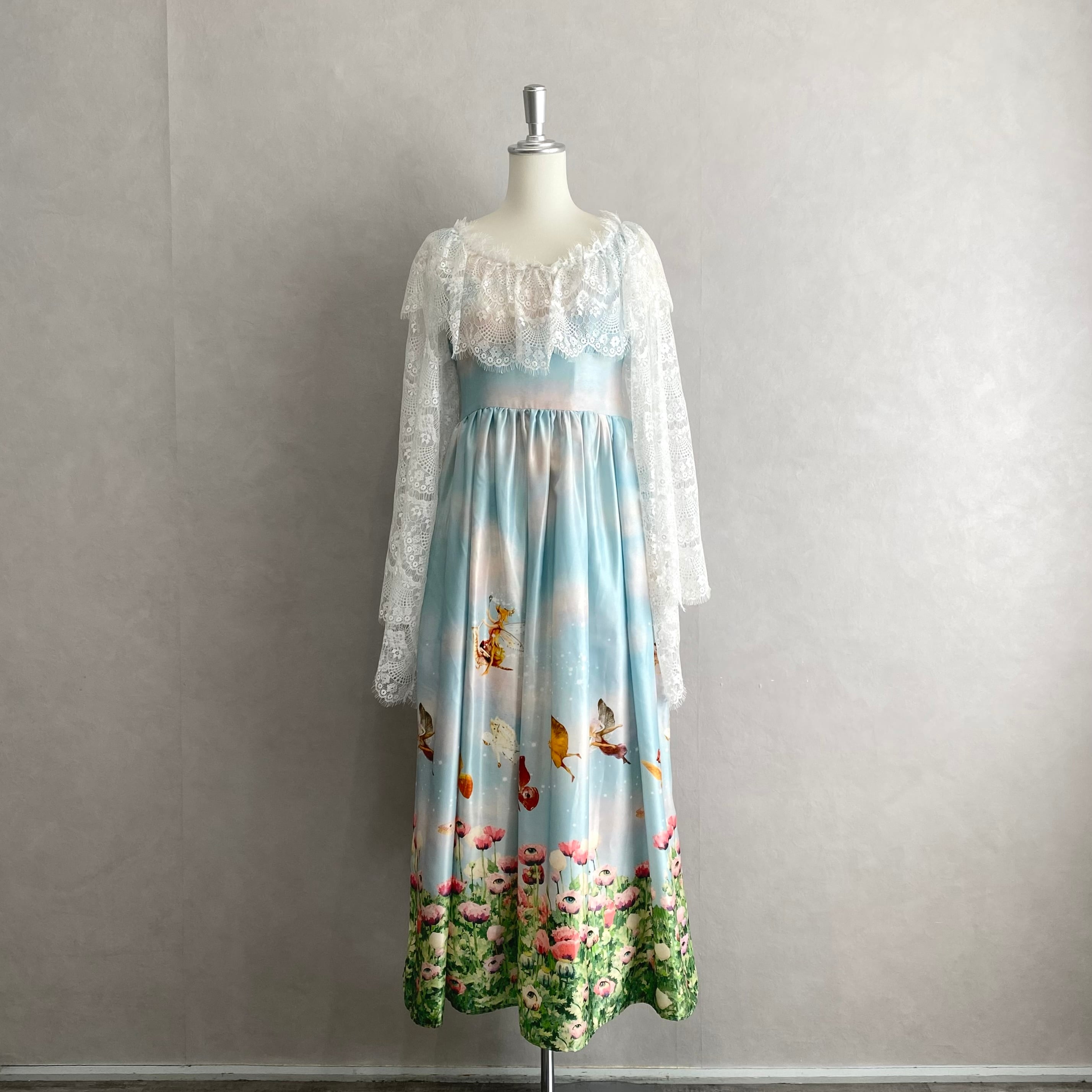 花咲くフェアリーランドをイメージしたテキスタイルのエンパイアドレス。