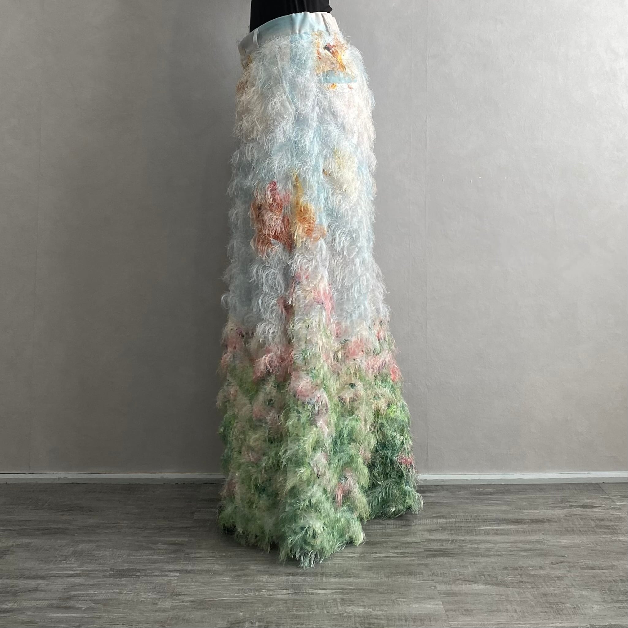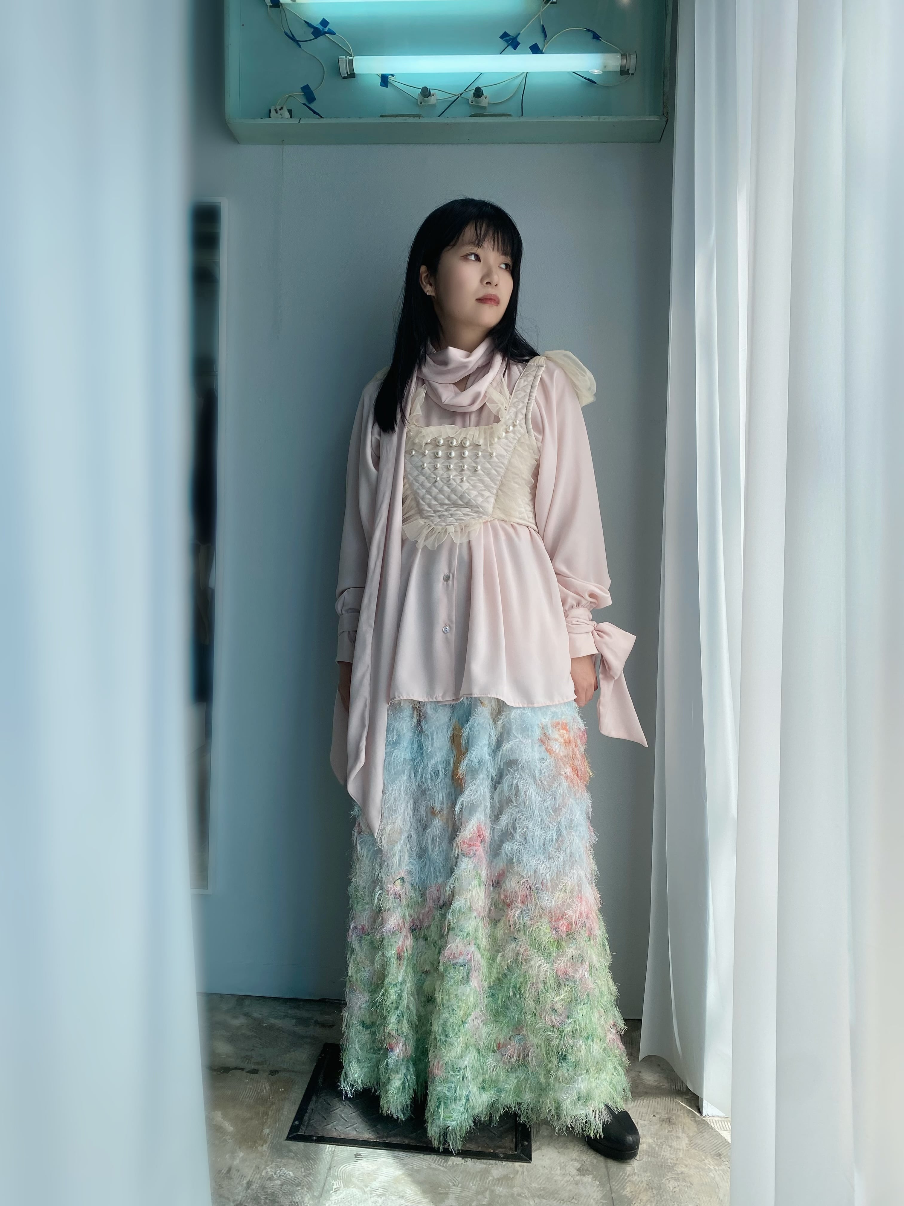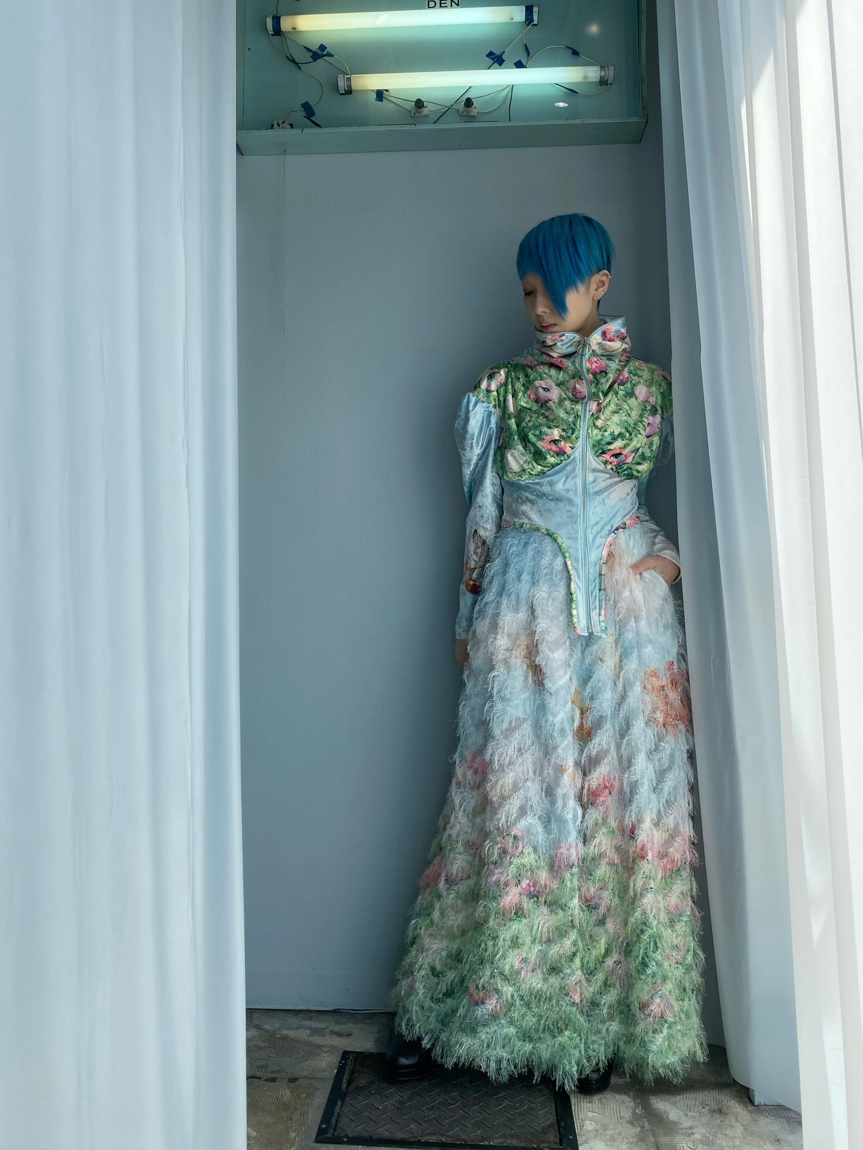 カットジャカードオーガンジーに広がるファブリック。