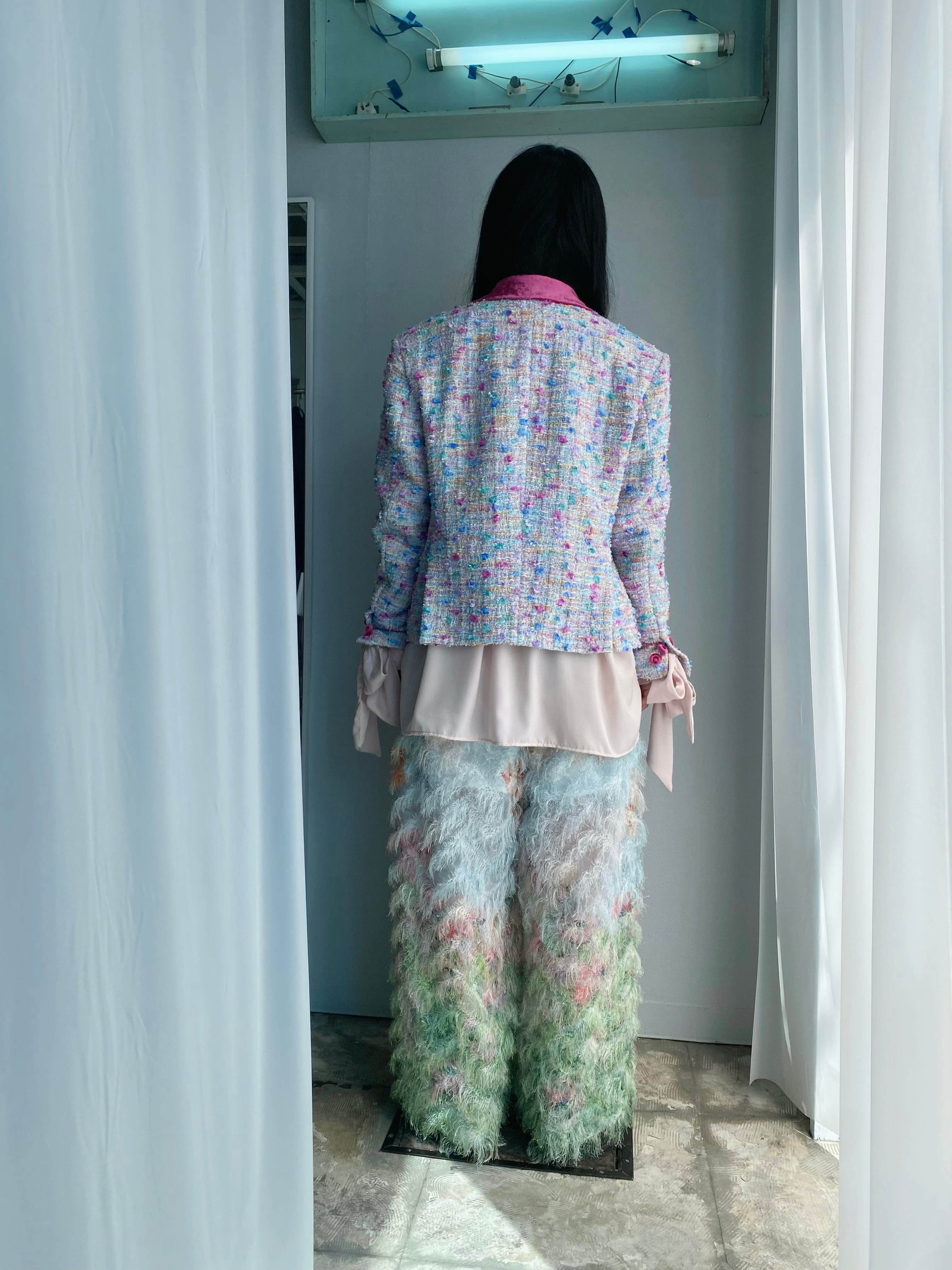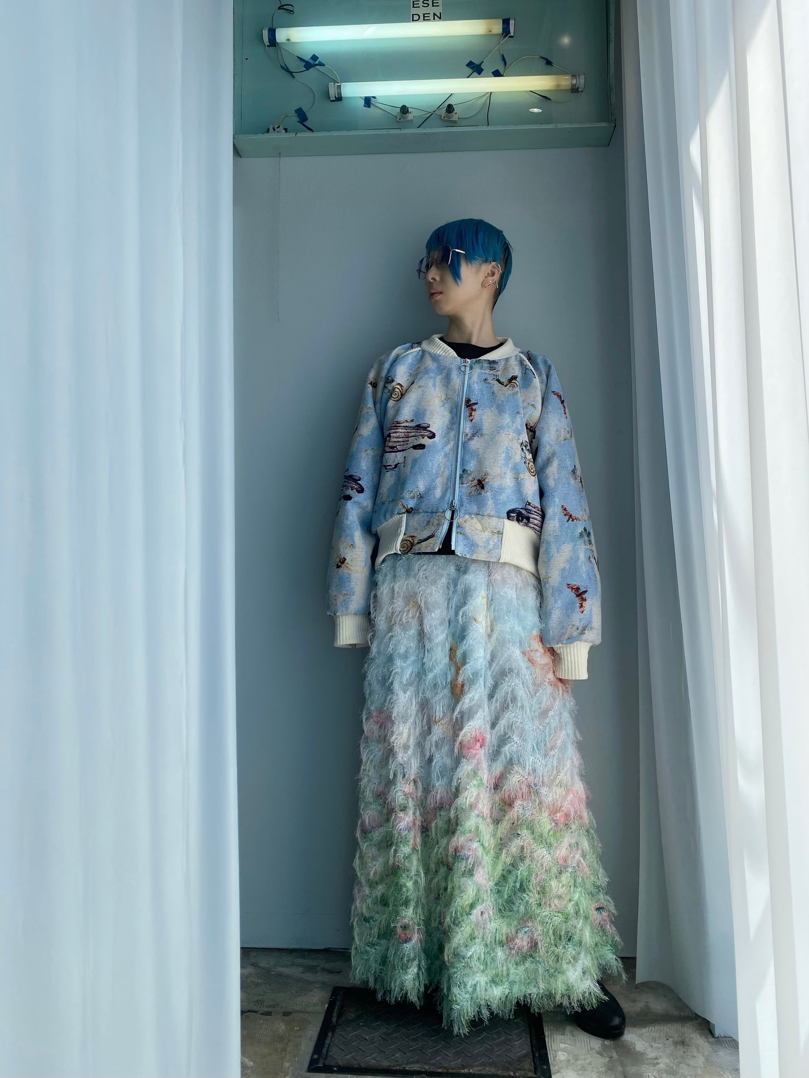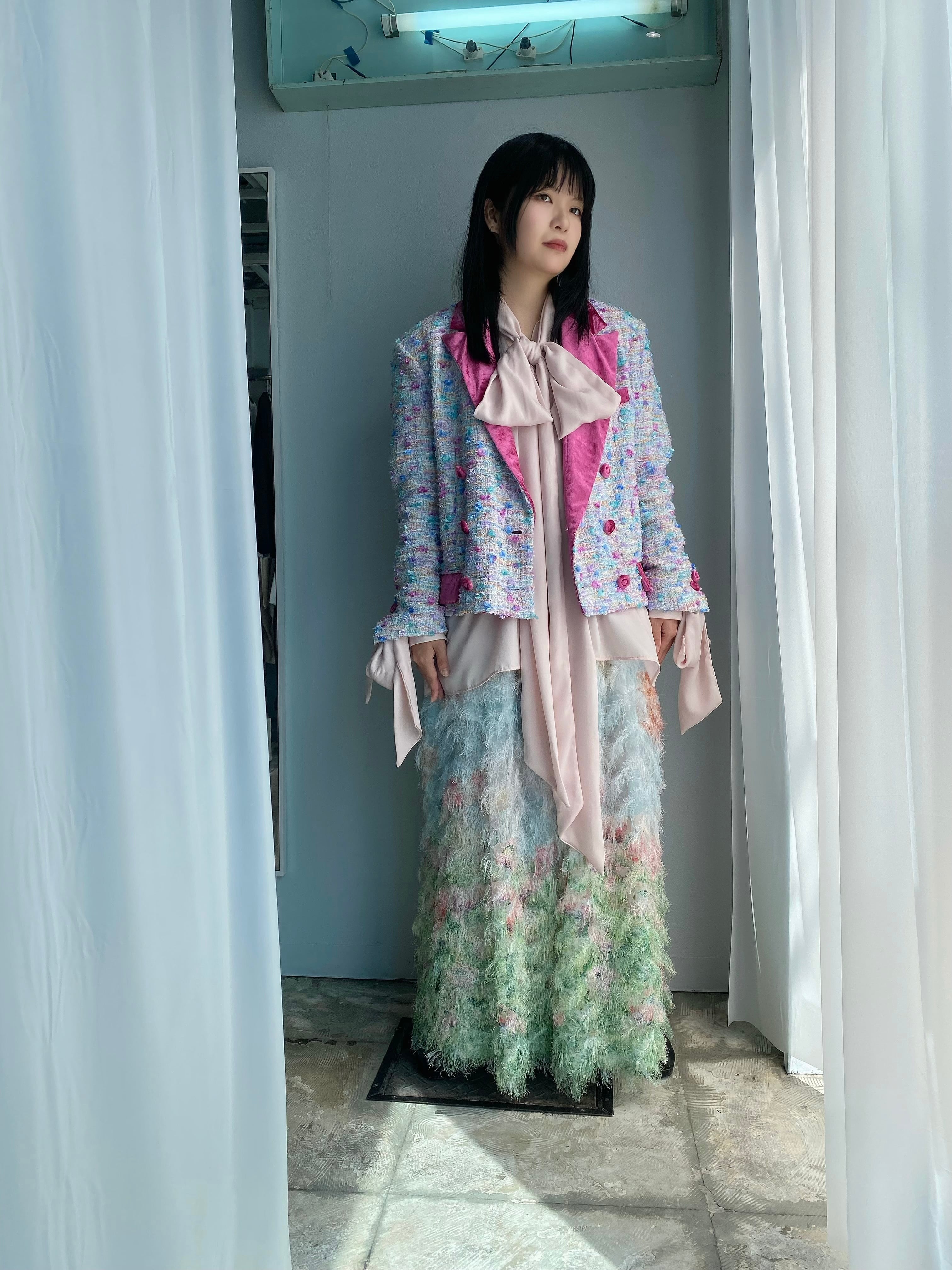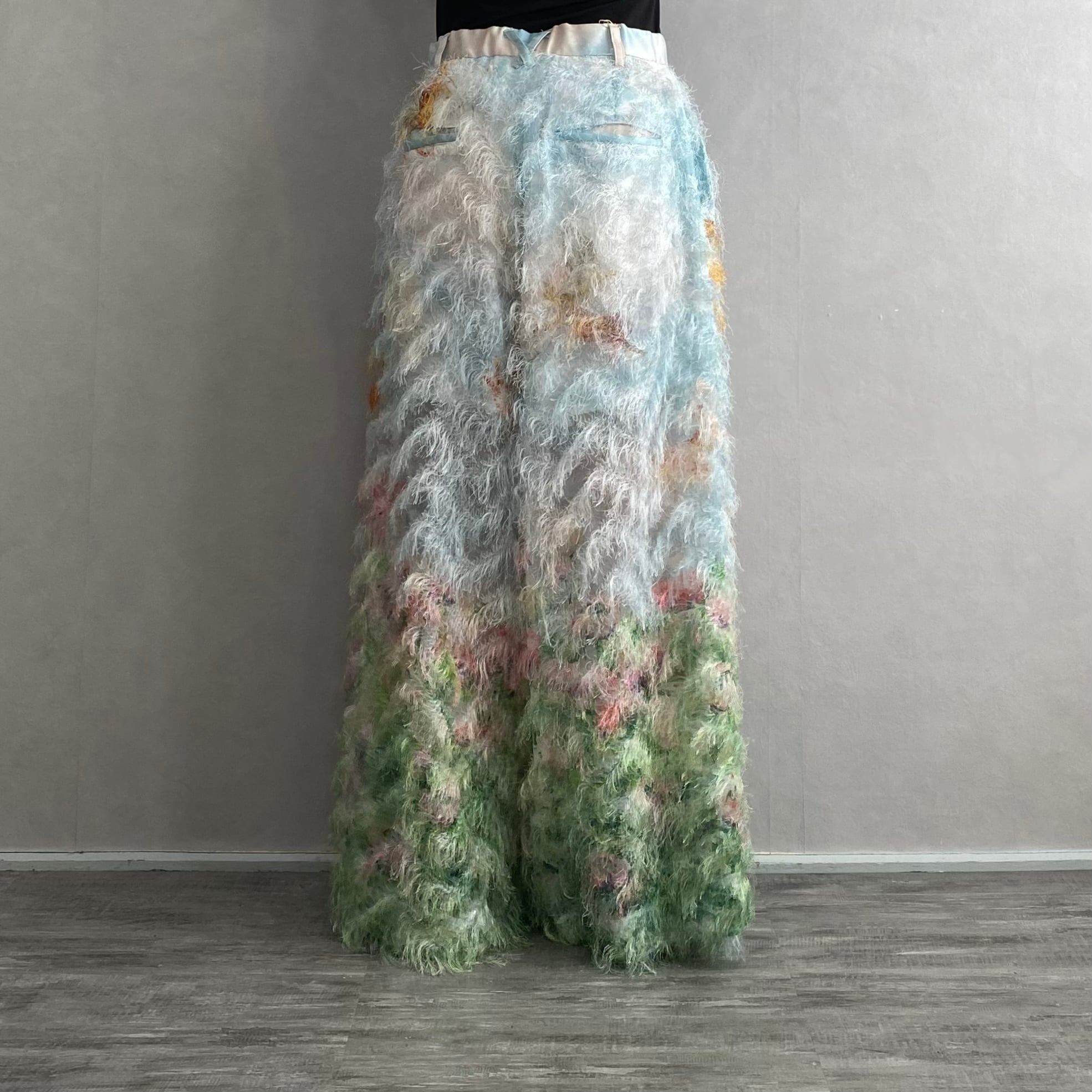 カットジャカードオーガンジーに広がるファブリック。