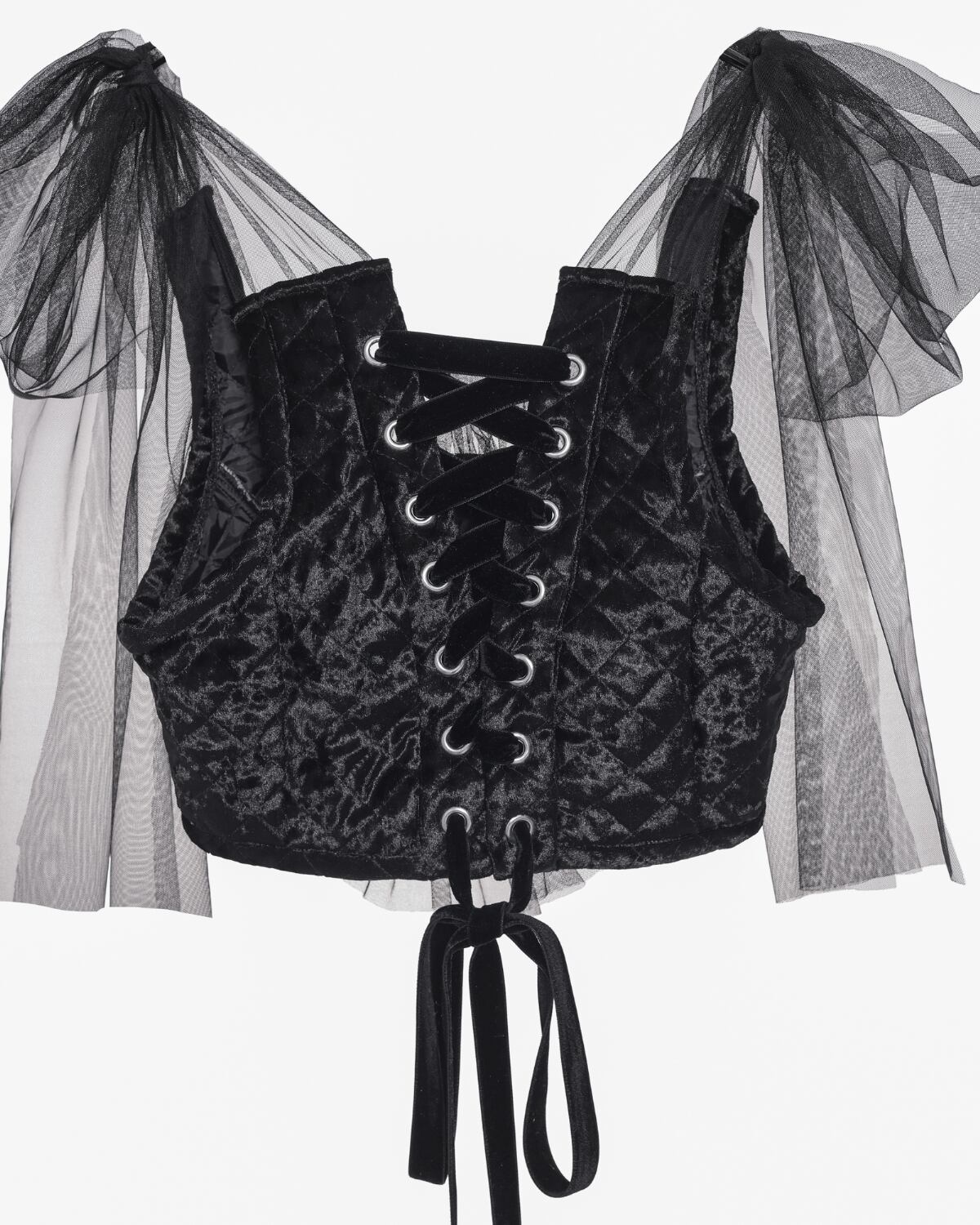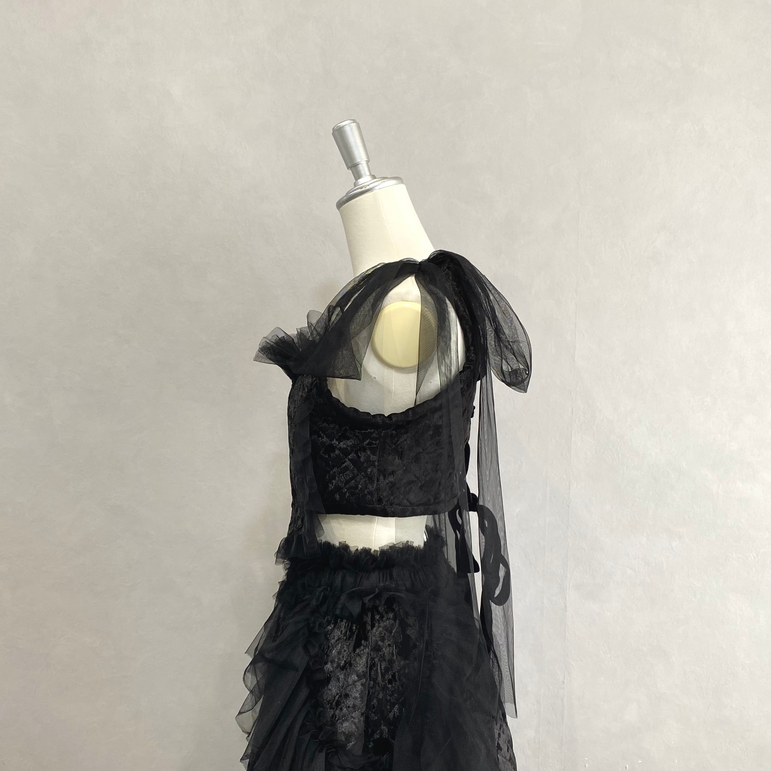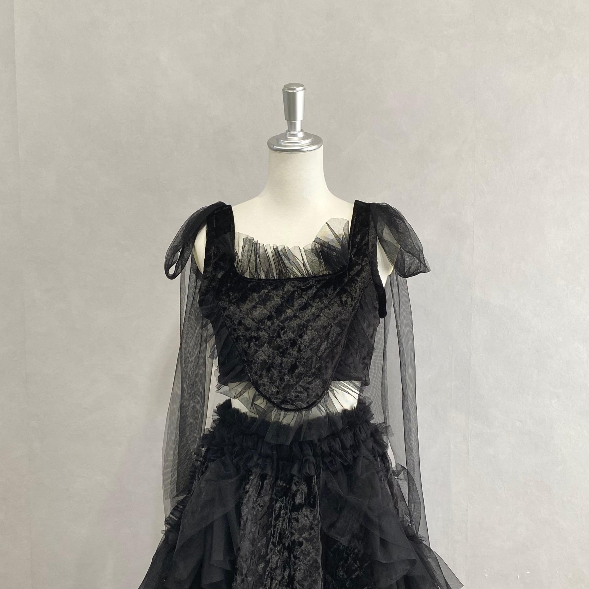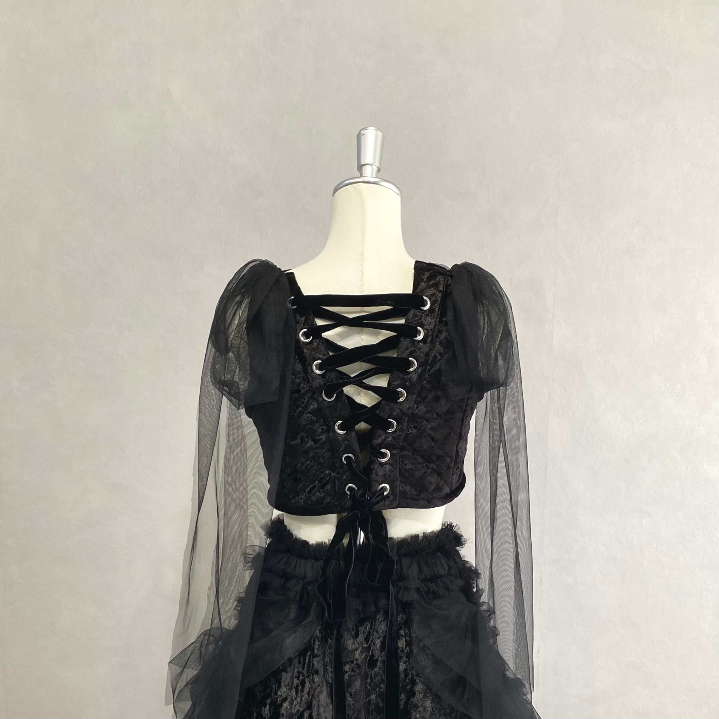 背中のレースアップはベルベットリボンです。