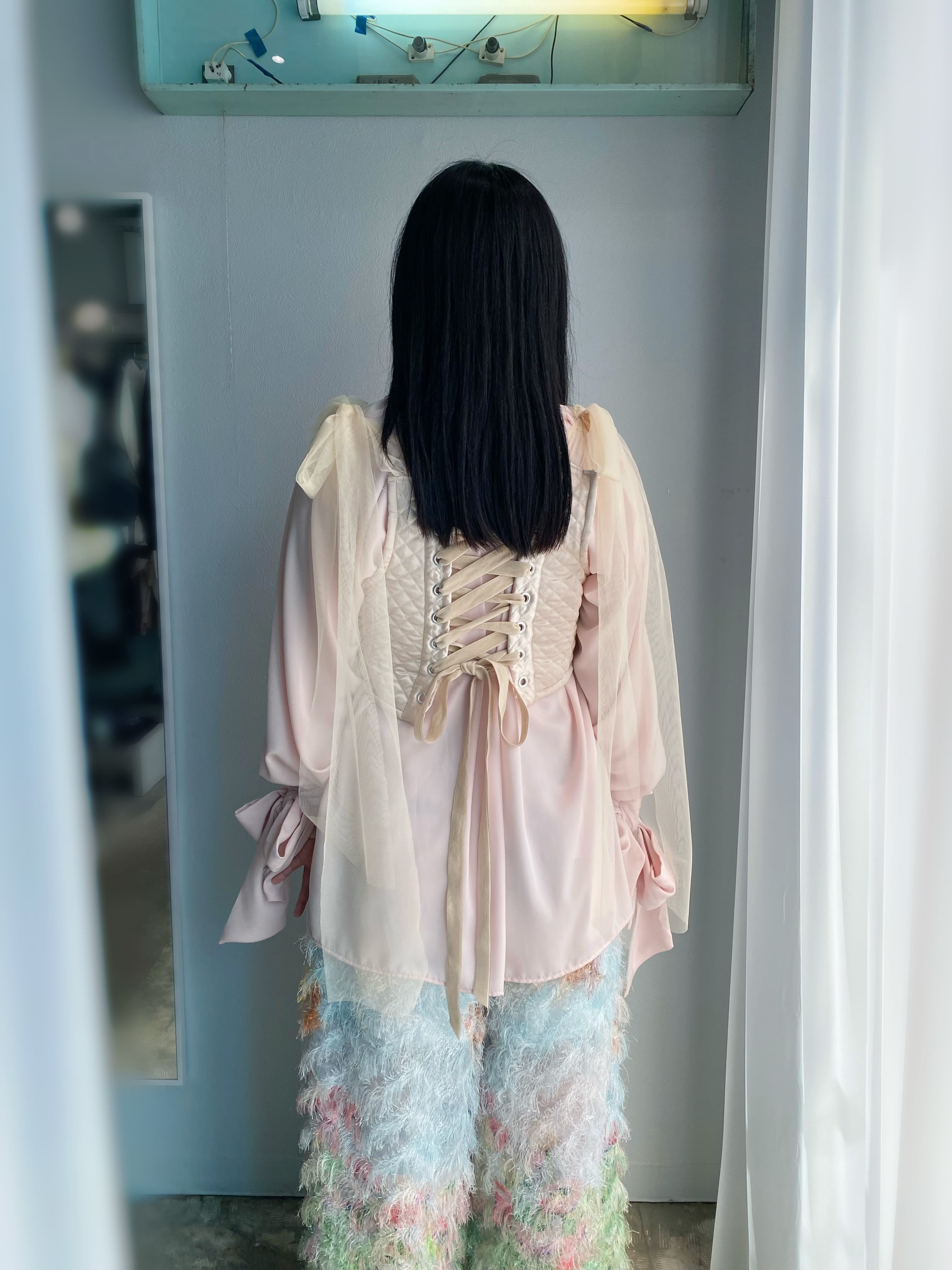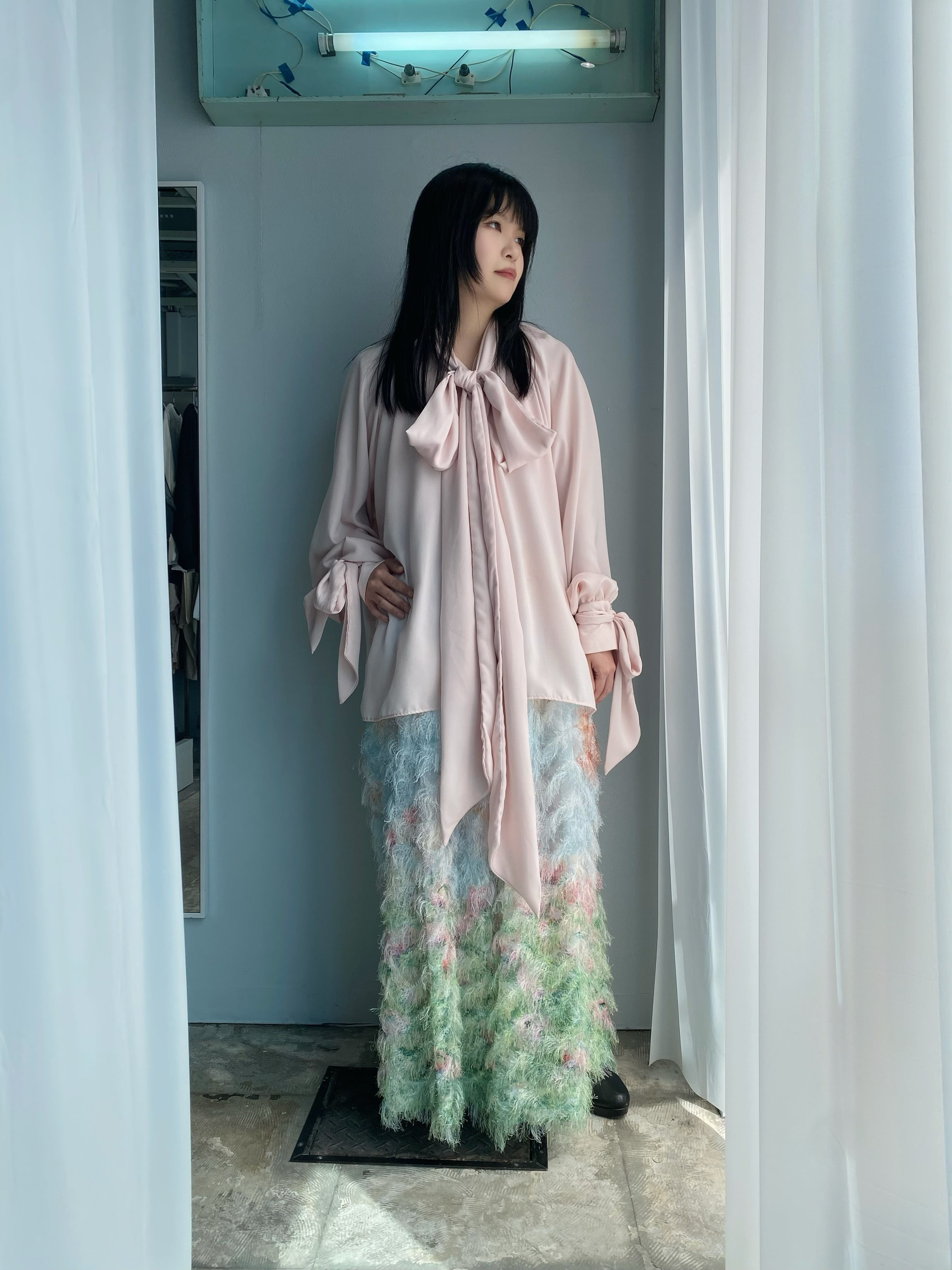 首のタイはリボン結びにしたりネクタイのように結んだり…